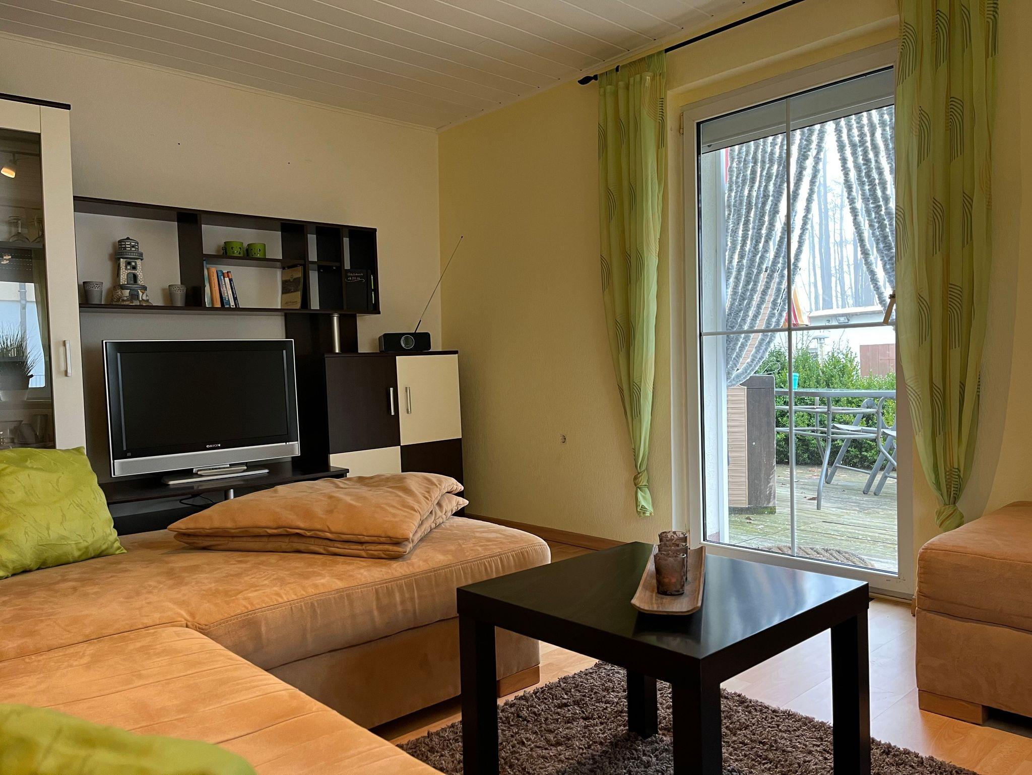 • Wohnzimmer mit Schlafcouch (1.40x2m) mit Zugang zur Gartenterrasse