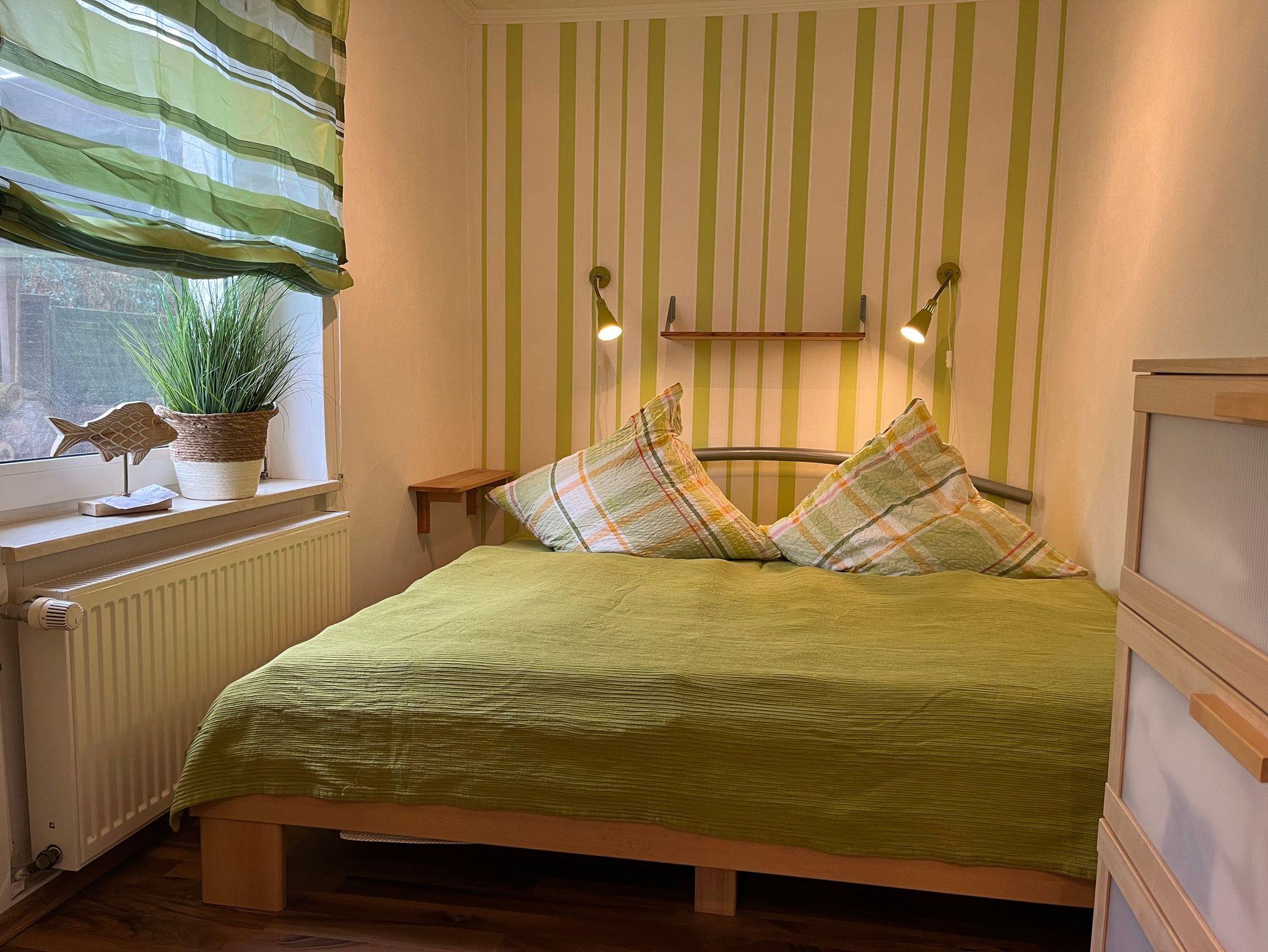 Im Erdgeschoss- Souterrain des Wohnhauses des Eigentümers mit 500m² Garten. Erzogene Haustiere willkommen. Freundlich und praktisch ausgestattete Ferienwohnung mit 1 Schlafzimmer, 1 Wohnzimmer mit Schlafcouch, 1 Wohndiele mit Kamin, komplett ausgestattete Küche, ebenerdiges Duschbad/WC und Gartenterrasse mit Grill, Strandkorb und Gartenmöbeln. Parkplätze auf dem Grundstück. Fahrradverleih im Nachbarort und abschließbare Fahrradunterstellmöglichkeit