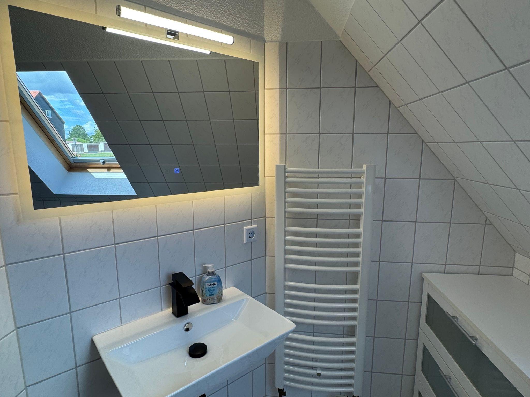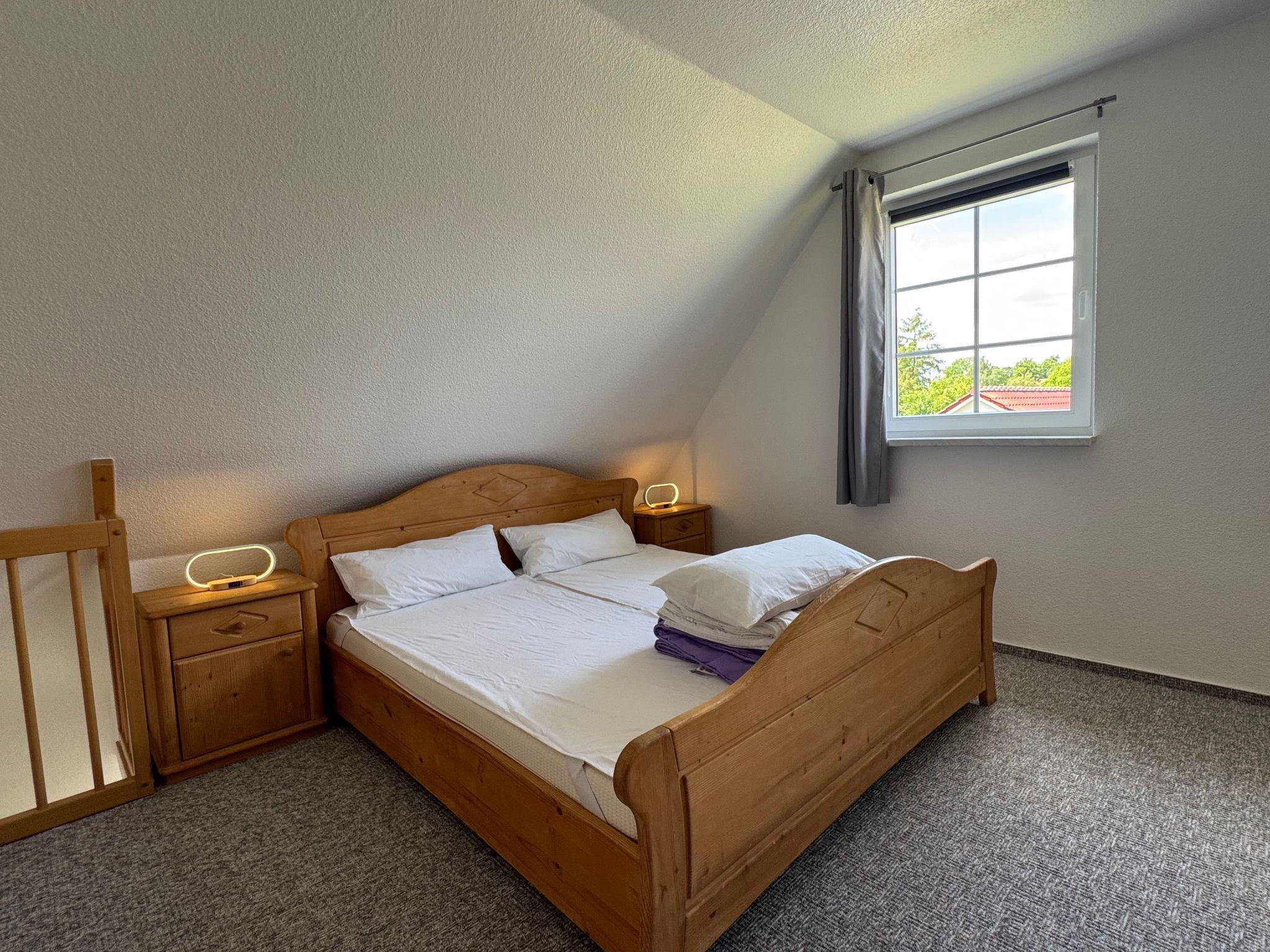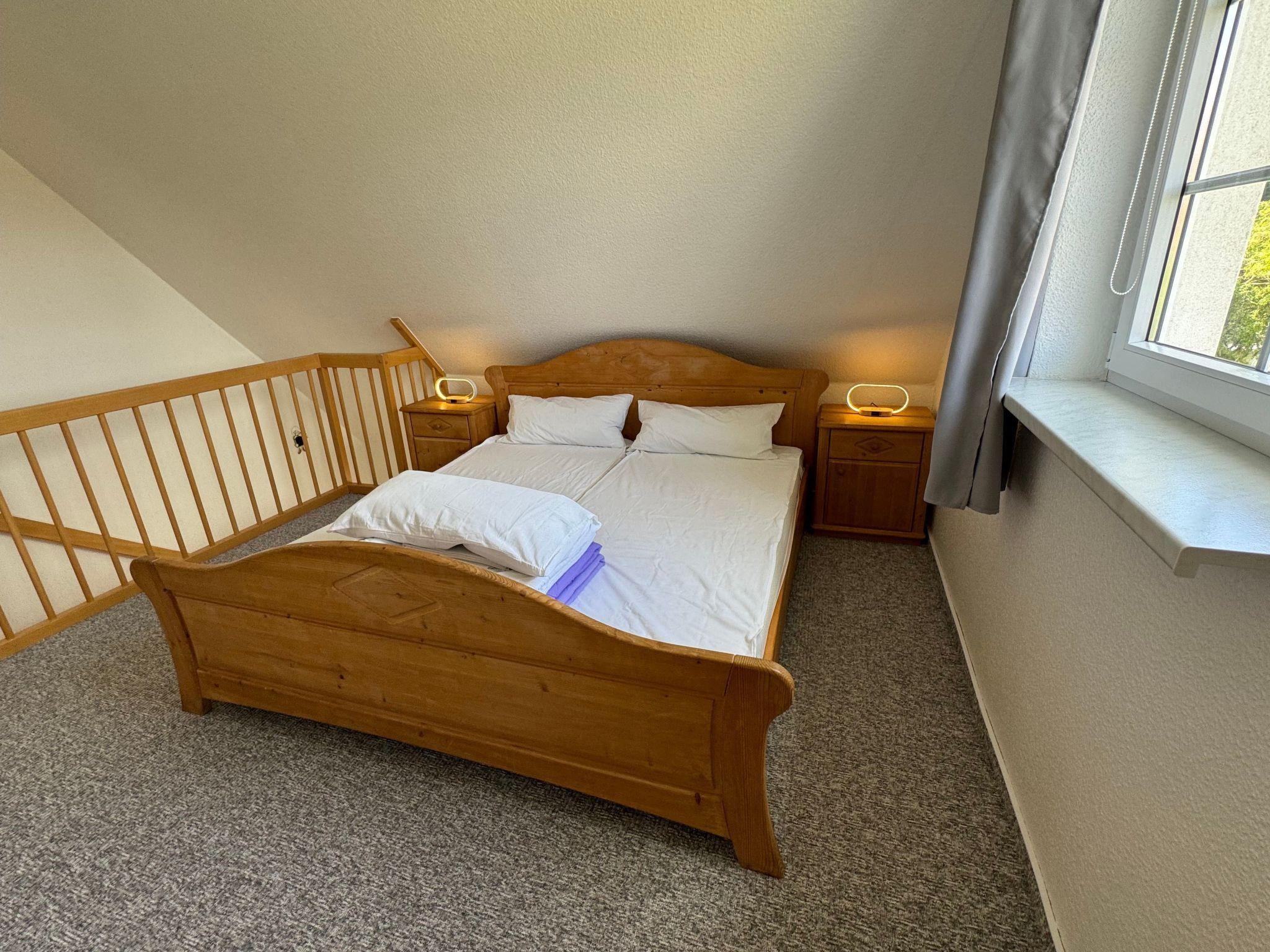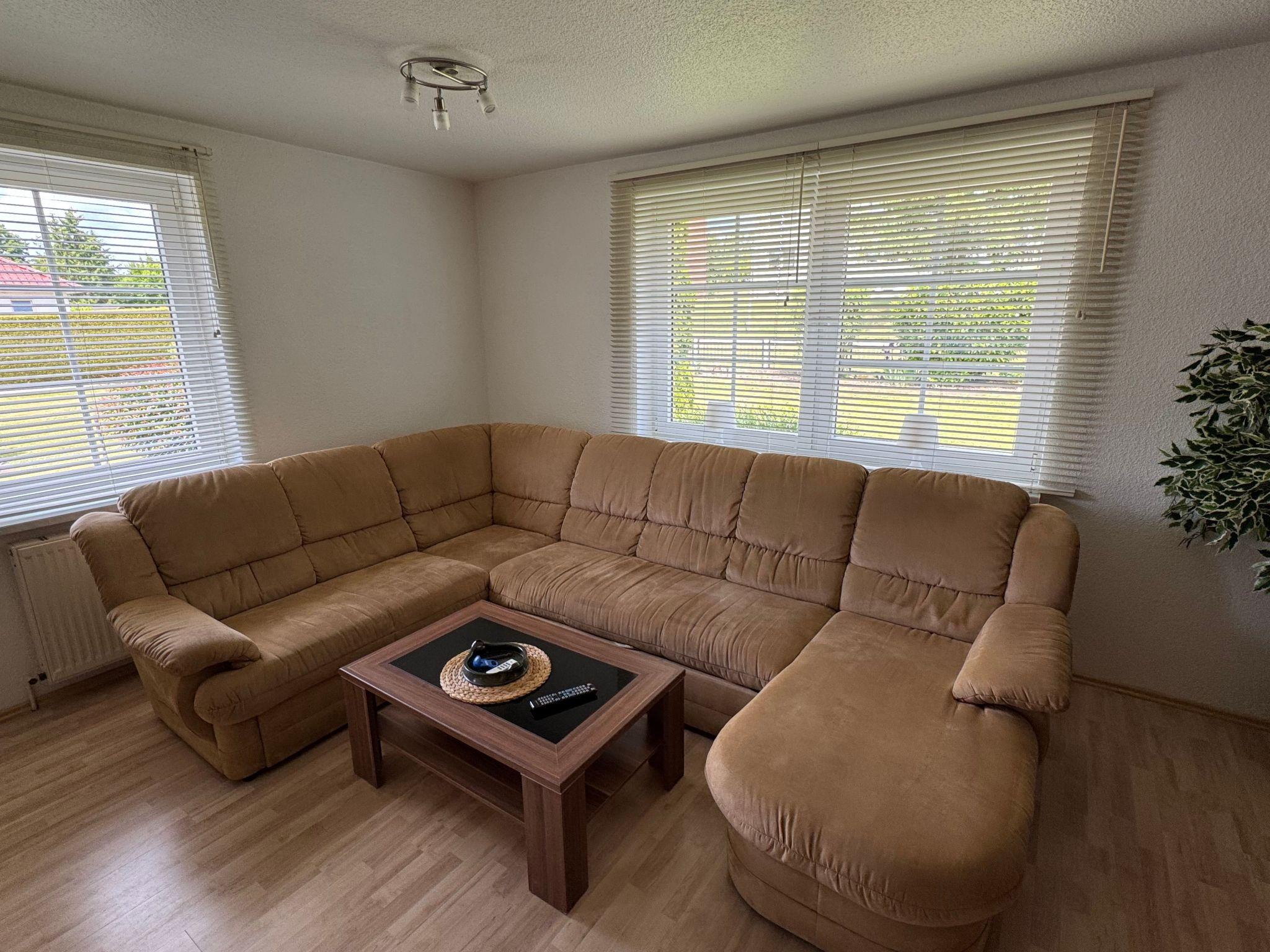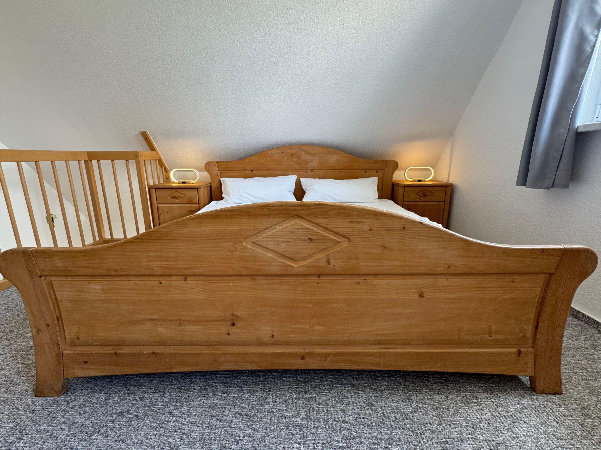 Sie hat eine gesamte Grundfläche von 49 m², die auf zwei Etagen aufgeteilt ist. Im Erdgeschoss befindet sich eine große Wohnküche, welche mit einer Einbauküche inklusive Kühl- Gefrierschrank, Ceran-Herd, Geschirrspüler und Mikrowelle ausgestattet ist. Eine Sitzgruppe im Wohnbereich kann zur Schlafcouch umgewandelt werden. Vom separaten Flur, geht es ins Obergeschoss. Dort befindet sich das Schlafzimmer mit Doppelbett (1,80 x 2 m), welches als Galerie ausgestaltet ist und von dort kommt man ins Bad mit Dusche. In beiden Räumen, d.h. sowohl im Wohnzimmer als auch im Schlafzimmer ist Sat.-TV vorhanden. Insgesamt stehen Ihnen somit vier Schlafmöglichkeiten und zusätzlich Aufbettung mit einem Gästebett zur Verfügung. Auch ein Kinderbett ist nach Absprache vor Ort. Bettwäsche, Geschirr, Kaffeemaschine, Wasserkocher und Toaster sind vorhanden. Kostenloses WLAN ist in der ganzen Wohnung verfügbar. Das Haus hat eine Ölheizung und Heizkörper befinden sich in jedem Raum der Wohnung.