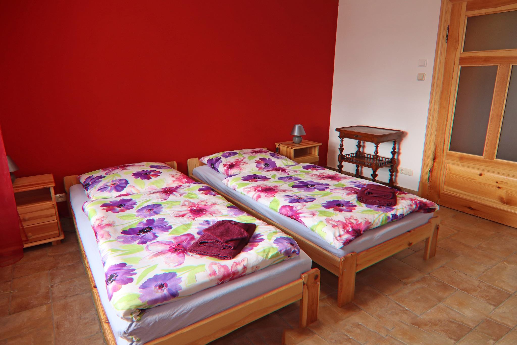 Diese geräumige Erdgeschosswohnung im ruhigen Dorf Alt Krassow ist ideal für bis zu vier Gäste, die Komfort und Natur suchen. Mit zwei Schlafzimmern mit Kingsize-Bett, einem gemütlichen Wohnzimmer mit Sat-TV und Kamin sowie einer voll ausgestatteten Küche ist sie perfekt für entspannte Kurzurlaube. Im Außenbereich erwarten Sie eine private Terrasse, ein Garten mit Gartenmöbeln, Grill und Sonnenschirm – nur 500 Meter vom ruhigen Strandbad Kuhlensee entfernt. Der nahegelegene Schlieffenberger See (3 km) bietet weitere Bade- und Angelmöglichkeiten. Das Nötigste finden Sie in Lalendorf (6 km). Ob Sie im Freizeitraum entspannen oder nahegelegene Städte wie Teterow und Güstrow erkunden – diese Unterkunft verbindet rustikalen Charme mit modernen Annehmlichkeiten wie Blu-ray-Player, Geschirrspüler und Waschmaschine.