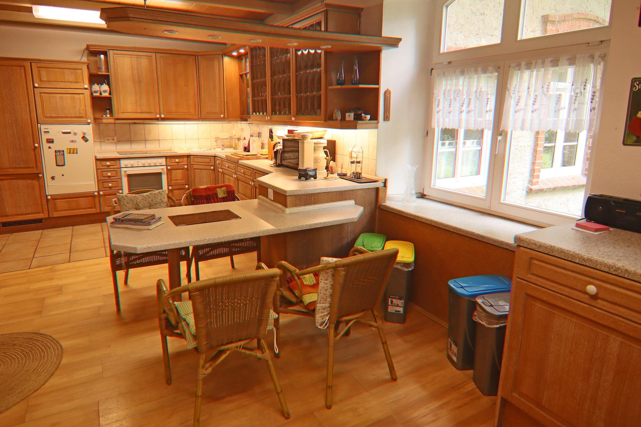 Parterre: (Wohnzimmer(TV(Satellit), Kaminofen, Blu-ray-Player, Stereoanlage), Küche(Esstisch(4 Personen), Wasserkocher, Toaster, Holzherd, Kochherd(4 Kochplatten, Ceranfeld), Dunstabzugshaube, Kaffeemaschine, Backofen, Mikrowelle, Spülmaschine, Kühlschrank(+ Gefrierfach)), Schlafzimmer(Doppelbett king size), Schlafzimmer(Doppelbett king size, Kaminofen), Badezimmer(Badewanne, Dusche, Waschbecken, Toilette, Waschmaschine, Föhn), Badezimmer(Dusche(ebenerdige Dusche), Waschbecken, Toilette), Flur, Freizeitraum(Sitzecke)) Terrasse, Garten, Gartenmöbel, Grill, Parkplatz, Parkplatz, Sonnenschirm