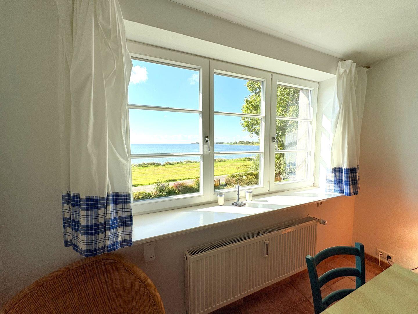Selbstverständlich bietet auch das Apartment Soling, selbst im süßen, maritimen blau-weiß gestaltet, einen wunderbaren Blick auf Wasser.