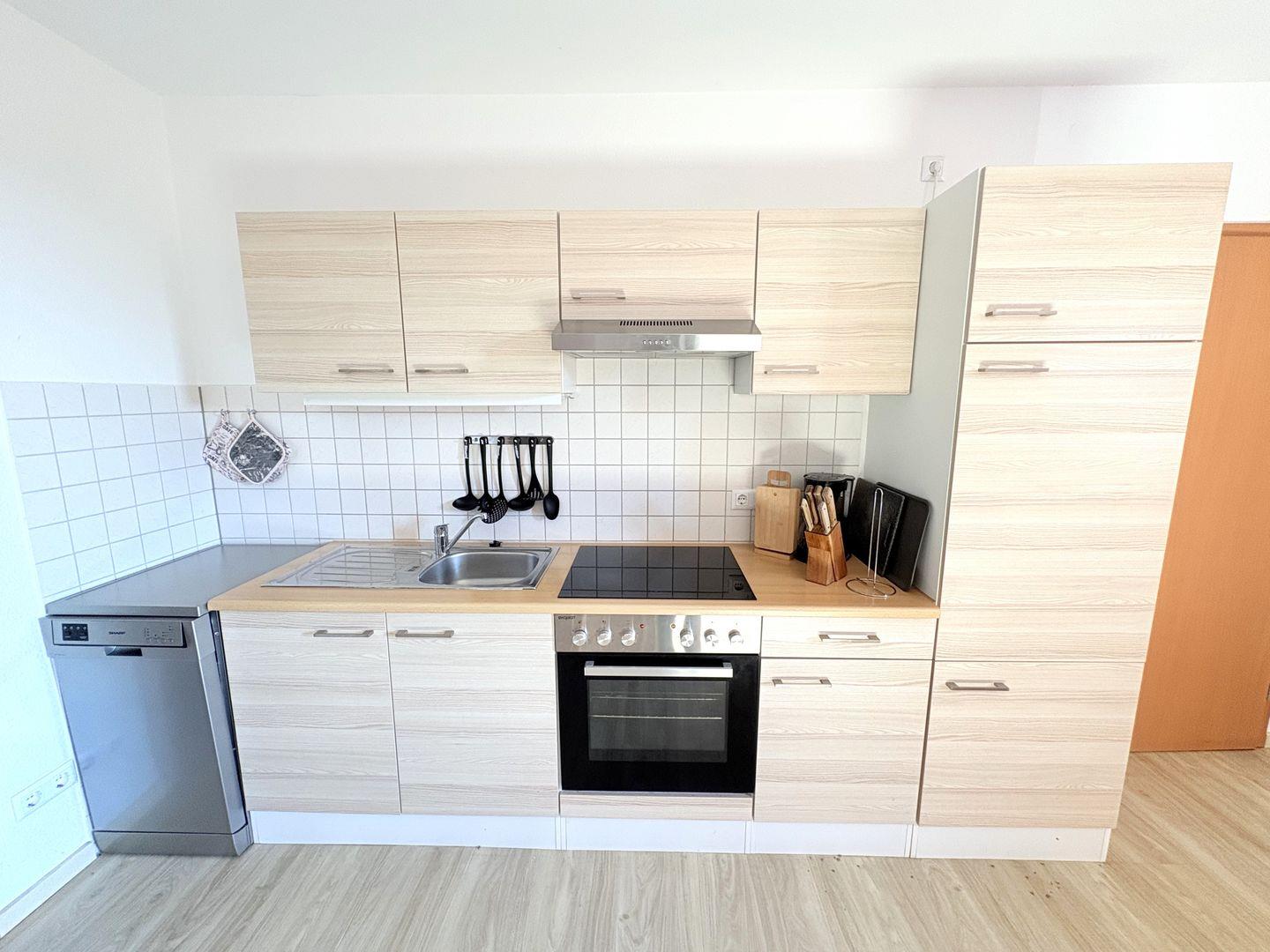 Außerdem gibt es eine kleine Abstellkammer. In der Küchenzeile befindet sich alles, was man benötigt – von Töpfen, Pfannen und Geschirr über den Toaster bis hin zur Mikrowelle. Die Terrasse lädt zum Verweilen ein und bietet mit ihrer Südlage den perfekten Sonnenmagneten.