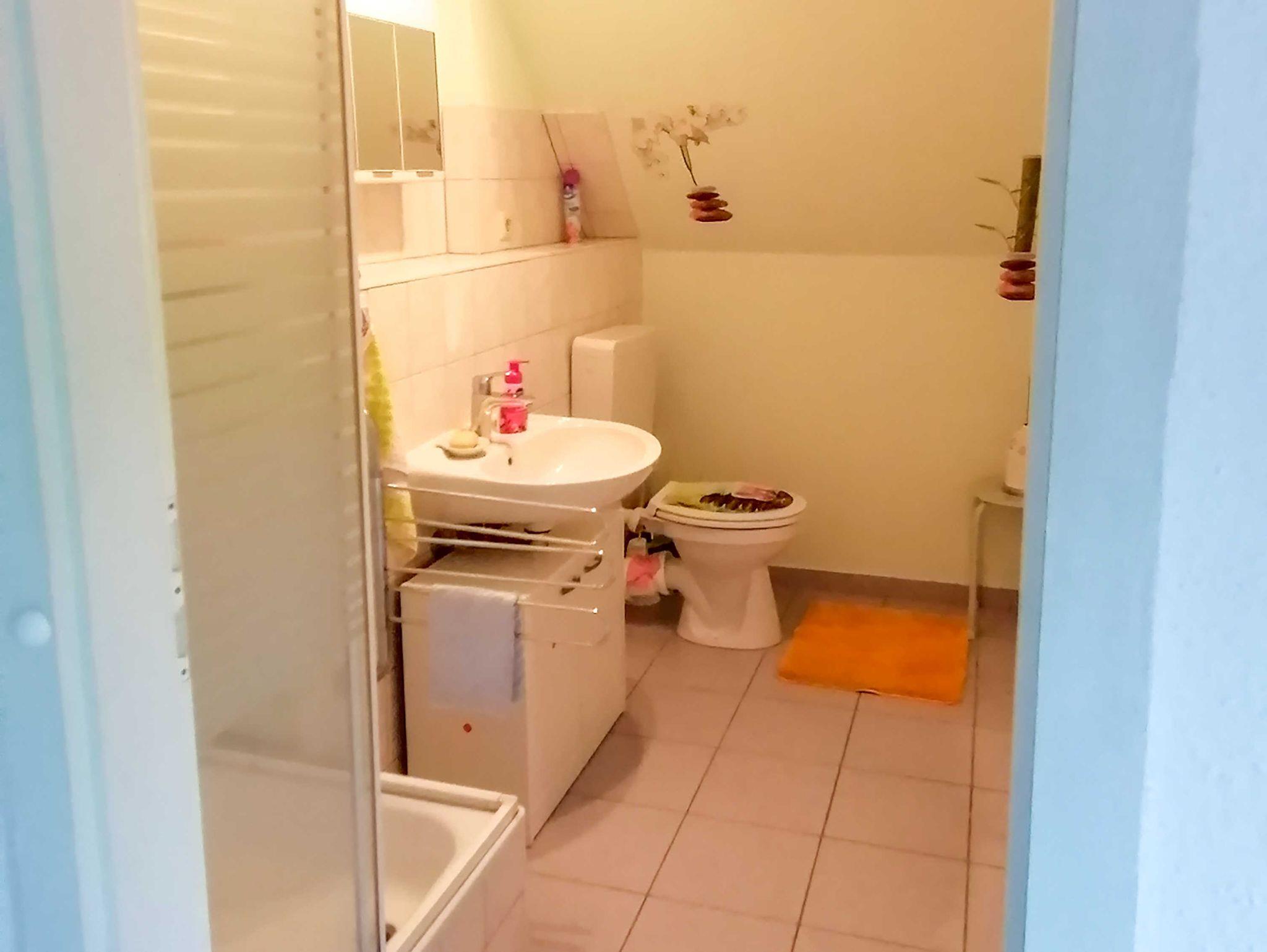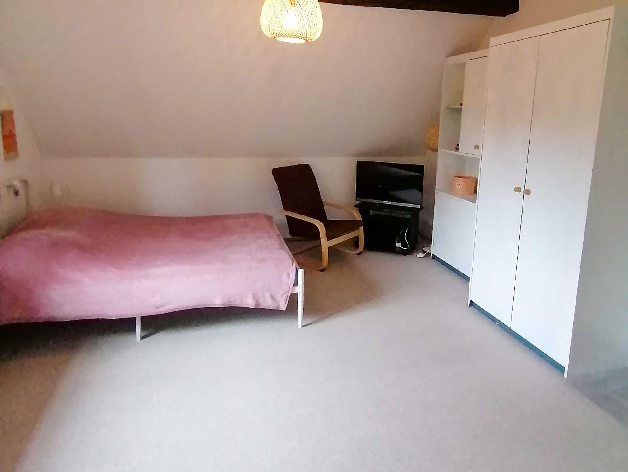 Die 29 m² große Ferienwohnung 2 befindet sich im Obergeschoss des mit Reet gedeckten Einfamilienhauses der Vermieter, klein, fein und ideal für Alleinreisende, Paare oder Kurzurlauber. Die 1-Raum-Wohnung verfügt über ein Duschbad mit WC, eine separaten Küche und einen Wohnraum mit französichem Bett (140x200), Schreibtisch, großem Kleiderschrank und Fernseher. In der separaten Küche befindet sich eine Pantryküche, mit 2 Herdplatten und Spüle, eine Küchenzeile mit Kaffeemaschine, Wasserkocher und Mikrowelle, Toaster und ausreichend Geschirr, sowie ein kleiner Kühlschrank. Der Essbereich in der Küche bietet dir Platz für zwei Personen. Die gemütliche, modern eingerichtete Unterkunft eignet sich hervorragend für Fahrradtouristen und Kurzurlauber. Für Fahrräder gibt es eine Unterstellmöglichkeit auf dem Hof mit E-Bike-Ladestation, die kostenfrei genutzt werden kann. Die Wohnung ist über den Haupteingang des Hauses erreichbar.