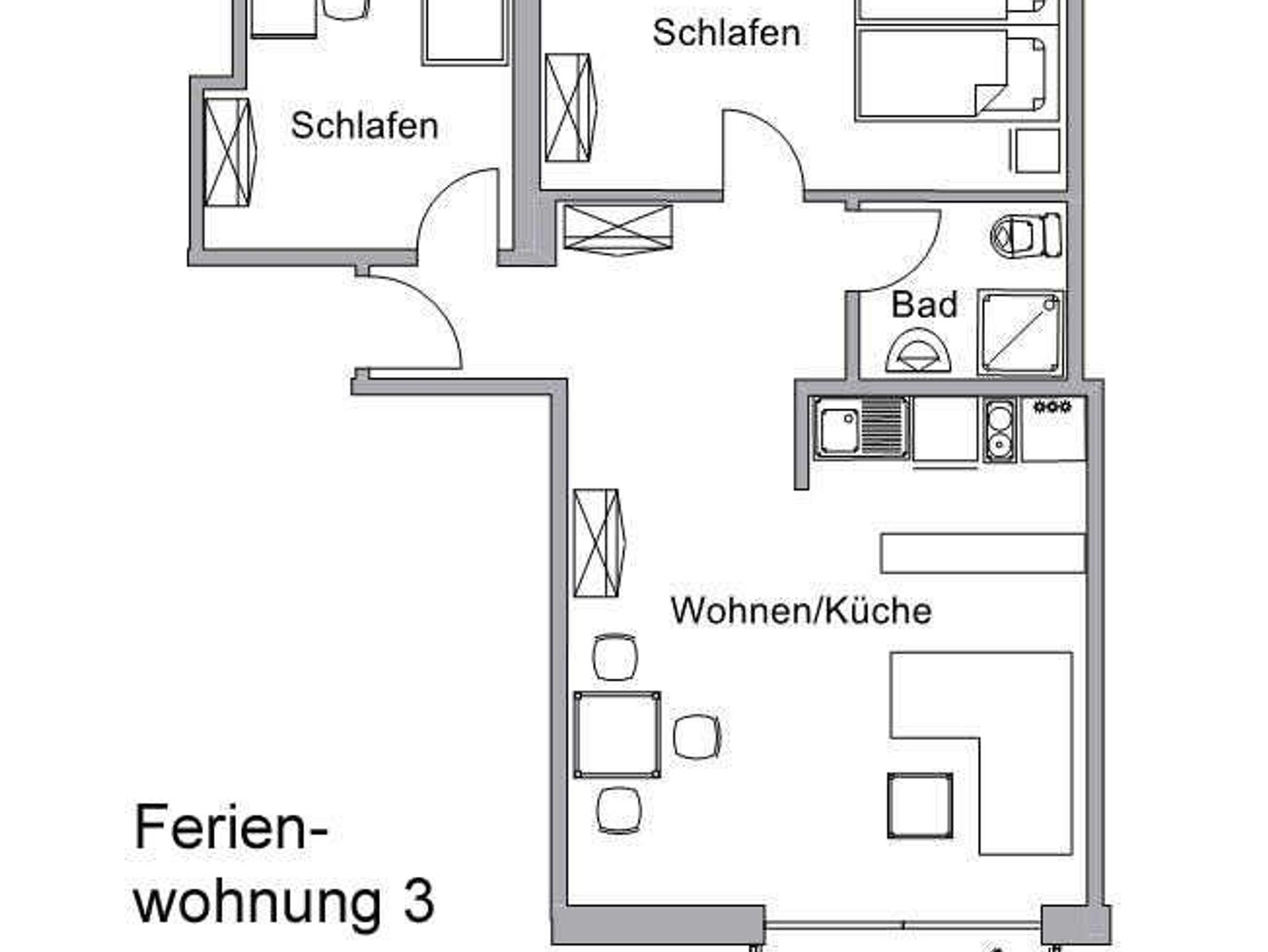 Die 57 m² große Nichtraucher- Ferienwohnung 3 mit eigenem PKW- Stellplatz befindet sich im ersten Obergeschoss des Haupthauses und verfügt über einen offenen Wohnraum mit einer modernen Küchenzeile, einem gemütlichen Wohnbereich mit Sofa und Sessel, einem integrierten Essbereich, zwei Schlafzimmer (ein Doppel-, ein Einzelbett) zur kühleren Waldseite sowie ein Bad mit Dusche und WC. Vom Balkon haben Sie einen herrlichen Blick über den Dreier See; aber auch wenn das Wetter einmal nicht so schön sein sollte, werden Sie sich in den freundlich eingerichteten, lichtdurchfluteten Räumen wohlfühlen.
