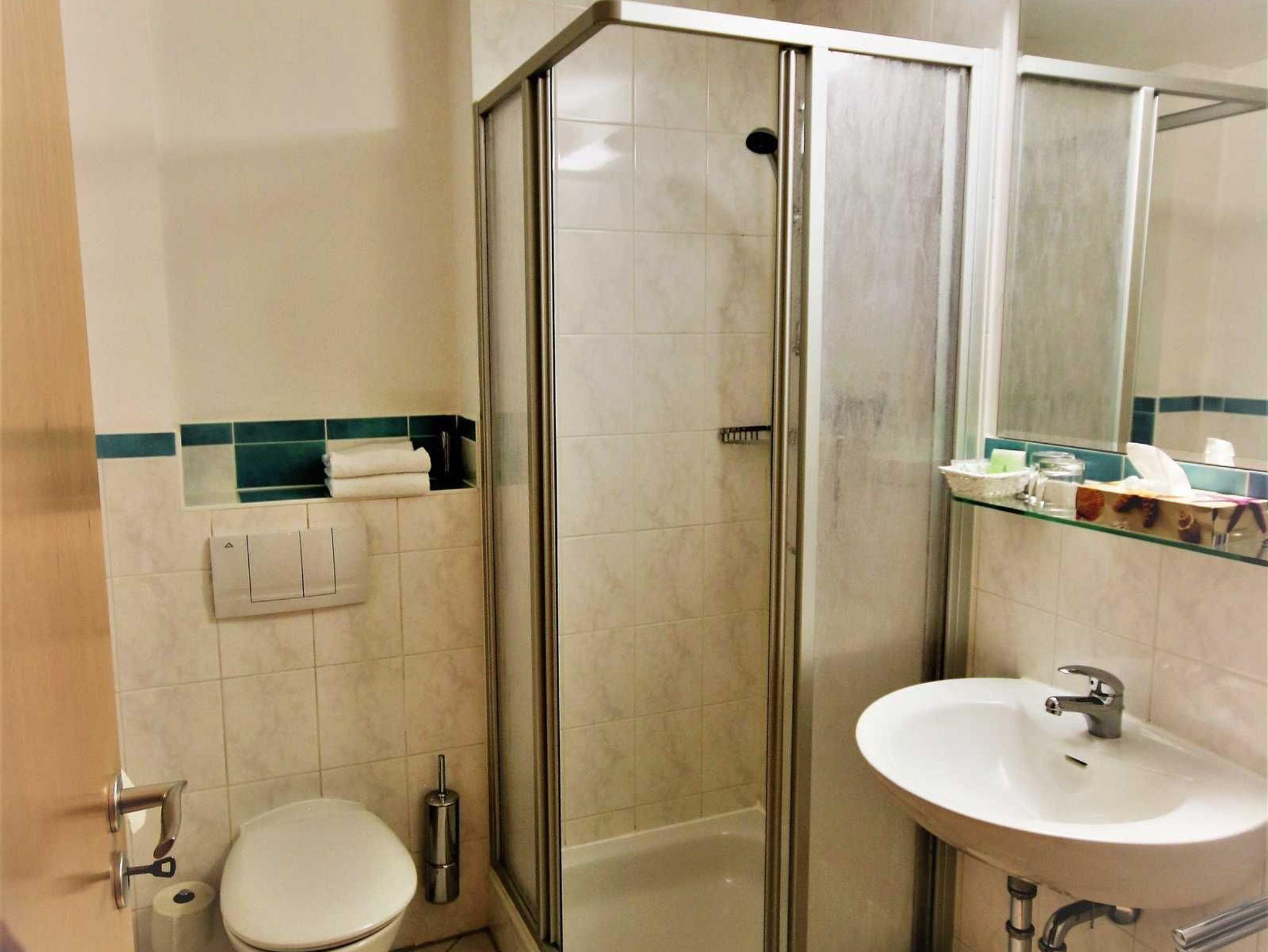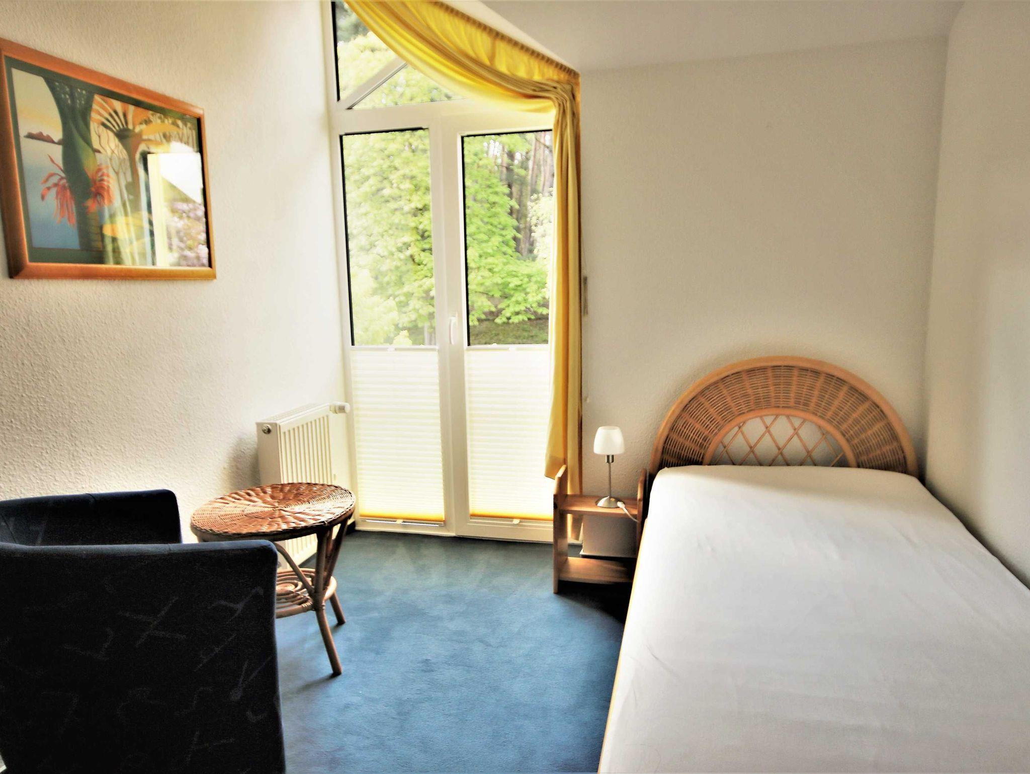 Ein über den Flur zu erreichendes, komplett ausgestattetes Einzelzimmer mit Seeblick kann gegen Aufpreis hinzu gebucht werden