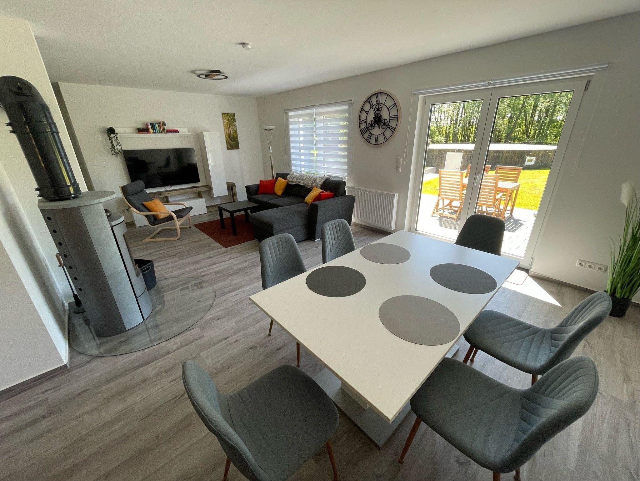 Der große, eingezäunte Garten erstreckt sich über 1200 m² und bietet viel Platz für Entspannung und Aktivitäten im Freien. Ihre vierbeinigen Freunde sind hier ebenfalls willkommen und können sich frei bewegen, während Sie die Sonne genießen oder auf der Terrasse grillen. Ein Grill steht Ihnen zur Verfügung, so dass Sie im Freien köstliche Mahlzeiten zubereiten können. Verbringen Sie warme Abende beim Grillen und genießen Sie die frische Luft und die Ruhe des Gartens.