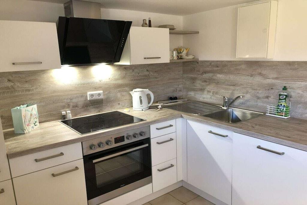 Souterrain: (Küche(, , Kochnische, Herd, Kochplatte, Wasserkocher, Kaffeemaschine, Backofen, Spülmaschine, Kühlschrank, Tiefkühlschrank), Wohn-/Schlafzimmer(, Schlafcouch 1 Pers., TV), Badezimmer(, Toilette, Dusche, Waschbecken, Föhn)) , , Internet, Erste-Hilfe-Station, Trockner, Waschmaschine, Parkplatz, Bügelbrett, Bügeleisen, Trockenschrank