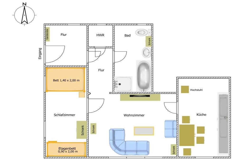 Ruhige Ferienwohnung im Ortskern von Altefähr mit Garten, Einbauküche und kostenlosem Parkplatz.