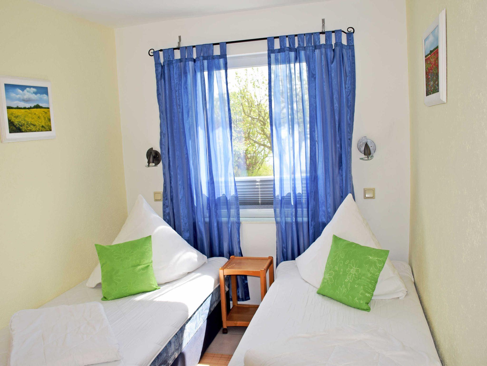 Das Schlafzimmer verfügt über zwei Einzelbetten mit Nachttischen und Leselampen sowie einen Kleiderschrank. Das helle Bad bietet eine Dusche, Waschtisch und WC, es verfügt über Tageslicht. Bei Ihrer Anreise sind die Betten bereits mit Bettwäsche bezogen. Handtücher können Sie selbst mitbrungen oder gegen Aufpreis zubuchen.