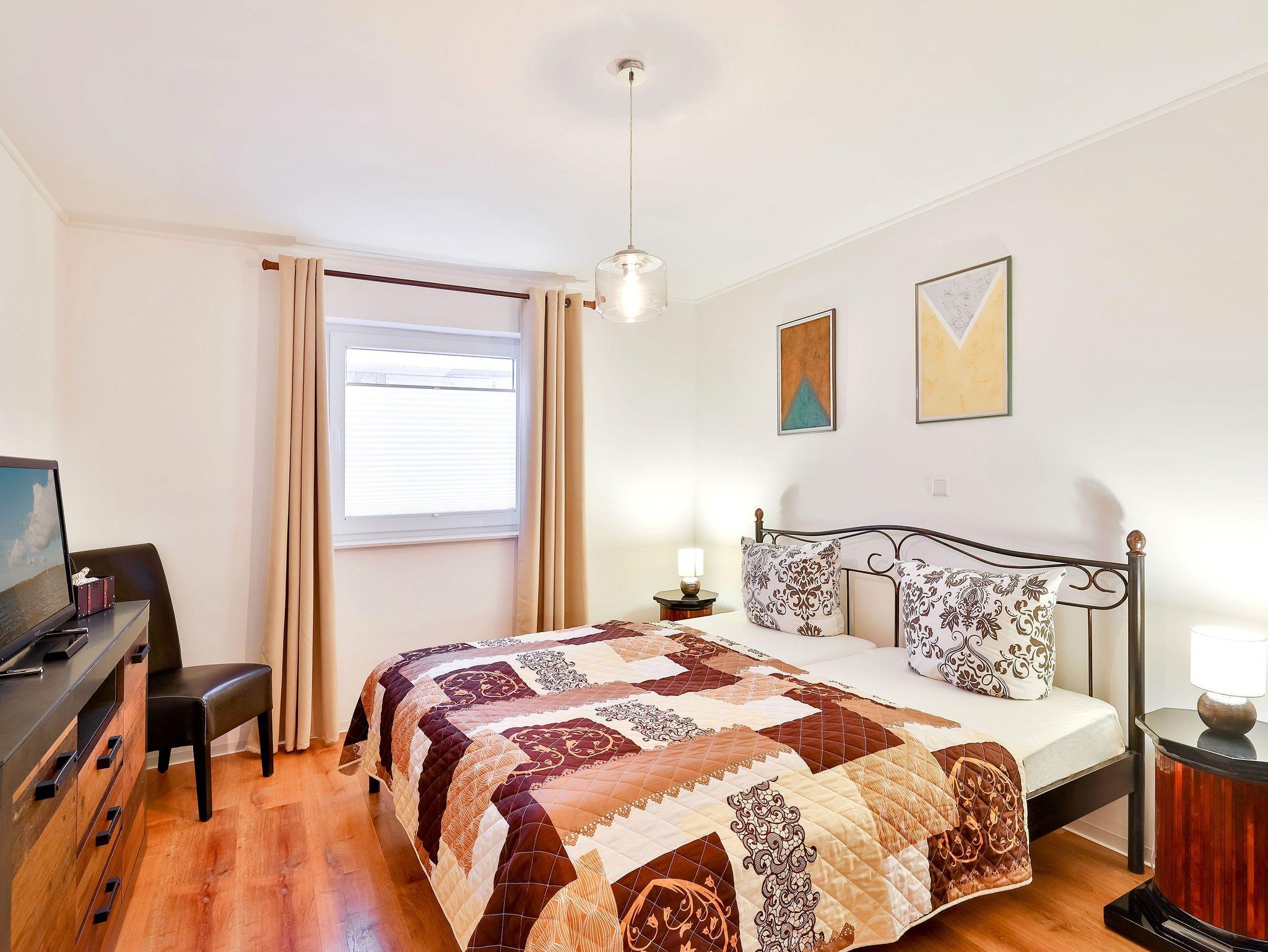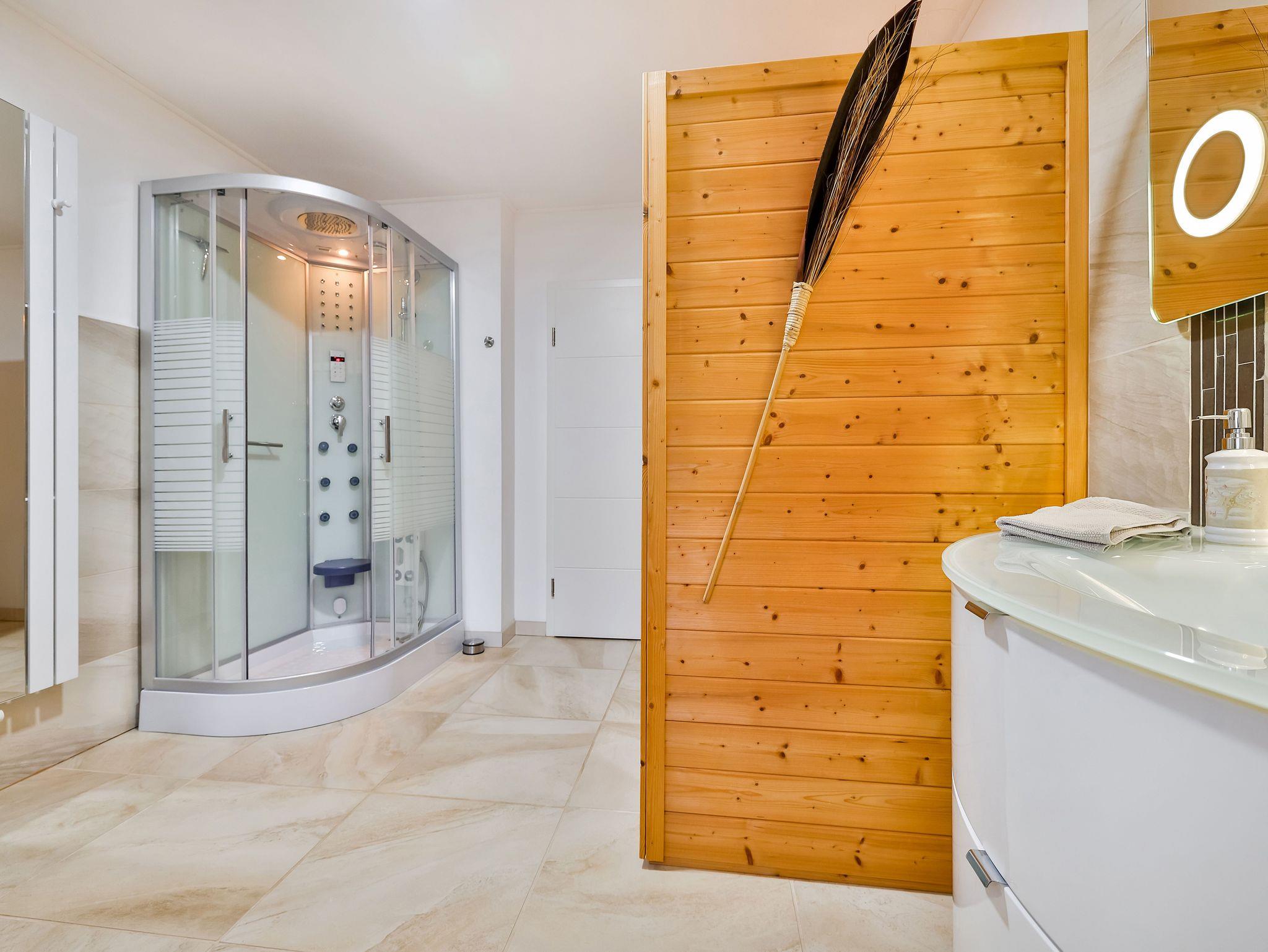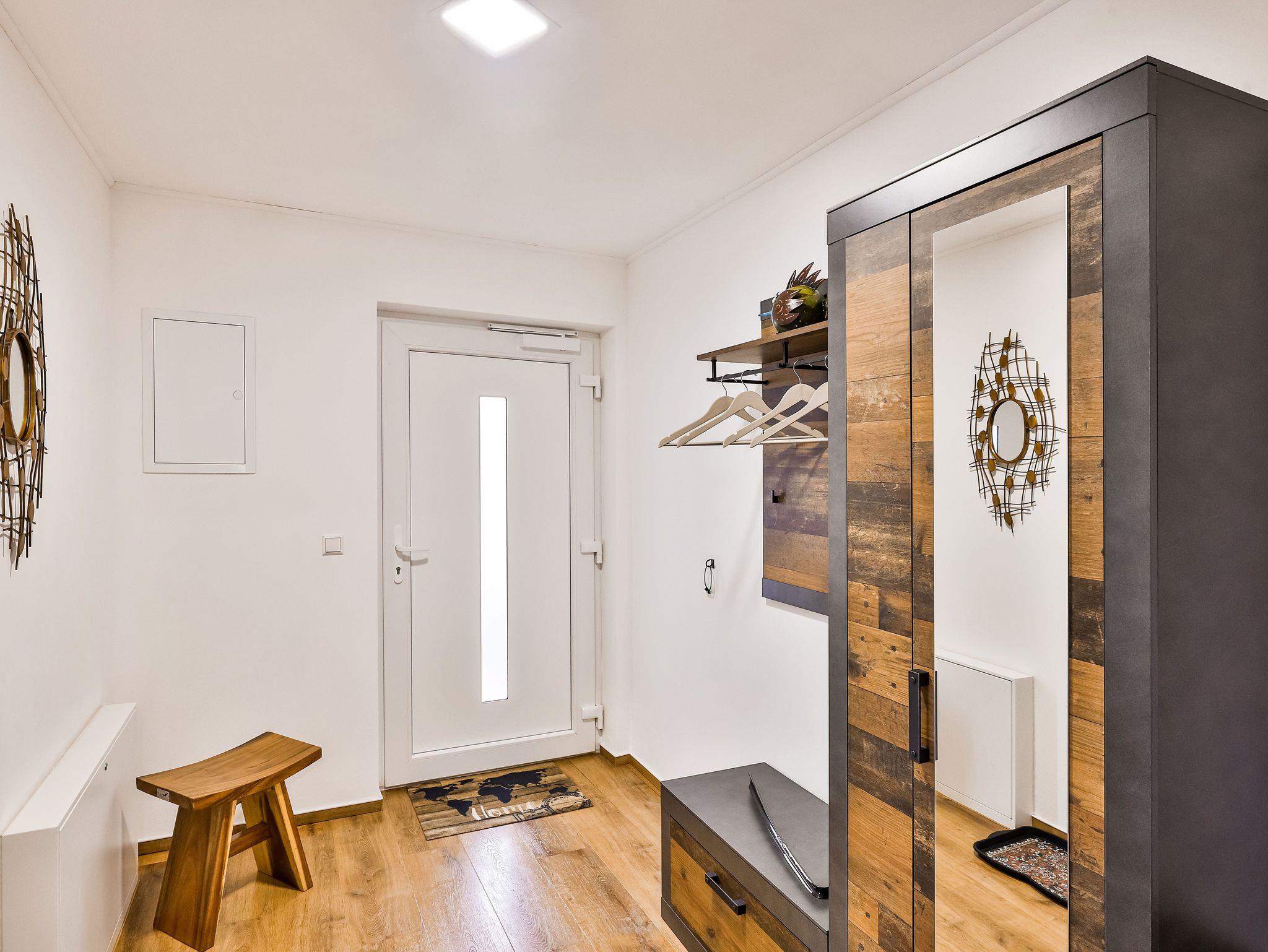 Die Ferienwohnung Atlantis befindet sich im Erdgeschoß und hat einen eigenen Hauseingang. In das große Wohnzimmer sind die Küche und der Essbereich eingegliedert. Das Schlafzimmer mit einem Doppelbett und das große Badezimmer mit der Rotlicht-Sauna sind jeweils vom Flur und vom Wohnzimmern einzeln zu betreten.