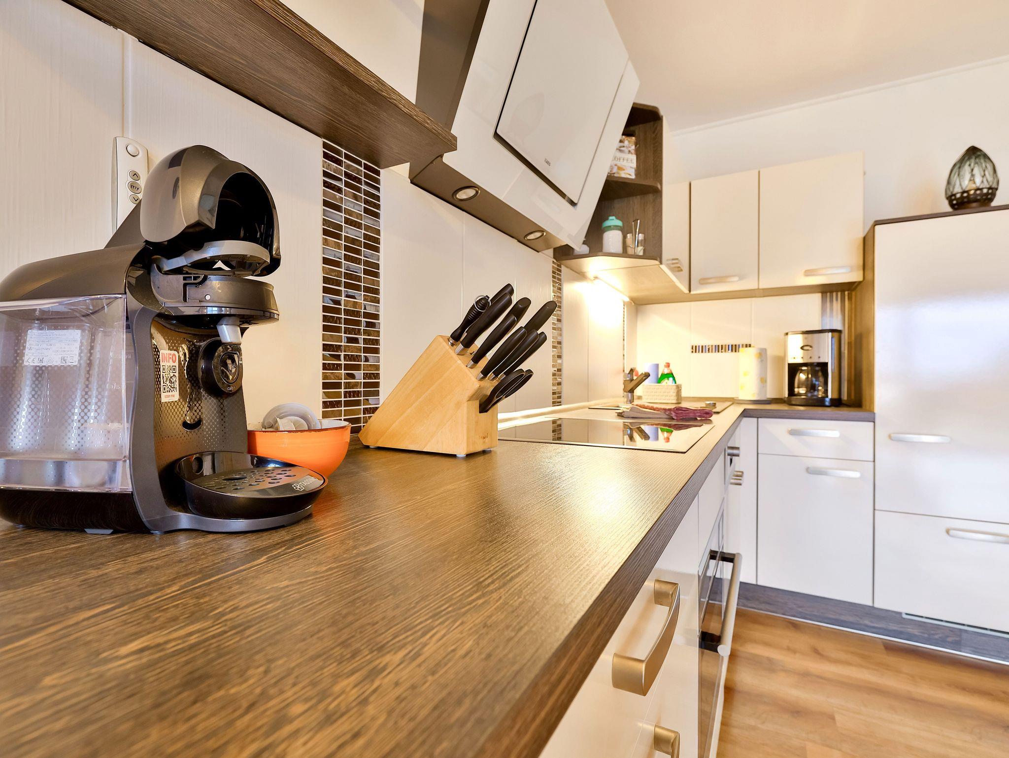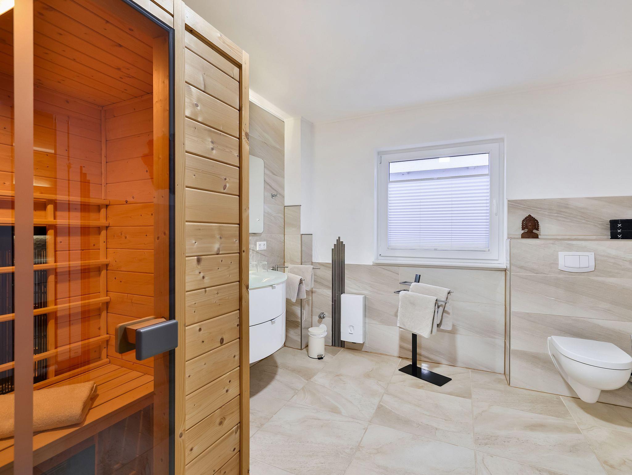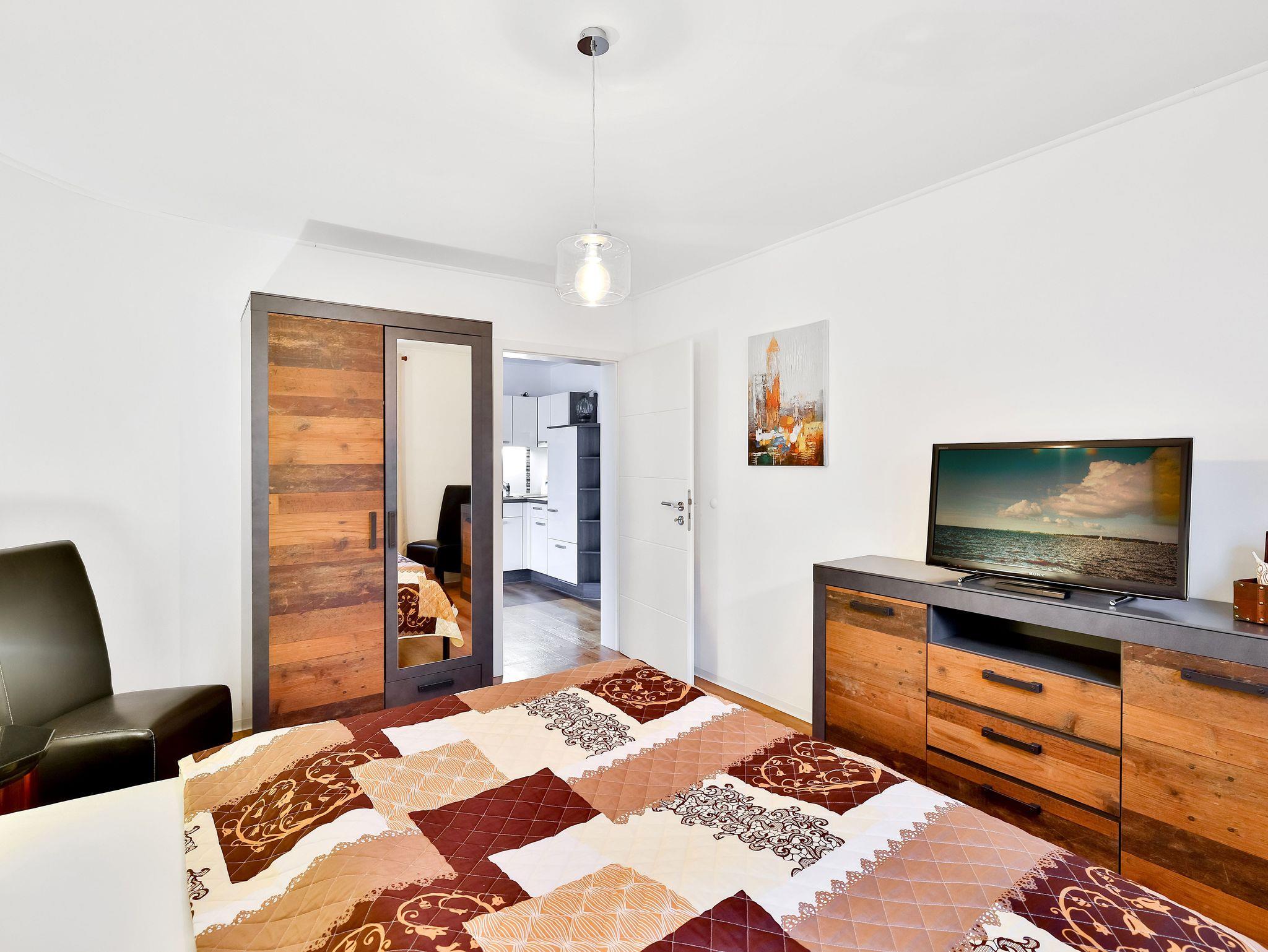 Die Ferienwohnung Atlantis befindet sich im Erdgeschoß und hat einen eigenen Hauseingang. In das große Wohnzimmer sind die Küche und der Essbereich eingegliedert. Das Schlafzimmer mit einem Doppelbett und das große Badezimmer mit der Rotlicht-Sauna sind jeweils vom Flur und vom Wohnzimmern einzeln zu betreten.