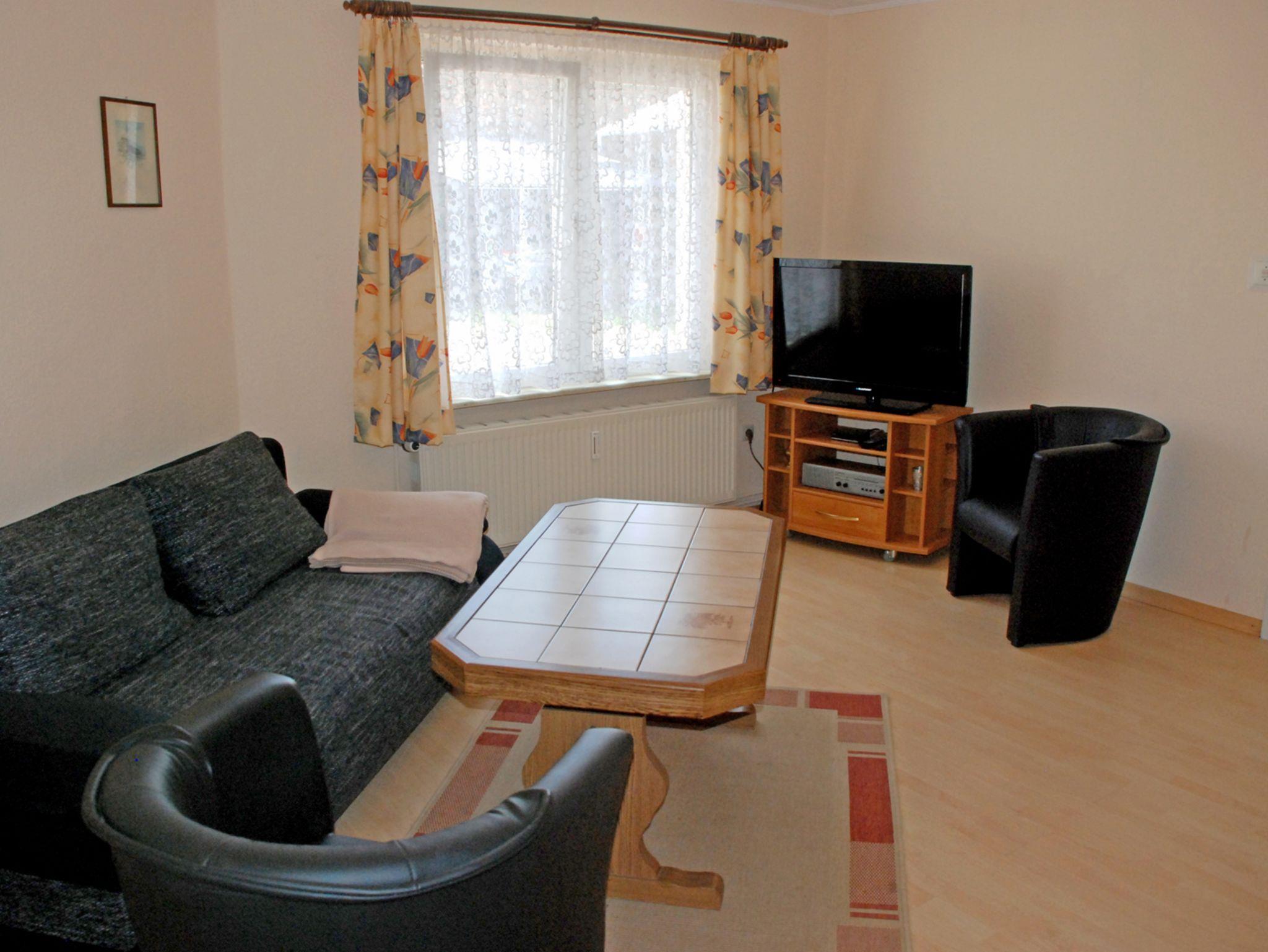 Auf ca. 45 qm steht Ihnen ein Wohnzimmer mit gemütlicher Ausziehcouch (1,40 m breit, Aufbettungsmöglichkeit für eine Person), Radio und TV, ein Schlafzimmer mit Doppelbett (1,60 m breit) und Einzelbett, eine kleine separate Küche mit kleiner Küchenzeile (Zweifeld-Ceranherd), Kühlschrank, Kaffeemaschine, Toaster und Wasserkocher sowie ein Bad mit Dusche & WC zur Verfügung. WLAN steht kostenfrei zur Verfügung.
