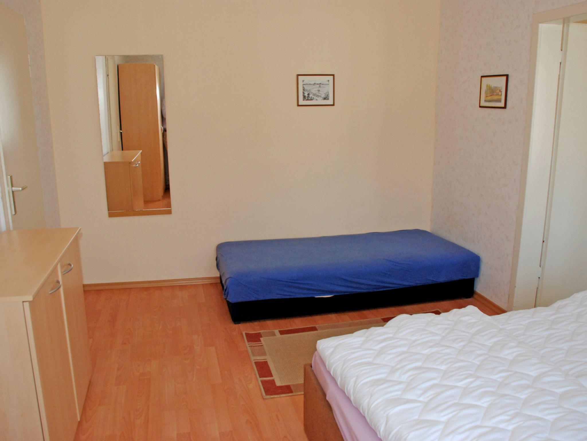 Auf ca. 45 qm steht Ihnen ein Wohnzimmer mit gemütlicher Ausziehcouch (1,40 m breit, Aufbettungsmöglichkeit für eine Person), Radio und TV, ein Schlafzimmer mit Doppelbett (1,60 m breit) und Einzelbett, eine kleine separate Küche mit kleiner Küchenzeile (Zweifeld-Ceranherd), Kühlschrank, Kaffeemaschine, Toaster und Wasserkocher sowie ein Bad mit Dusche & WC zur Verfügung.