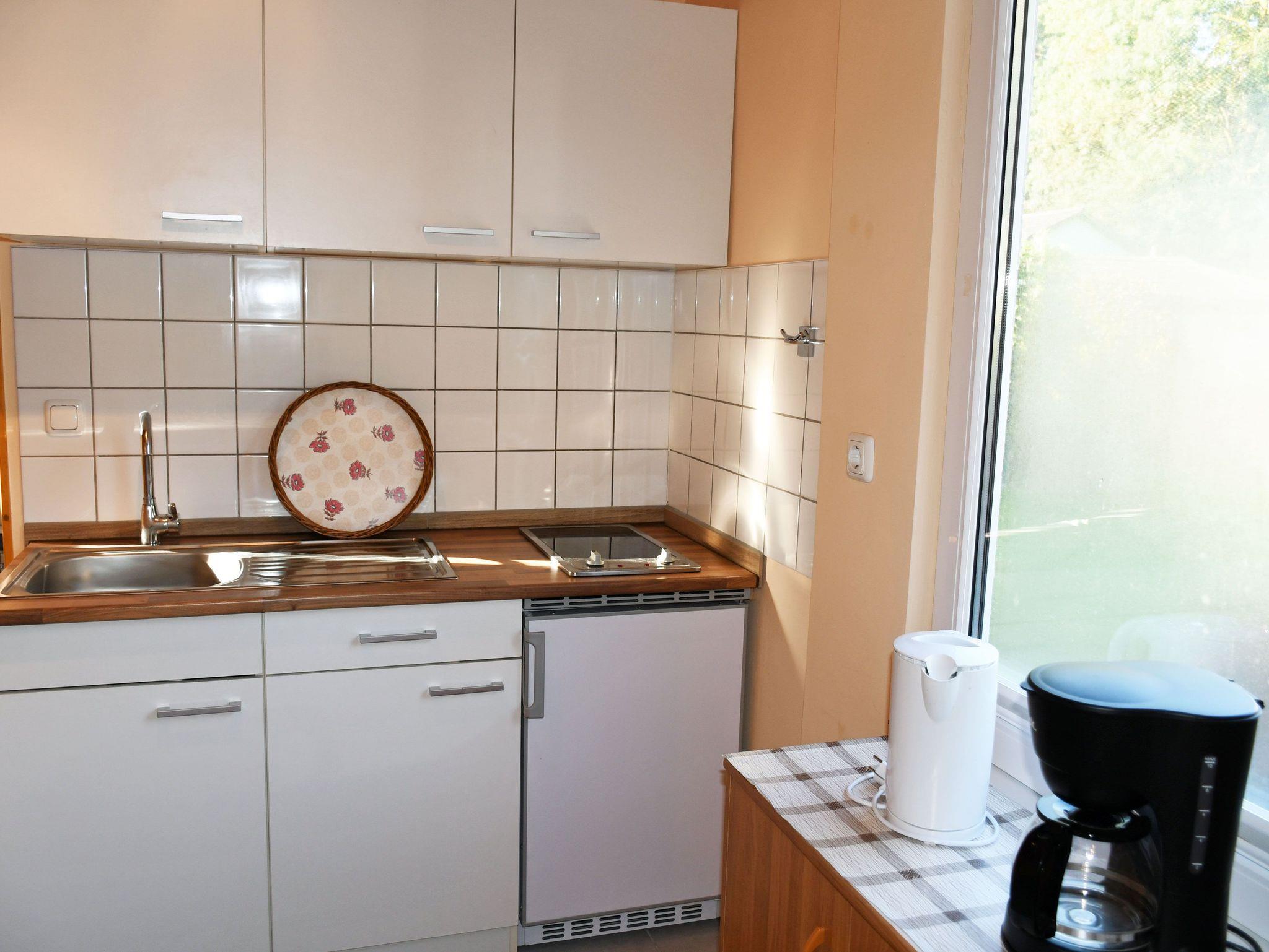 Unser liebevoll eingerichteter Ferienbungalow in Altefähr (separater Eingang, 24 qm, 1 Wohnzimmer, 1 Schlafzimmer, Küchenzeile, Dusche/WC, Sitzecke im Garten mit Grillmöglichkeit, WLAN, max. 2 Erw. und ein Kind bis 12 J./ Nichtraucherhaus) befindet einem sehr schönen Garten hinter einem Einfamilienhaus.