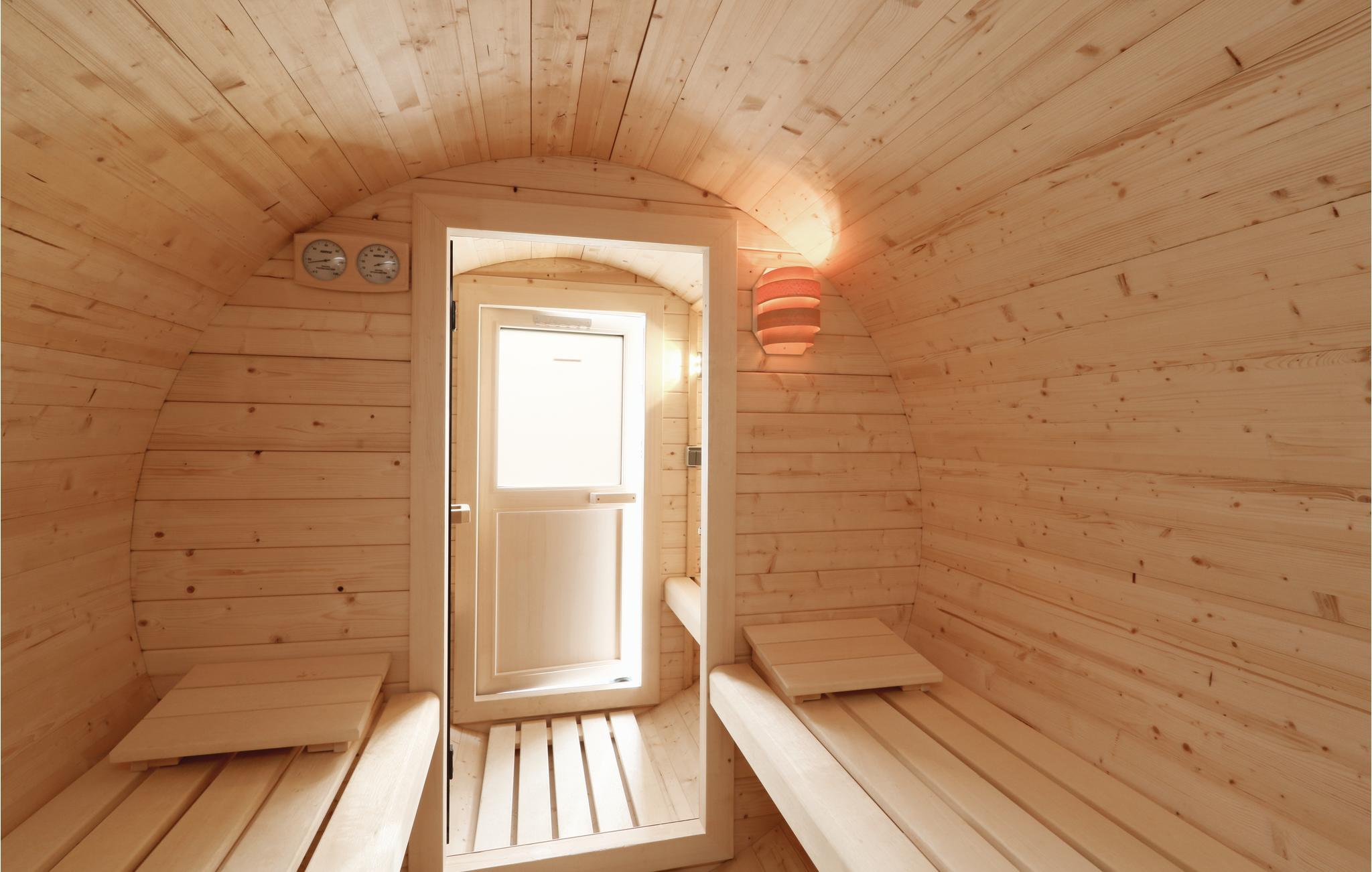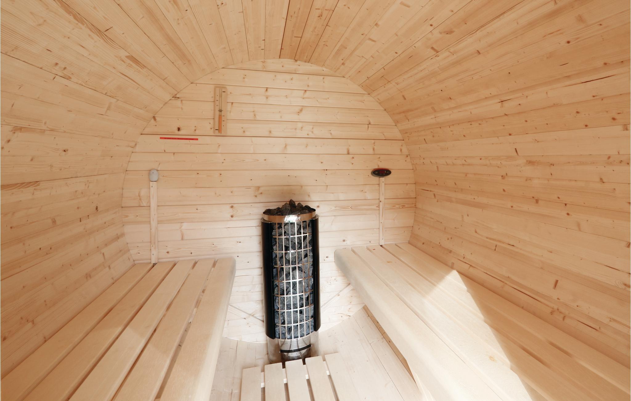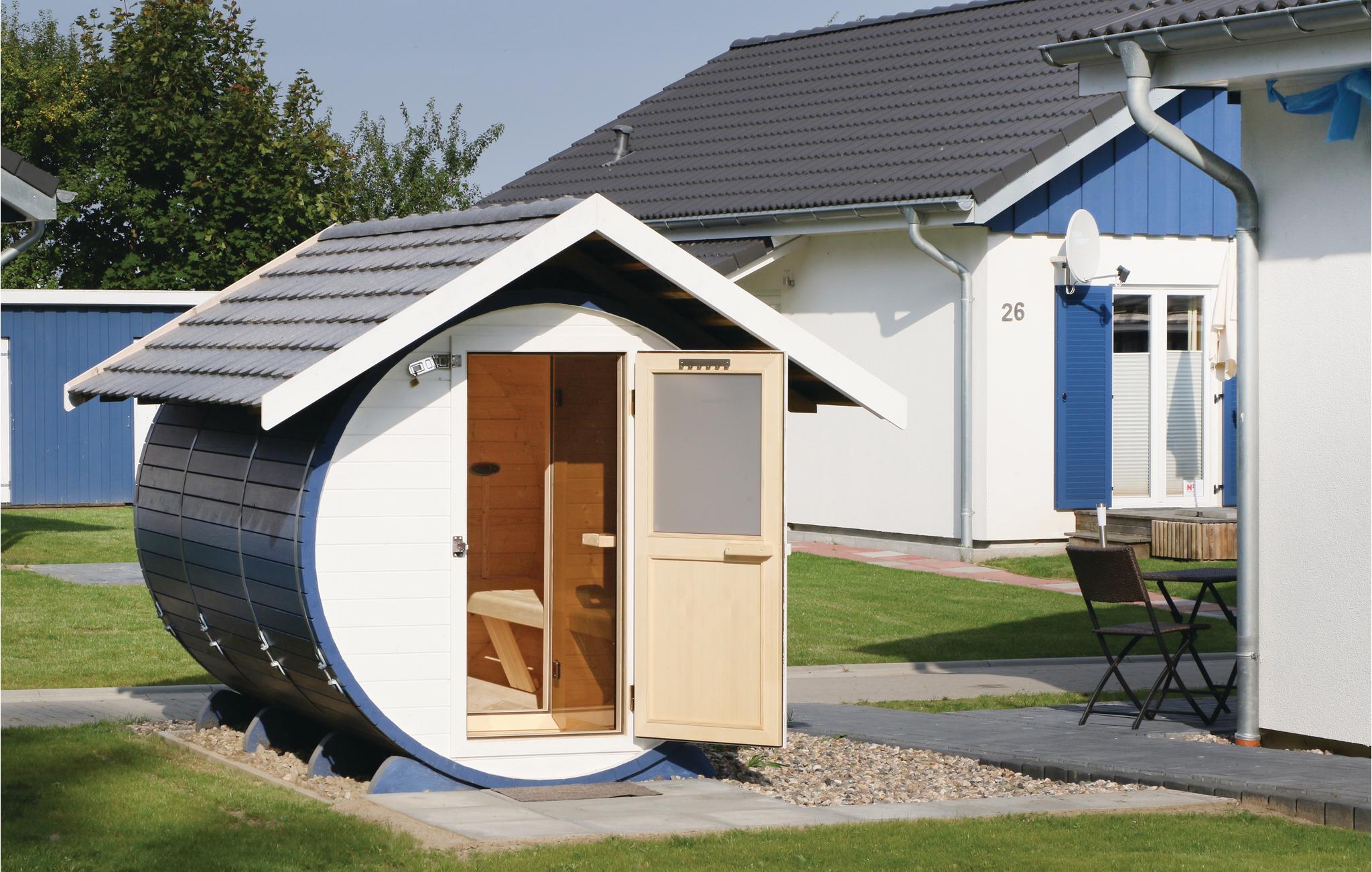 An kälteren Tagen können Sie sich in der Fasssauna im Garten, nach langen Strandspaziergängen, aufwärmen.