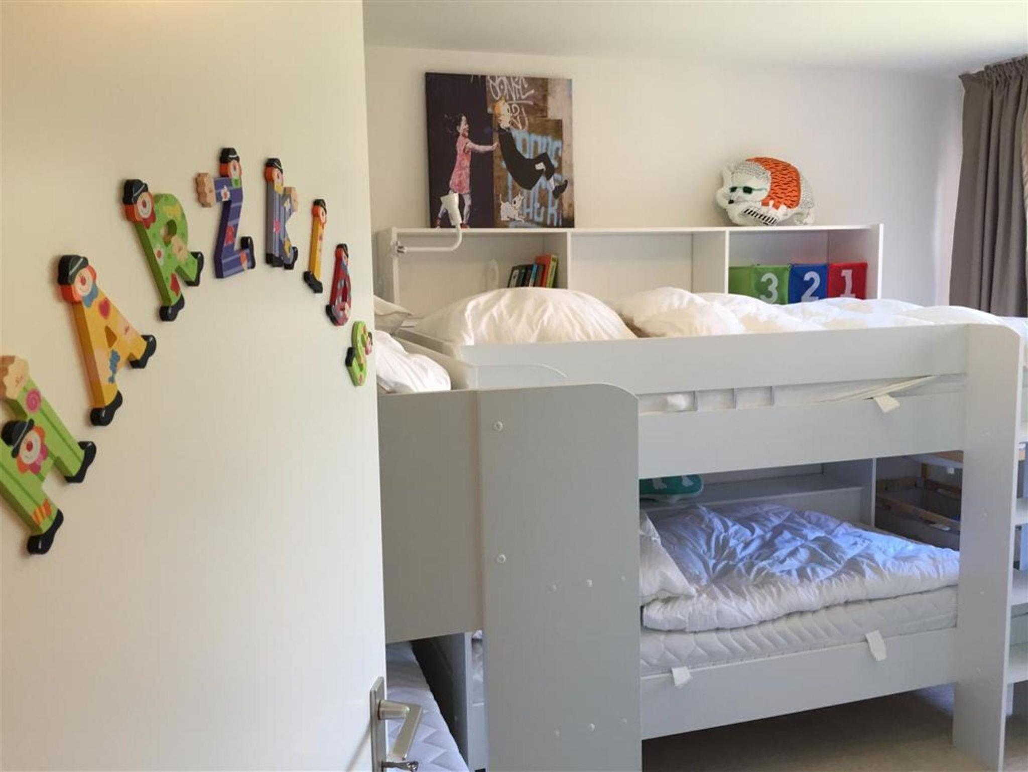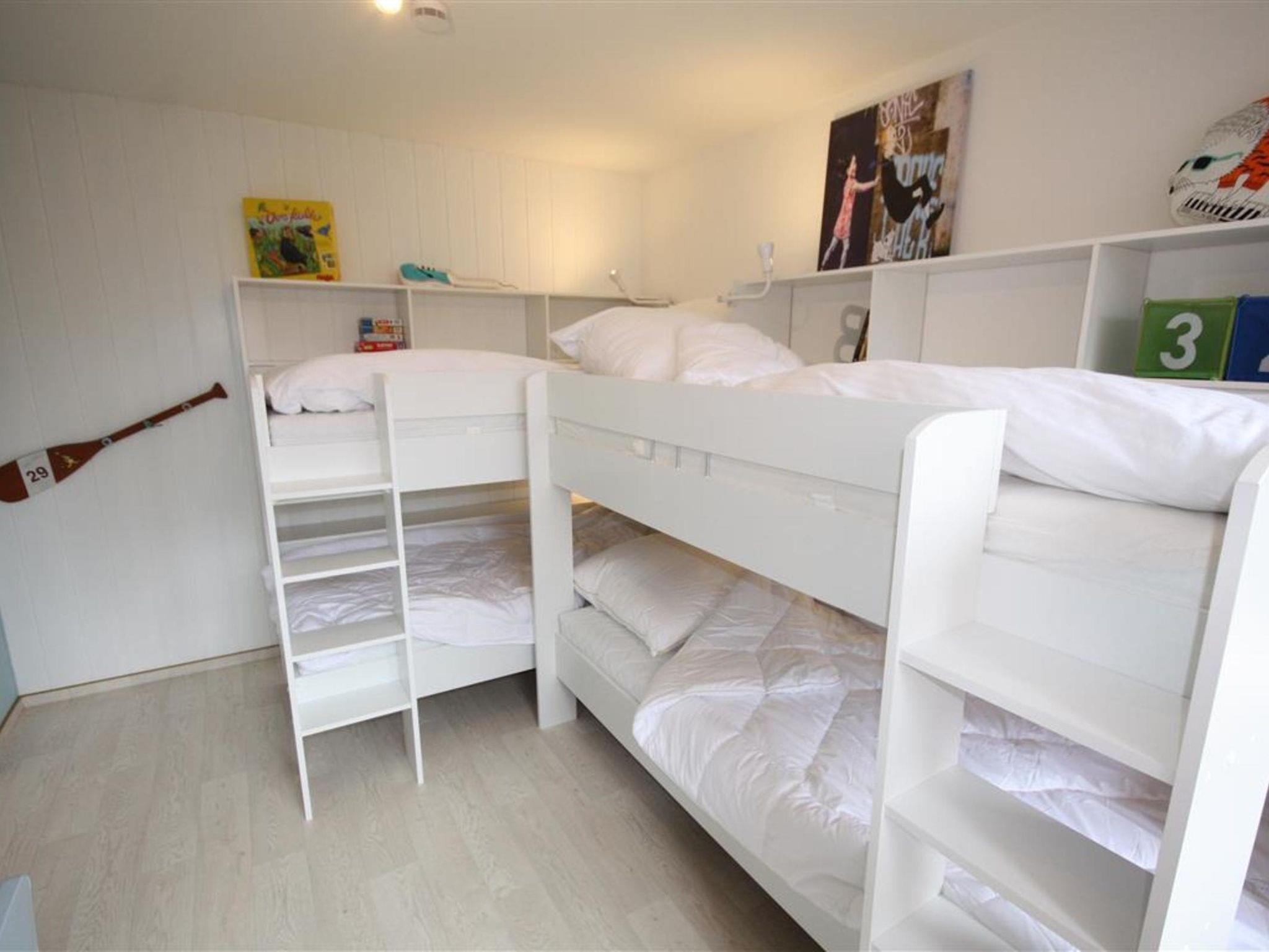 Die Schlafnische im Wohnbereich ist mit einem Boxspringbett (180×200 cm) ausgestattet und bietet erholsamen Komfort für zwei Erwachsene. Das separate Kinderzimmer verfügt über zwei großzügige Etagenbetten (je 90×200 cm) für bis zu vier Personen. Für die jüngsten Gäste stehen ein Beistellbett, ein Reisebett, eine Wickelkommode mit Babybadewannesowie ein Hochstuhl bereit.