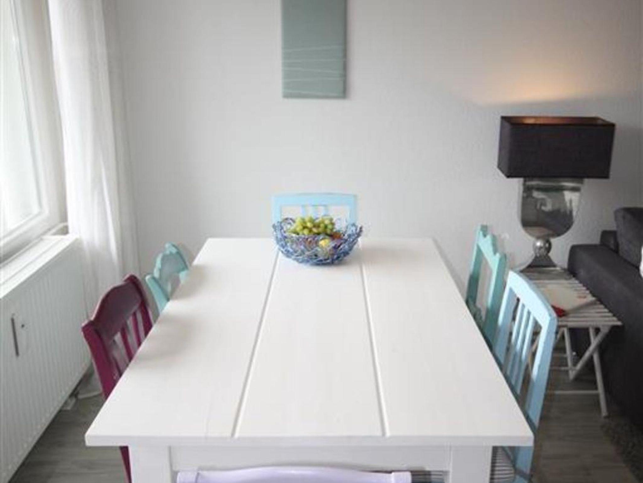 Die voll ausgestattete Küche verfügt über Ceranfeld, Backofen, großen Kühlschrank, Gefrierschrank, Spülmaschine, Mikrowelle und einen praktischen Apothekerschrank für Vorräte. Individuell ausgewähltes Geschirr und Besteck für Groß und Klein sorgt für eine angenehme Atmosphäre am liebevoll restaurierten Esstisch.