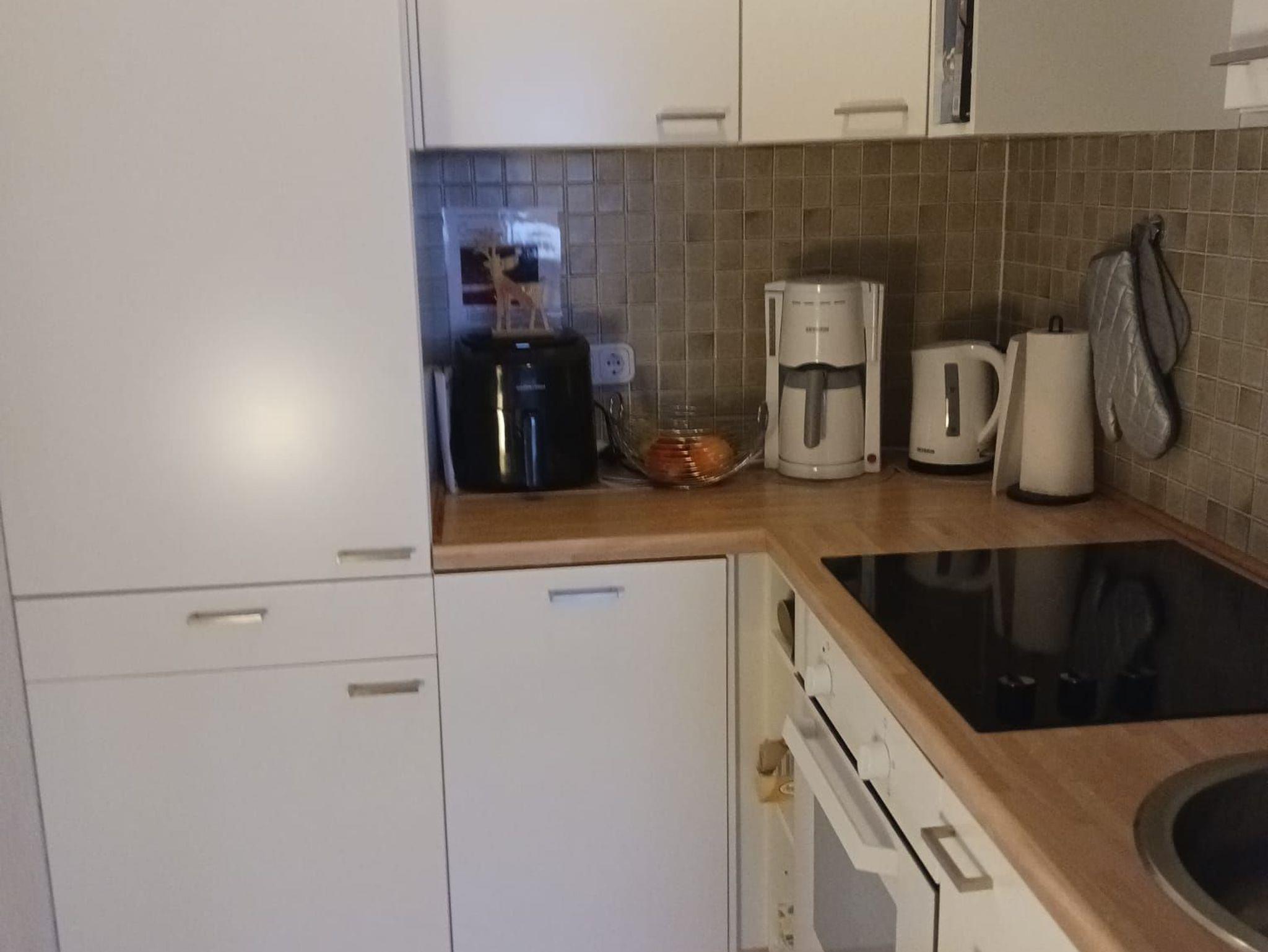 Gemütliche kleine Wohnung mit seperatem Schlafzimmer. Fussböden im Flur und Wohnzimmer neu. In der Küche alles was man braucht. Kühlschrank mit Gefrierfach, Ceranfeld, Backofen, Kaffeemaschine ,Wasserkocher,Eierkocher,Toaster,Heißluftfritteuse