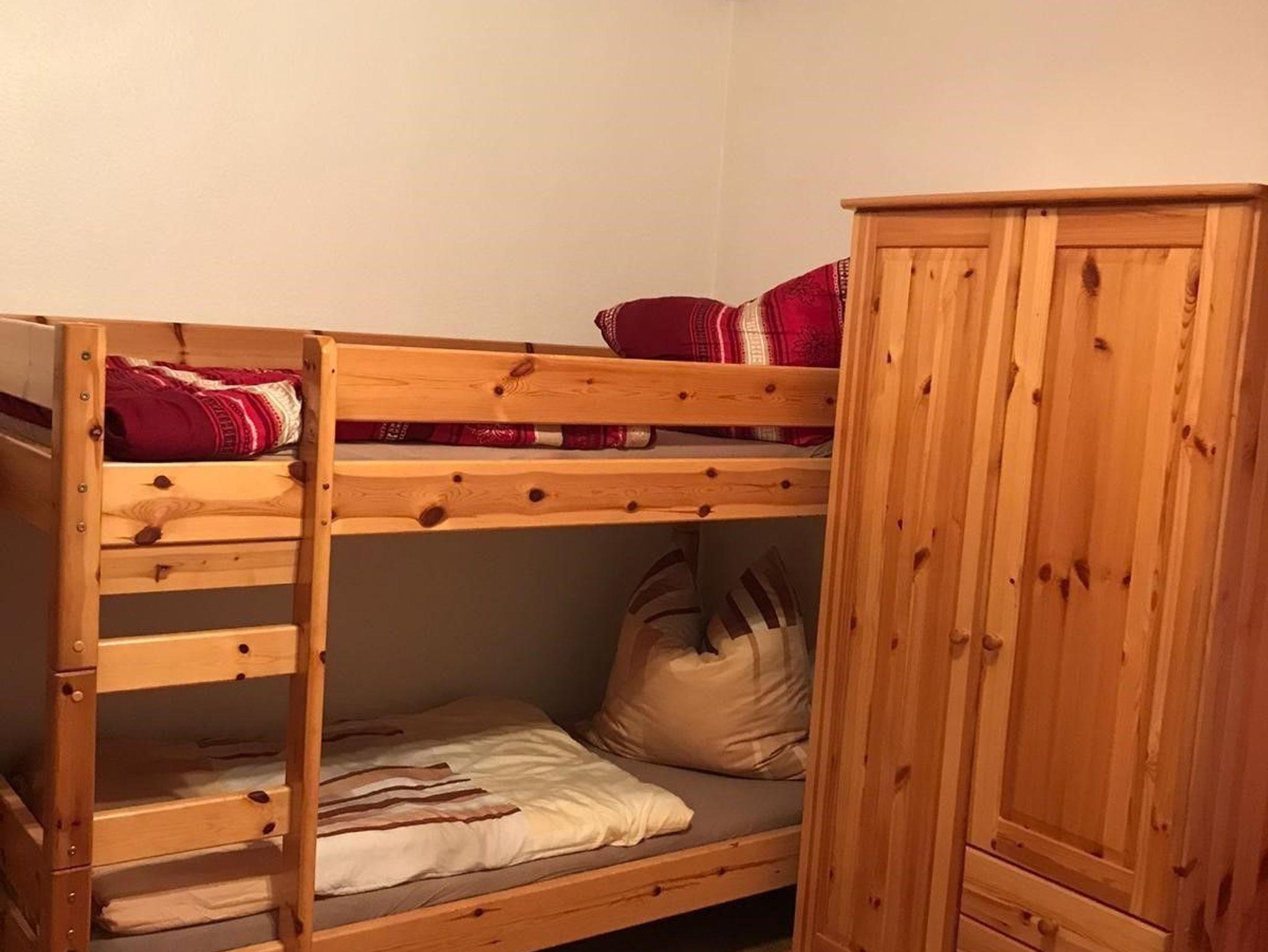 Schlafzimmer mit Ehebett und Etagenkinderbett