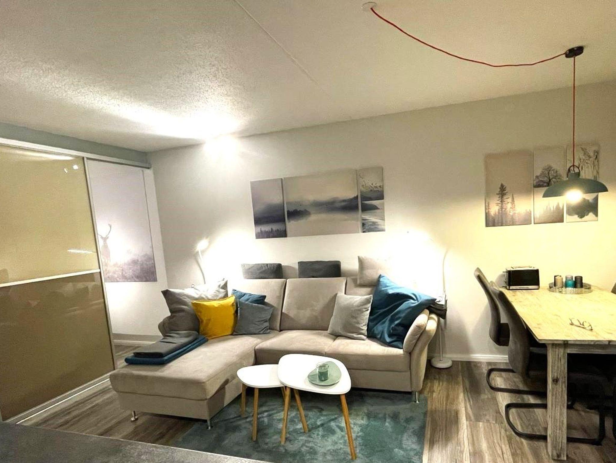 Die gemütlich eingerichtete und 2023 umfangreich sanierte Ferienwohnung E-III-E-3 befindet sich im Ferienpark Glockenberg in Altenau. Sie verfügt über einen Wohnraum, einen separaten Schlafraum mit Doppelbett sowie ein kleines Zimmer mit zwei versetzten Einzelbetten.