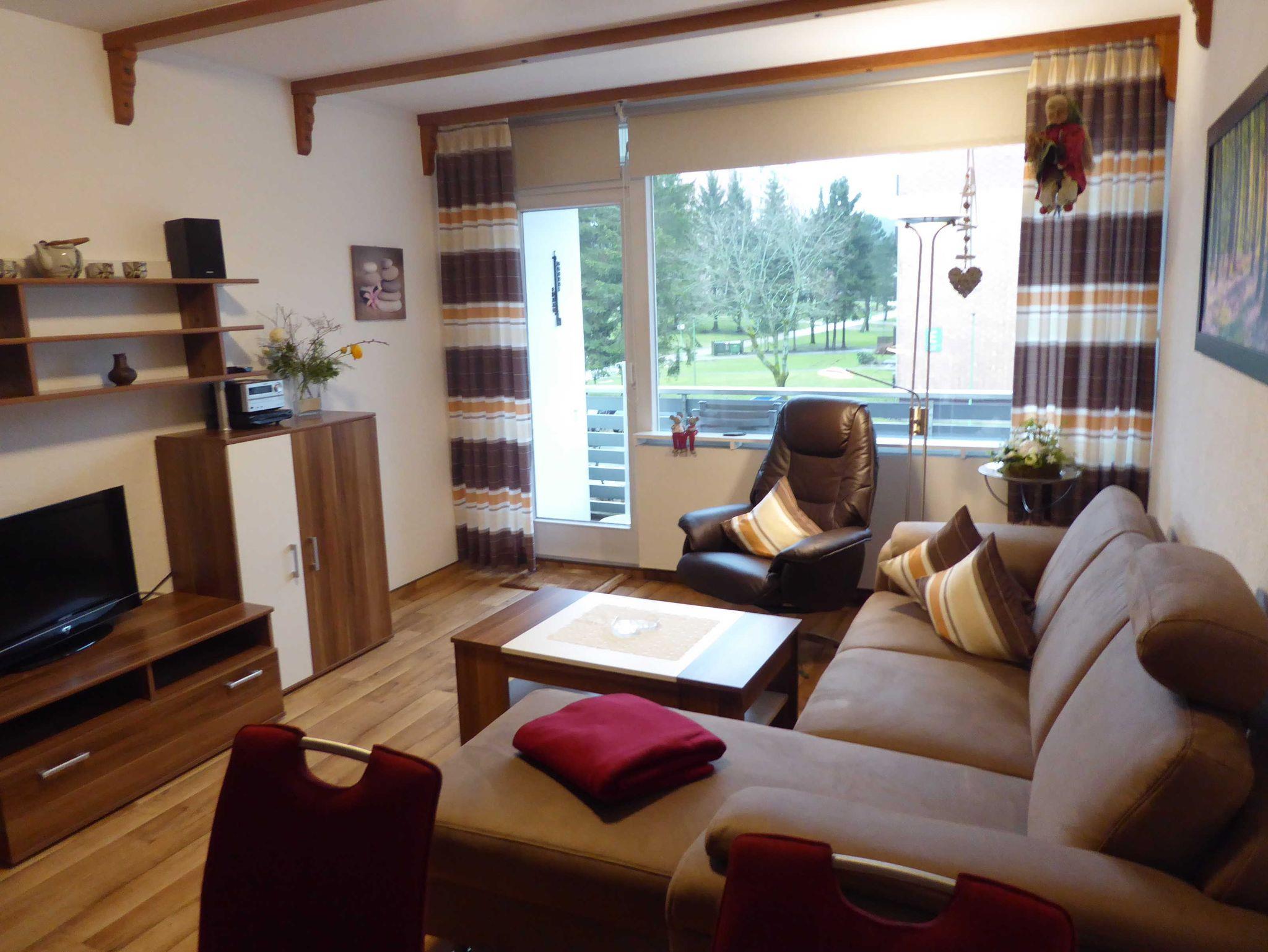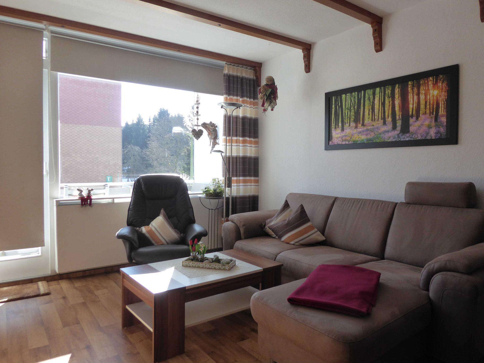 Die komplett renovierte Ferienwohnung Sonnenblume in Altenau im Oberharz verfügt über ein gemütliches, modern eingereichtetes Wohnzimmer mit einer bequemen Couchgarnitur, einem verstellbaren Fernsehsessel, großem Fachbildfernseher, Kabel TV, CD- und DVD-Player, Radio, Spielesammlung, Bücher sowie einem Esstisch mit vier Stühlen. Der sich anschließende Schlafbereich mit einem Boxspringbett 1,80 x 2,00 m, Nachttischen und geräumigem Schrank kann durch einen Vorhang separiert werden. Die Ferienwohnung Sonnenblume verfügt über ein weiteres Schlafzimmer mit einem Doppelbett 1,80 x 2,00 m, einem Schrank und einem Flachbildfernseher. Es bietet einen weiten Blick in den angrenzenden Ferienpark. Die neue Küche ist komplett eingerichtet.