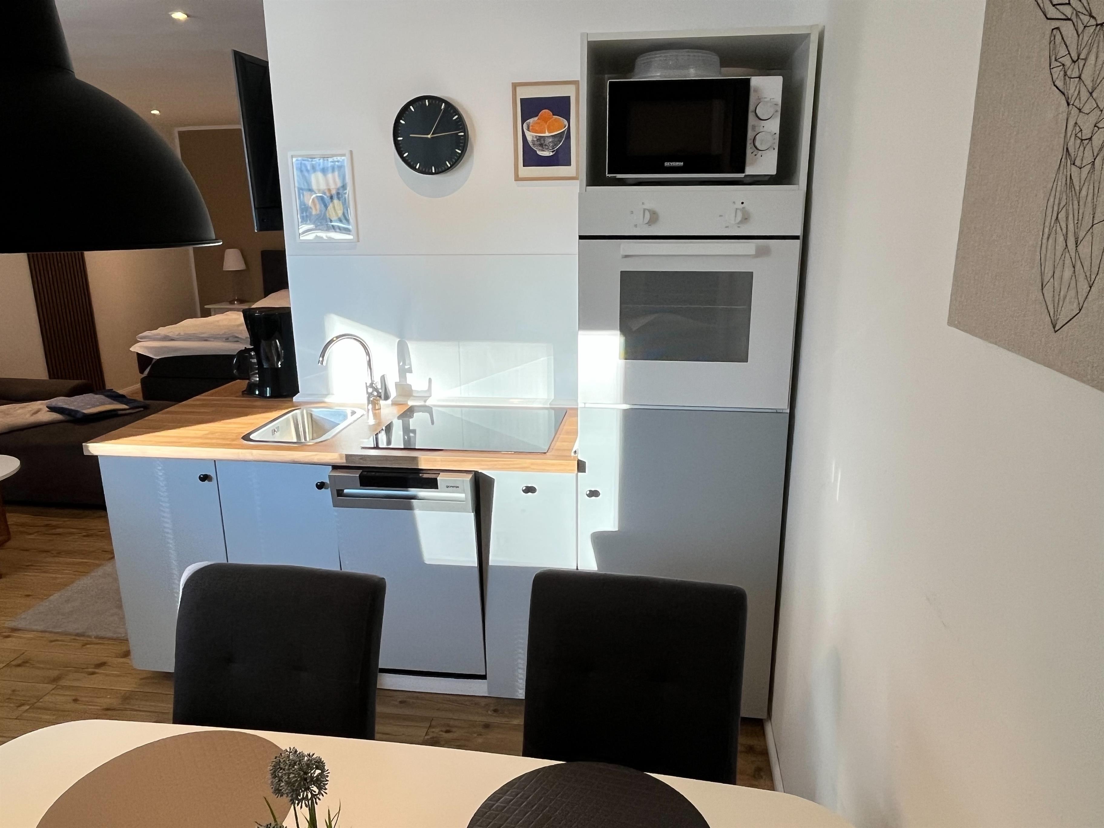 Das Apartment wurde im Mai 2021 komplett neu renoviert und verfügt über 1 Schlafzimmer (großes Bett 1,8m x2 m), eine Schlafcouch, 1 Badezimmer, einen Flachbild-TV, einen Essbereich, eine voll ausgestattete Küche und einer Terrasse mit Gartenblick.