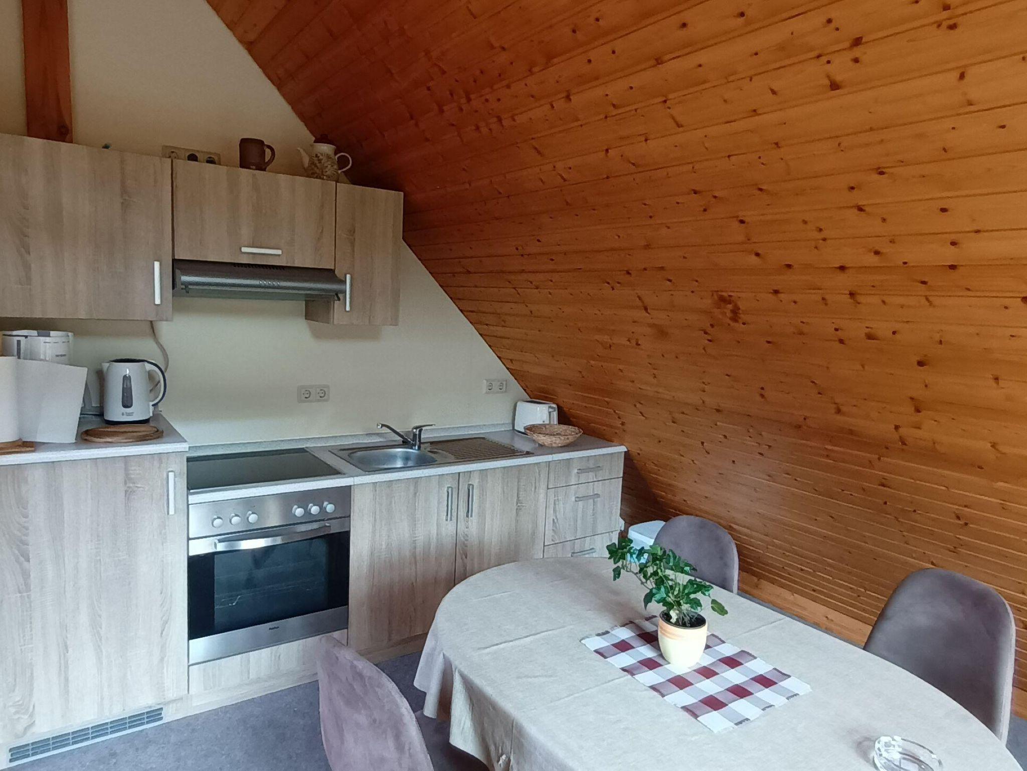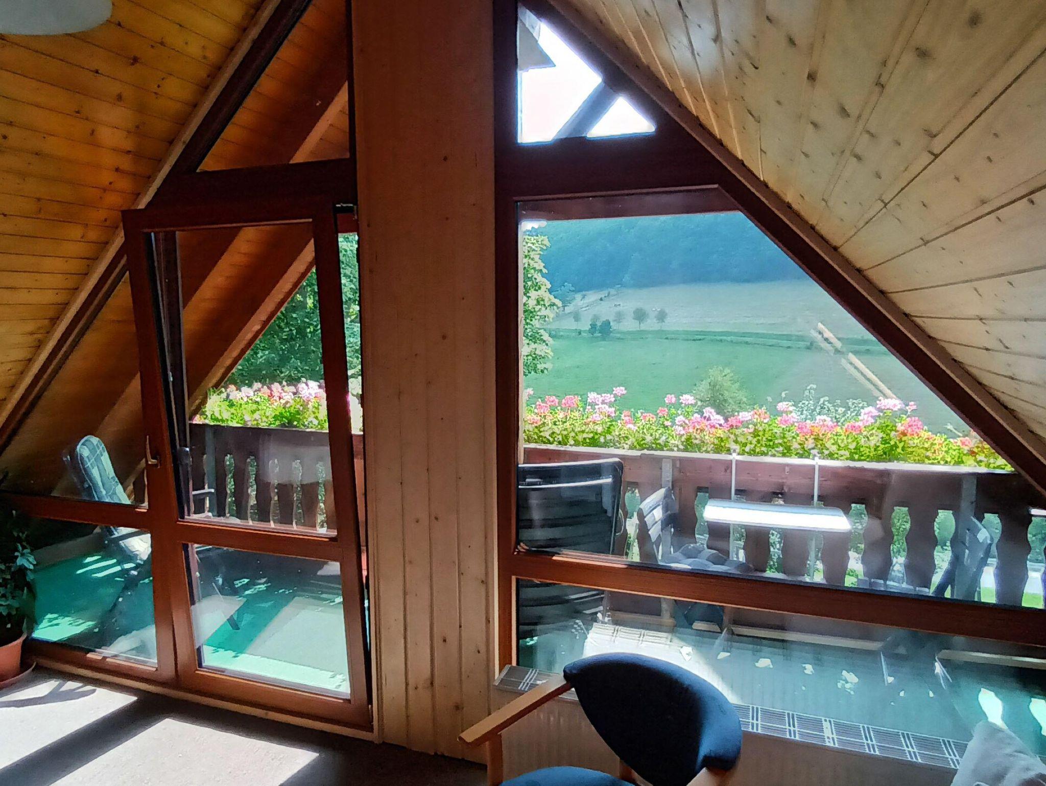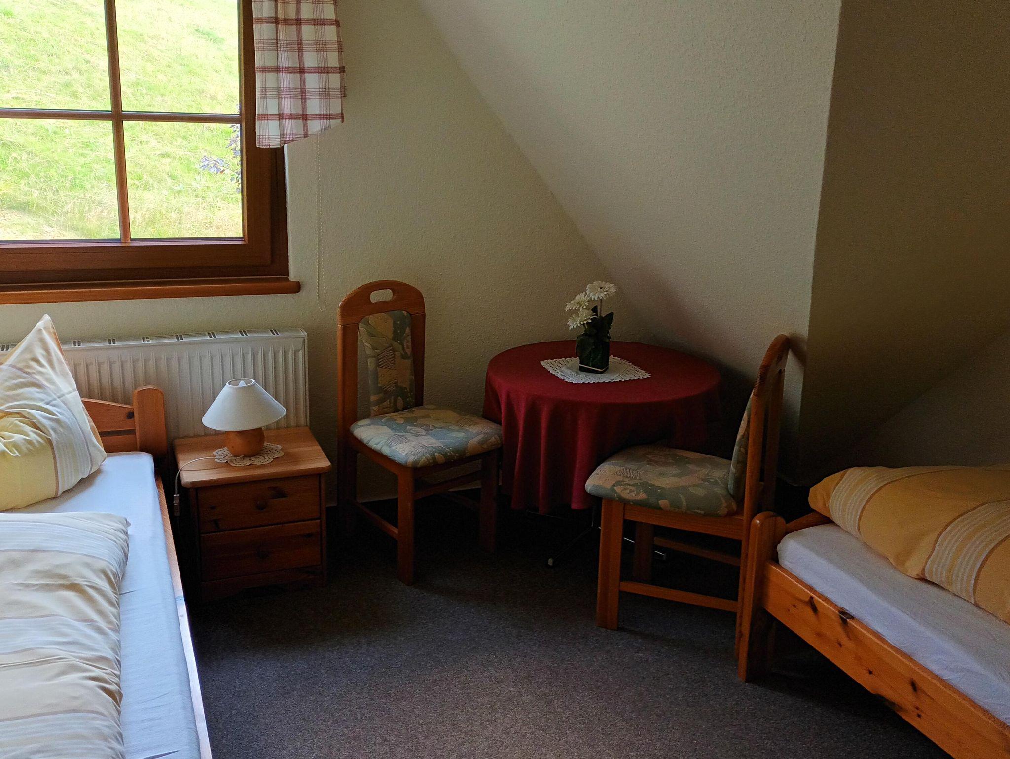 Behaglich eingerichtete Ferienwohnung, bewertet mit 3 Sternen nach Klassifizierung des Deutschen Tourismusverbandes e.V., ca. 60 m², 2 getrennte Schlafzimmer mit je 2 Betten sowie einer Aufbettung, kleiner Flur mit Garderobe, Bad mit Dusche/WC, Wohnküche, Balkon mit Panoramablick ins wildromatische Tal Zusätzliches Kinderbett für Kinder bis 10 Jahre für 5 € / Nacht möglich, Anfrage bitte direkt beim Vermieter