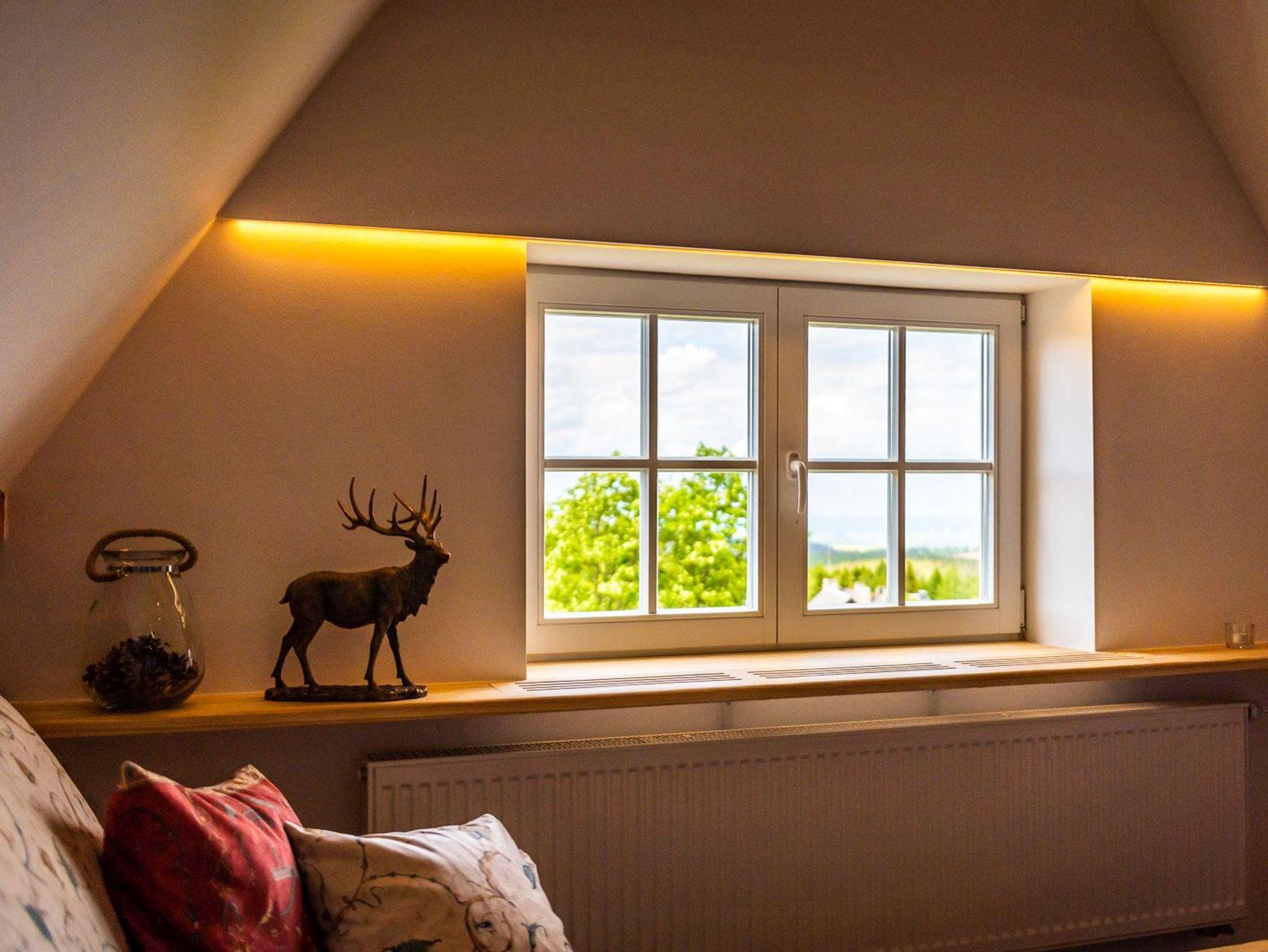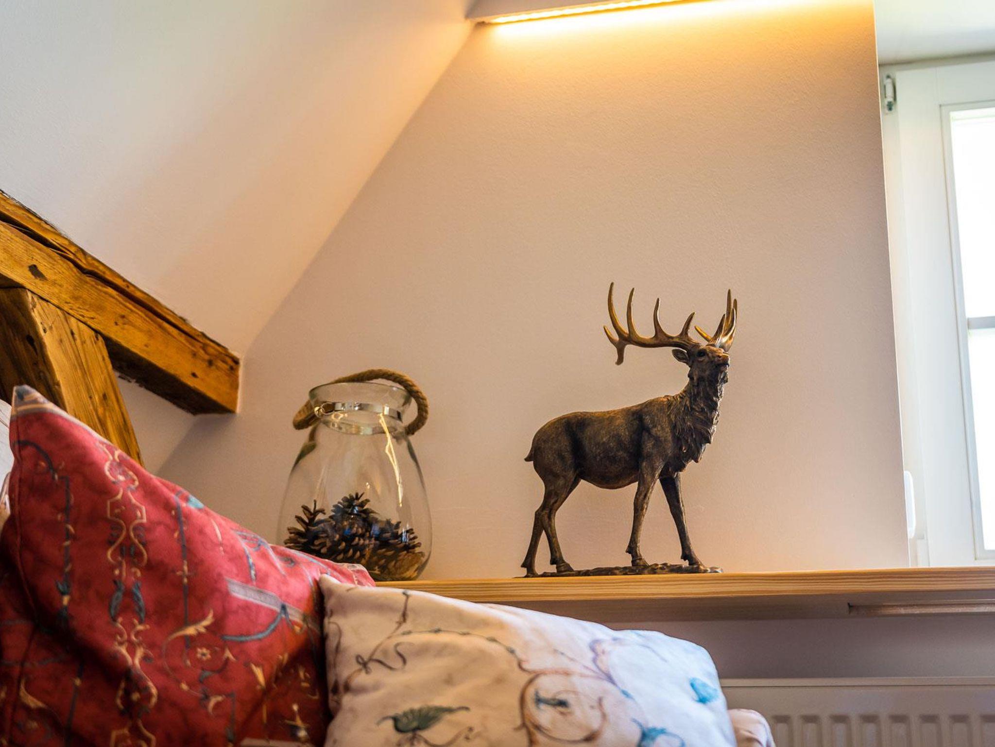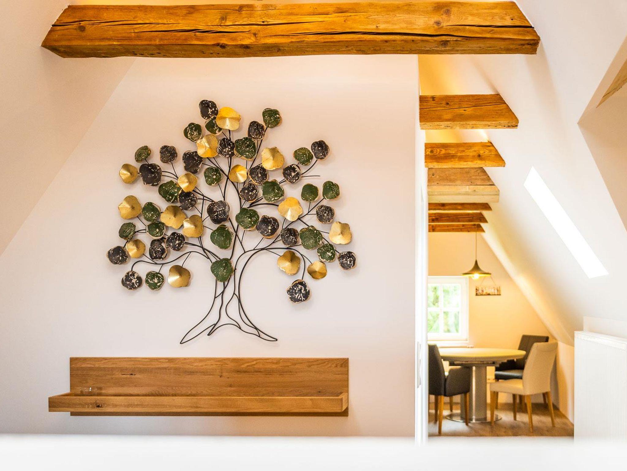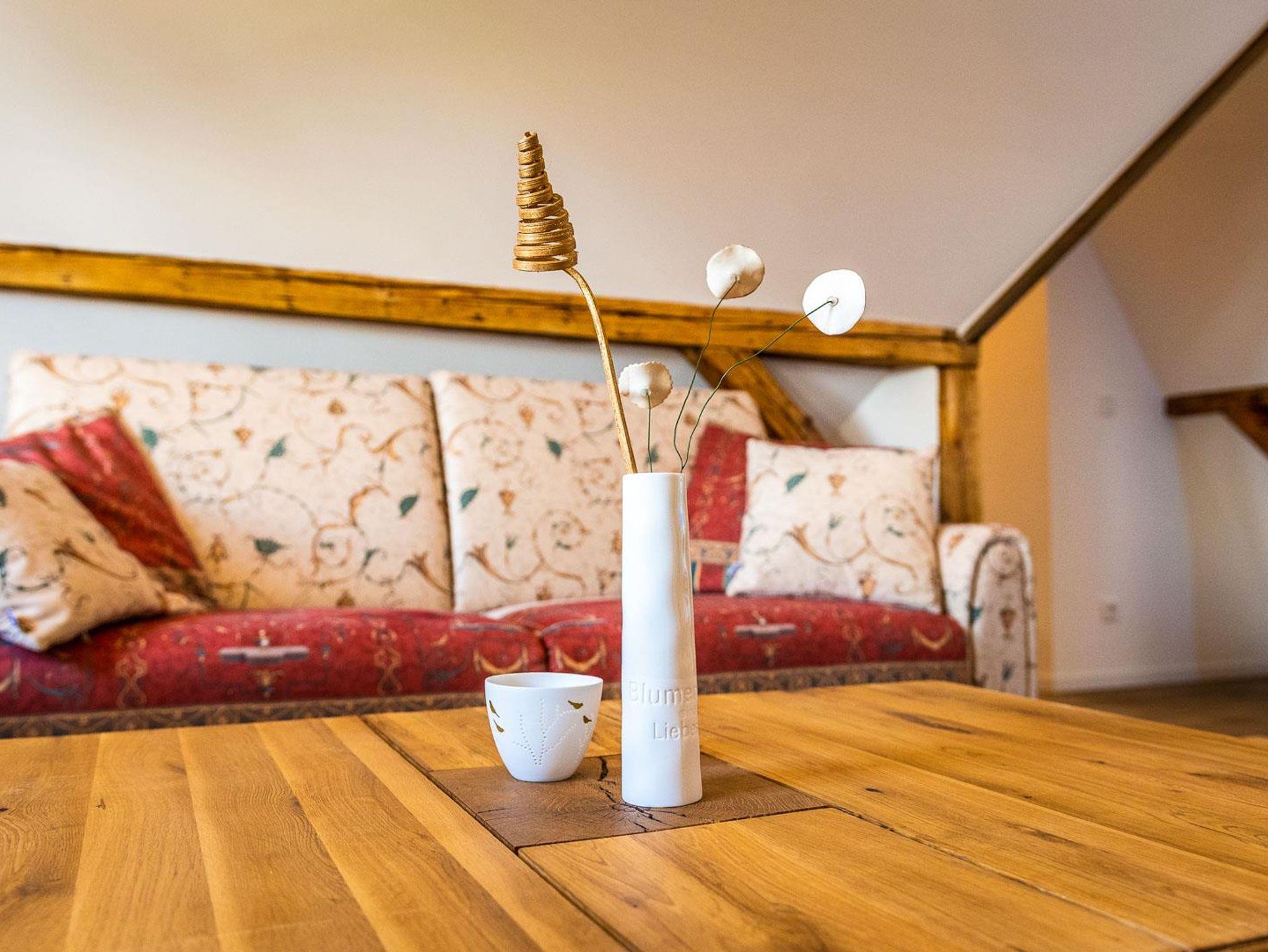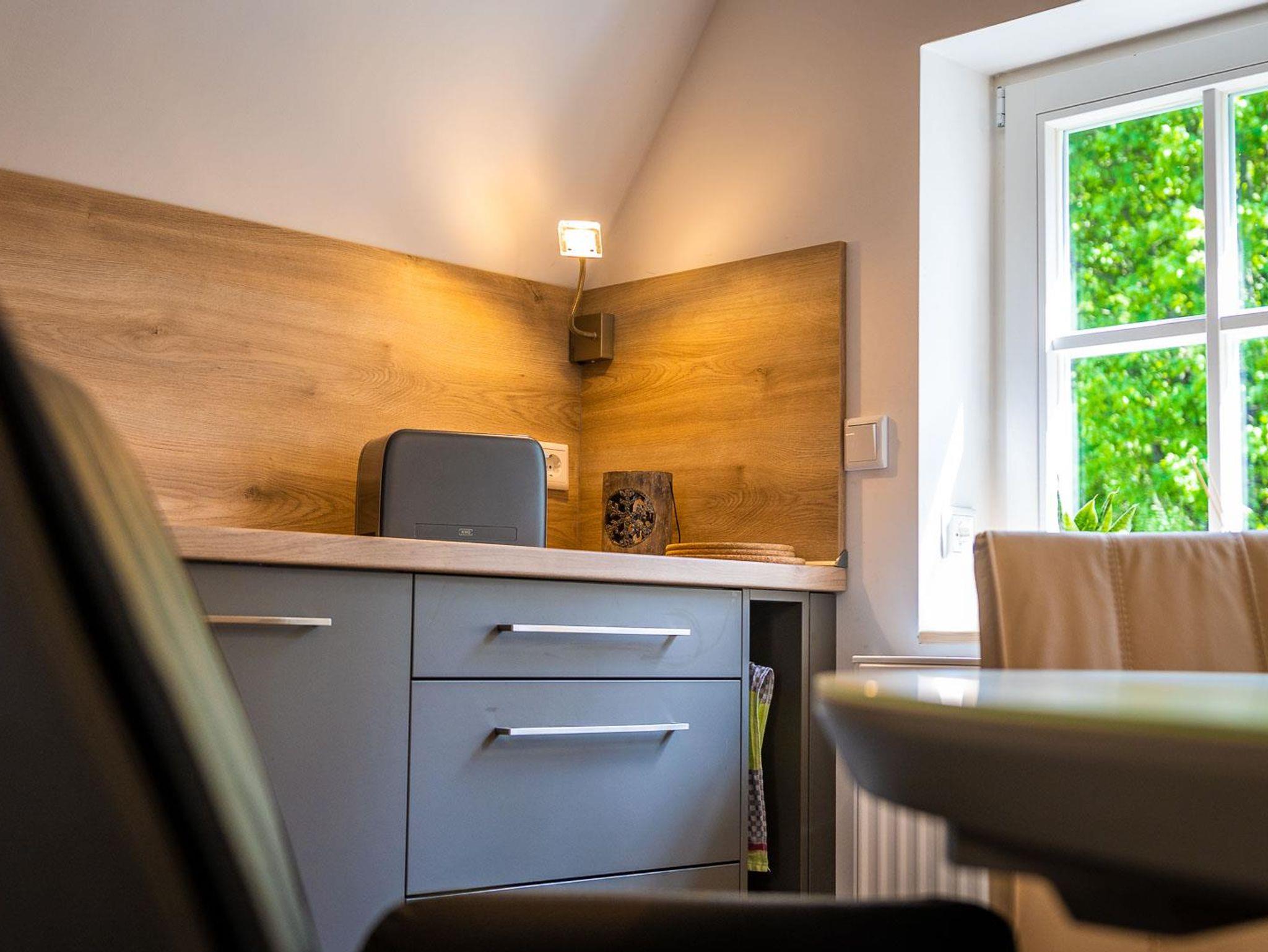 Die neue Ferienwohnung entstand 2022 durch Instandsetzung der Räume im Dachgeschoss. Das Ergebnis ist ein attraktives Appartment mit 95 qm Größe, welches durch einen eigenen Flur in der 1. Etage betreten wird. Von dort erreicht man das Dachgeschoss, indem ein großzügiger und offener Wohnbereich (nach Norden) und die Küche mit hochwertiger Einbauküche und Speisebereich (nach Süden, Vollausstattung) aufwartet. Ergänzt durch zwei Schlafbereiche (1 x Doppelbett nach Westen; 2 Einzelbetten sowie eine Aufbettung nach Osten - keine Türen), sowie das Badezimmer. Bis in die Dachspitze durchdacht unser herrliches Urlaubs- oder eben Himmelreich!?