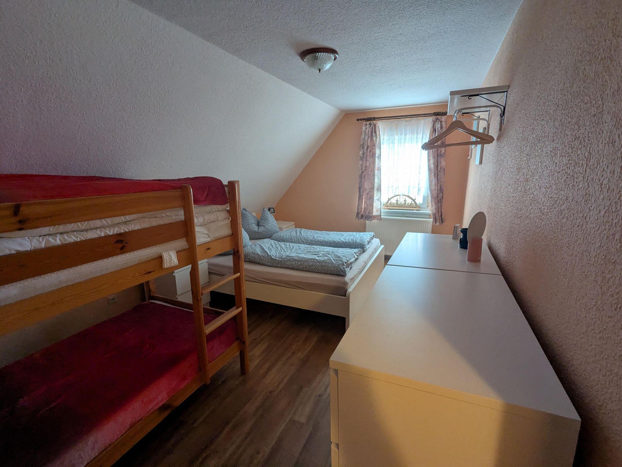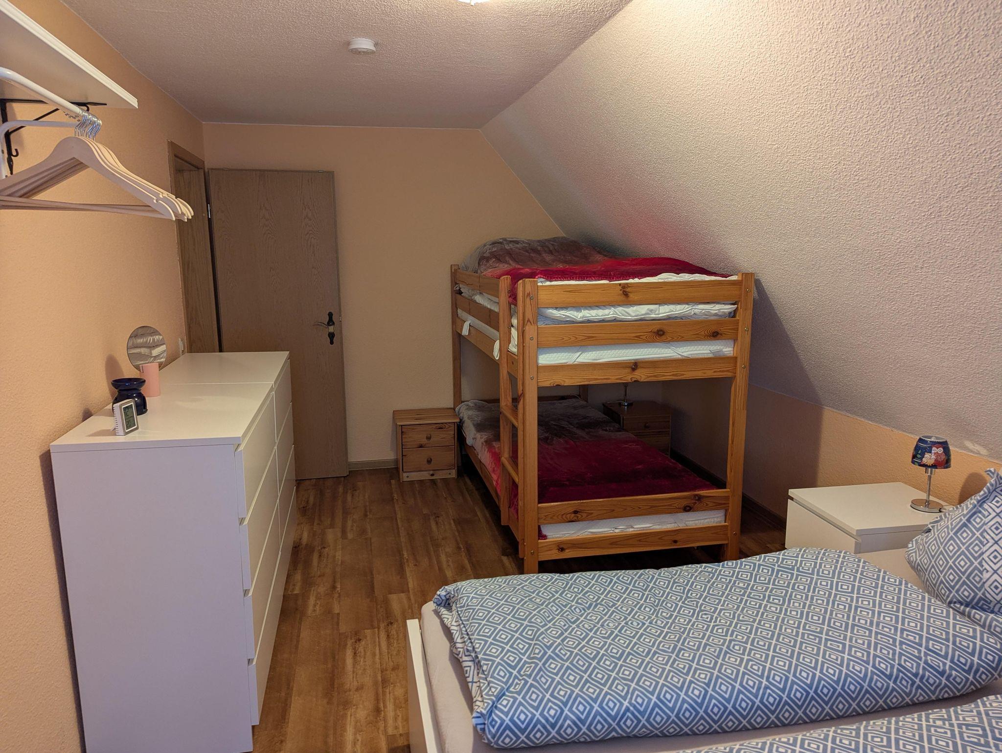 Der Schlafraum ist mit einem Doppelbett sowie einem Etagenbett ausgestattet. Ein zweiter Schlafraum hat zwei Einzelbetten. Je 1x Bettwäsche und Handtücher pro Person sind bei uns im Preis inbegriffen. Für unsere ganz kleinen Gäste stehen ein Babybett (Reisebett), ein Laufgitter und ein Hochstuhl zur Verfügung.