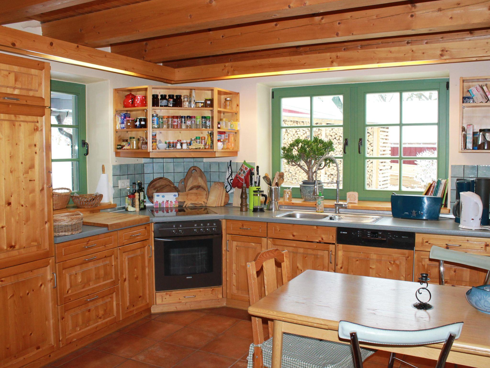 Die Küche ist mit Kühlschrank, Gefriereinheit, Wasserkocher, Kaffeemaschine, Backofen, Herd, Geschirrspüler, Espressokocher und viel Zubehör ausgestattet.