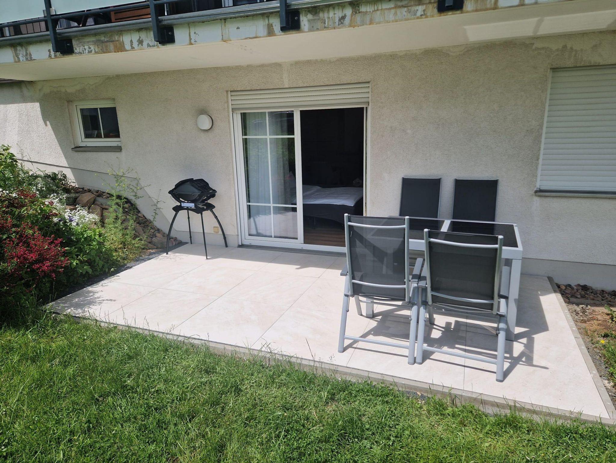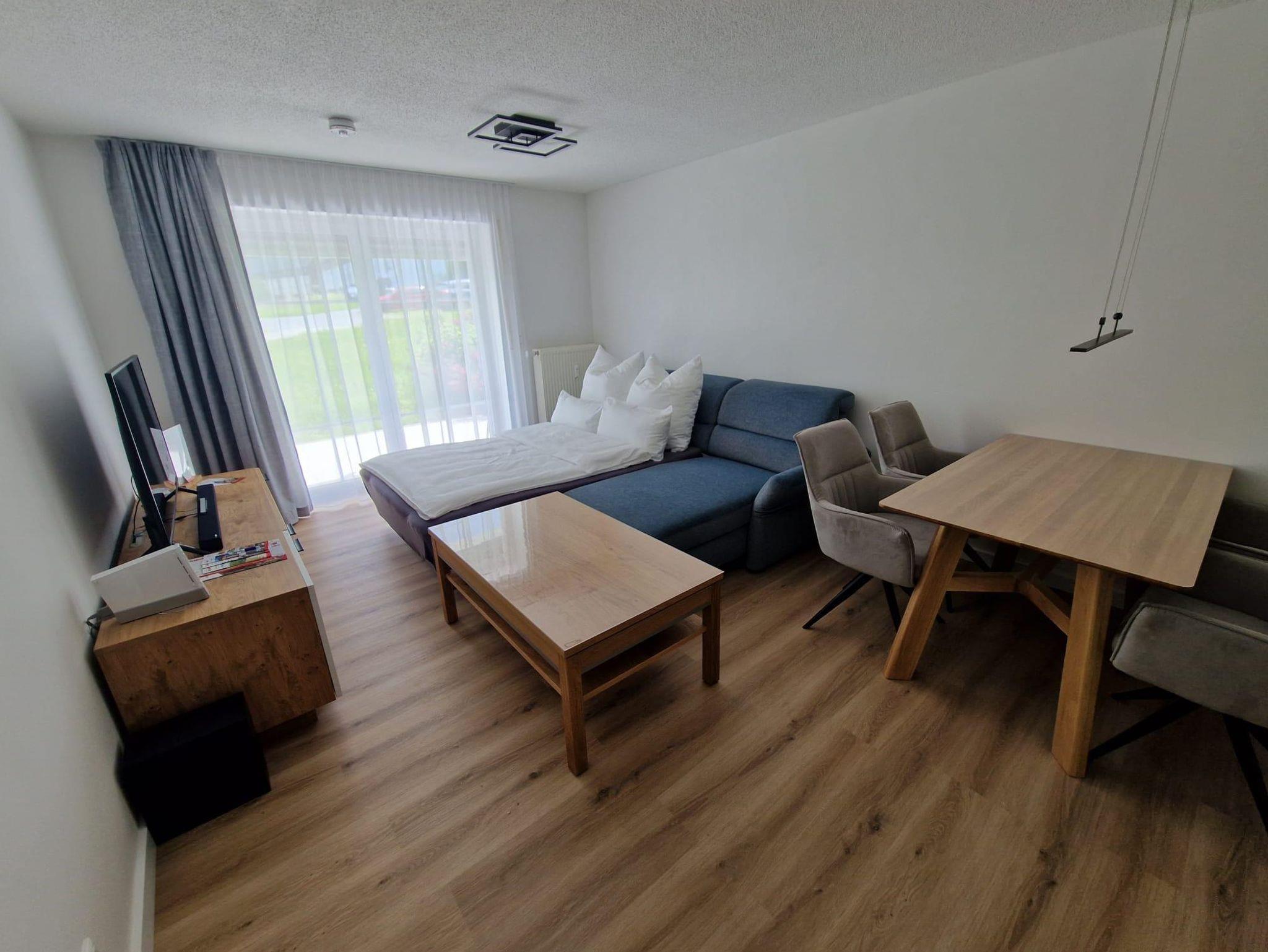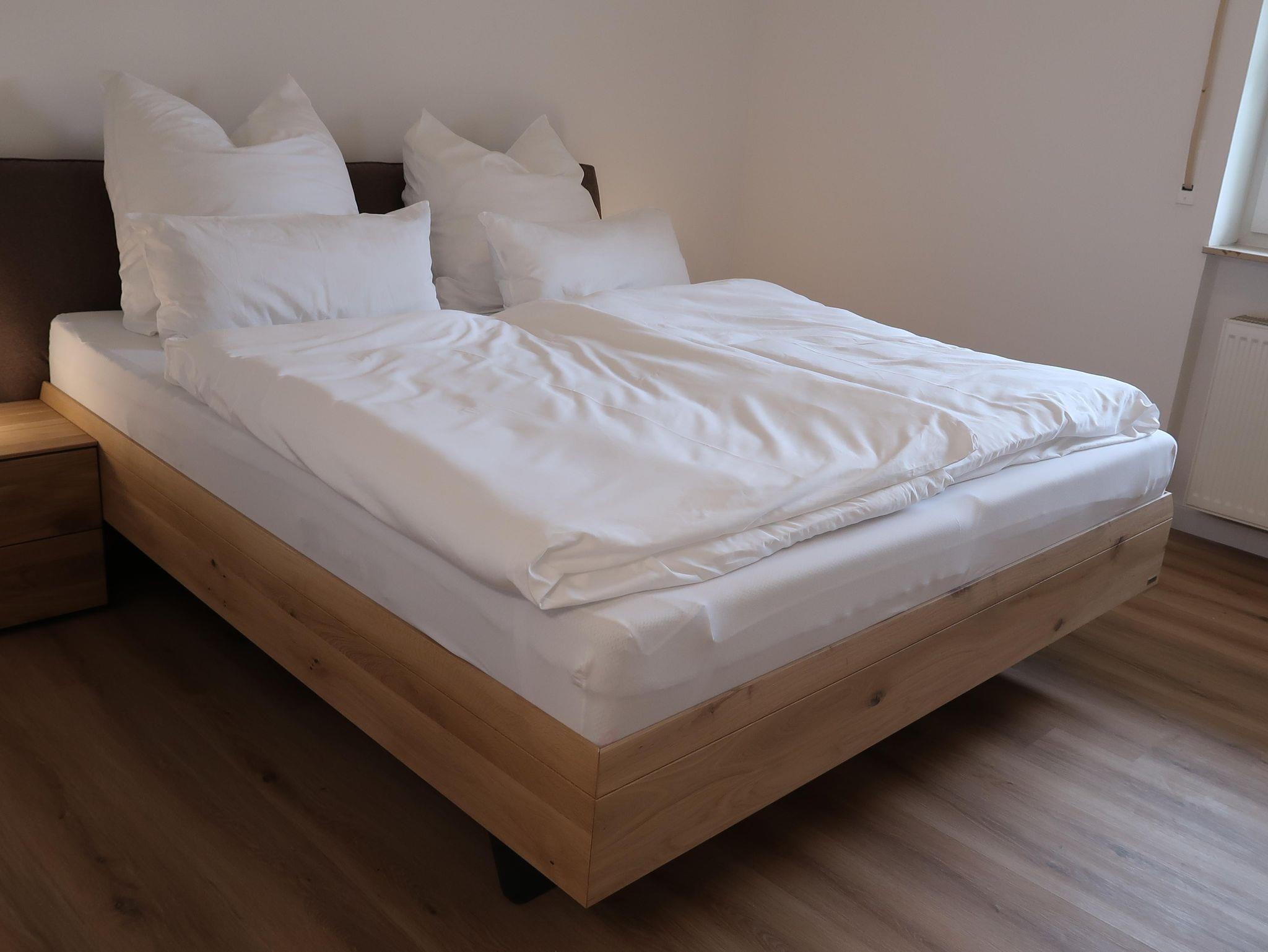 Schon beim Betreten empfängt Sie ein stilvoller Eingangsbereich mit hochwertiger Ausstattung wie Garderobe, Spiegel und massiver Schlüsselablage der Marke Hartmann. Die großzügige Wohnküche vereint Kochen, Essen und Wohnen. Ein Sofa mit Lendenstütze lässt sich zum Bett (140 × 200?cm inkl. Topper) umfunktionieren. Smart-TV, Soundbar, RTL+ und Wii bieten Unterhaltung. Am Massivholztisch mit Schalensesseln (Niehoff) wird gegessen oder gespielt. Die voll ausgestattete Küche enthält auch Tee, Kaffee, Öl, Salz & Pfeffer. Im Schlafzimmer erwartet Sie ein Massivholzbett (Thielemeyer) auf Komforthöhe, eine Testsieger-Matratze, edle Bettwäsche (Erwin Müller) und dimmbare Nachttischlampen. Das Bad überzeugt mit Walk-In-Regendusche (Hansgrohe), spülrandloser Toilette (Villeroy & Boch) und flauschigen Handtüchern (redbest von Erwin Müller). Auf der Terrasse erwarten Sie Gartenmöbel, Weber-Grill und ein schöner Garten mit Blick auf den Geisingberg – für stilvolle Erholung mitten in der Natur.