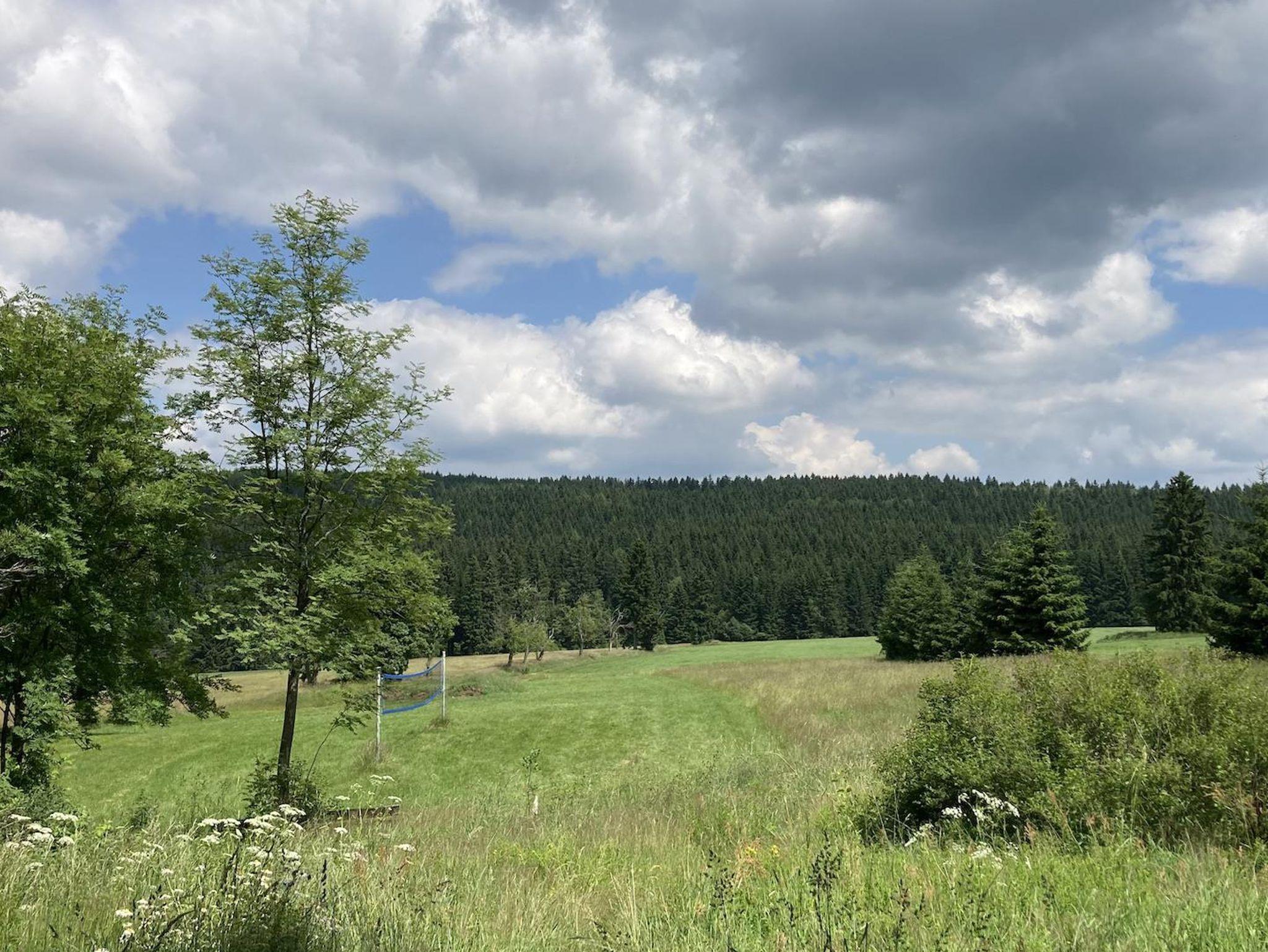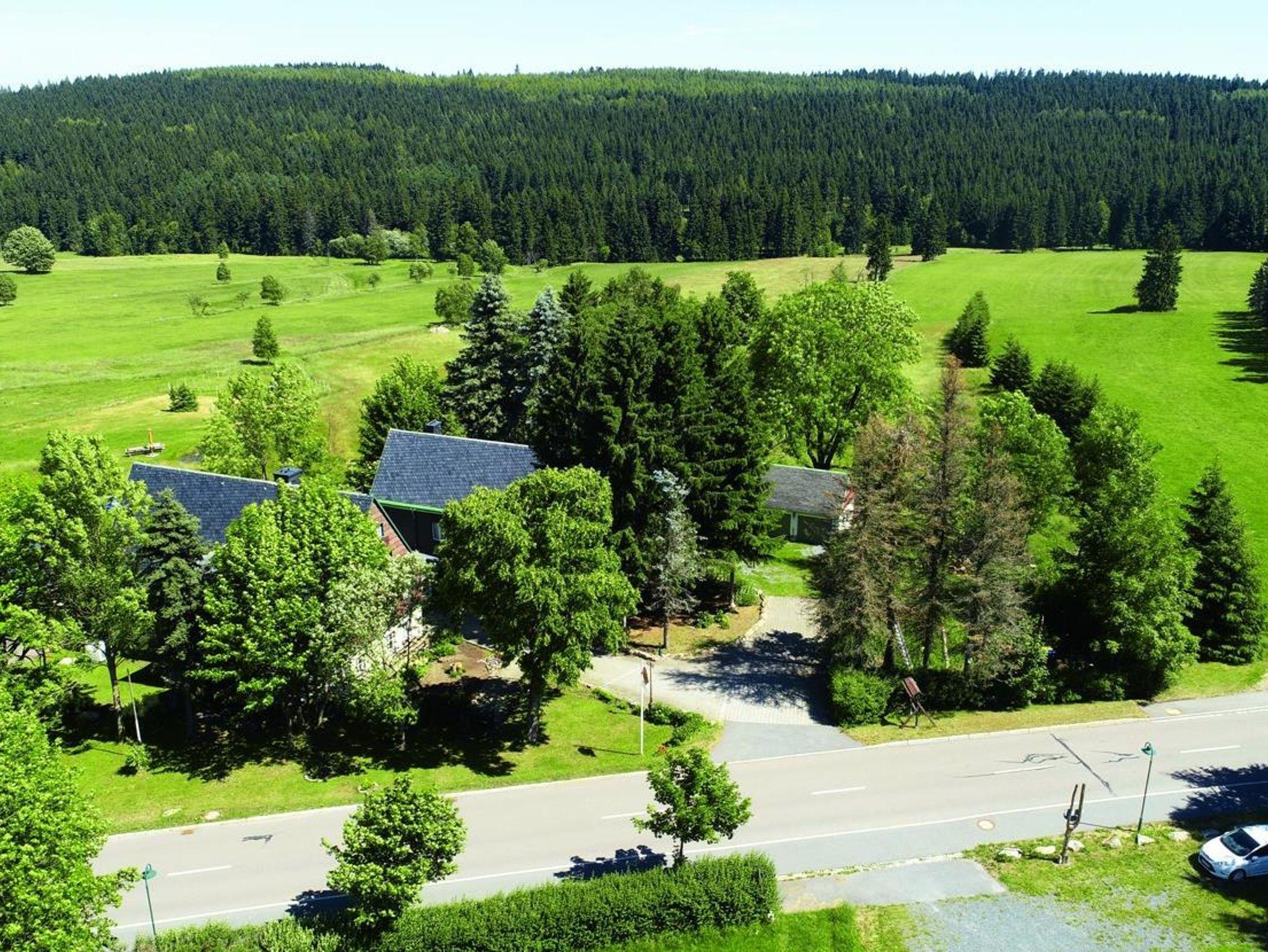 Um 1900 erbaut, erlangte das Objekt Bekanntheit unter dem Namen Hutzenhäusel. Der erzgebirgisch-vogtländische Begriff „Hutzen“ bedeutet dabei soviel wie „zu den Nachbarn auf Besuch gehen“ oder „zusammenrücken“ oder „zusammensitzen“. Die Fassade des Haupthauses ist heute denkmalgeschützt. Unsere Pension und Ferienwohnanlage verfügt über ein Haupthaus mit vier Ferienwohnungen und einem Märchenzimmer (Zweibettzimmer). Ein separater Bungalow ist mit drei Doppelzimmer und Balkon oder Terrasse ausgestattet. Eine große Steinterrasse mit Blick über die weiträumigen Wiesen auf den Wald. Outdoor-Spiele wie Badminton, Fußball etc. sind möglich. Für die Grillfreunde stehen drei Varianten zur Verfügung. Die Größte ist gleichzeitig auch eine Feuerstätte, die mit einem stabilen Schwenkgrill versehen ist - lauschige Abende am offenen Feuer garantiert. Ein großzügig gestalteter Saunabereich rundet das Angebot ab.