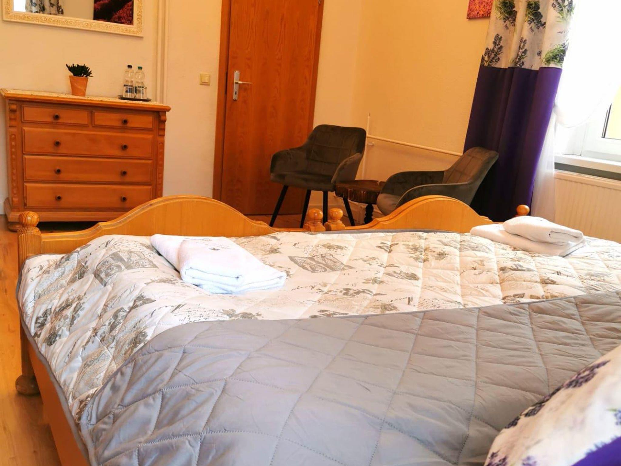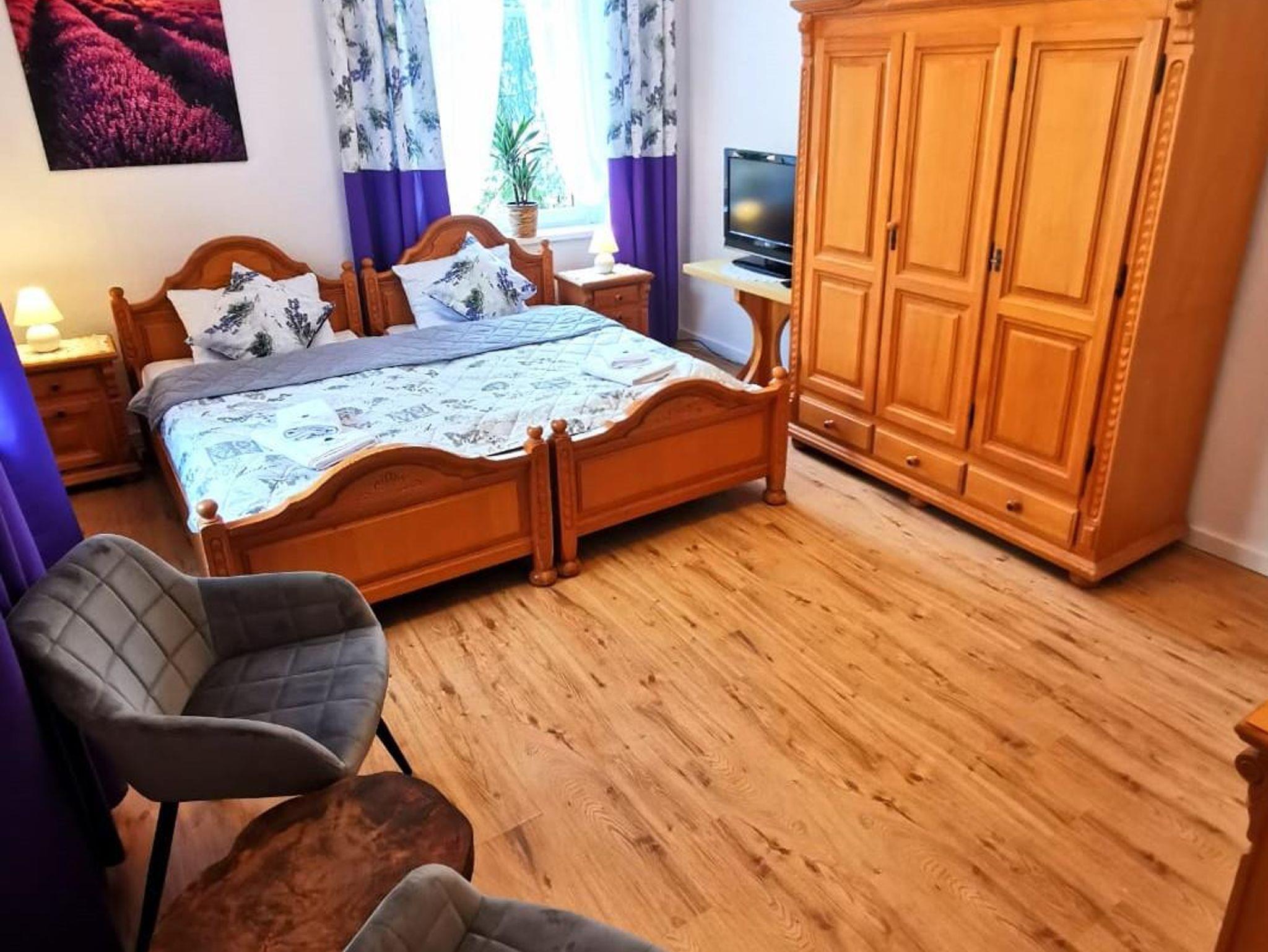 Das Zimmer ist 18 Quadratmeter groß und verfügt über zwei zusammengestellte Einzelbetten, zwei Nachtschränke, einen Schrank sowie einen Fernseher. Selbstverständlich verfügt das Zimmer über ein eigenes Badezimmer mit Dusche, WC und Haartrockner. Bettwäsche und Handtücher sind kostenfrei vorhanden. Rauchen ist nicht gestattet. Privatparkplatz steht kostenfrei an der Unterkunft (Reservierung ist nicht erforderlich) zur Verfügung.