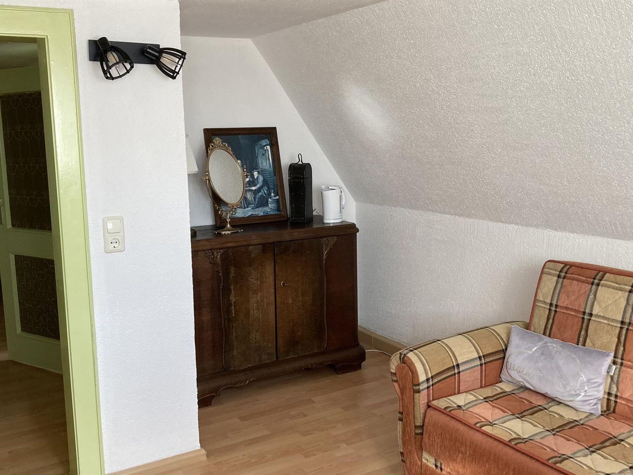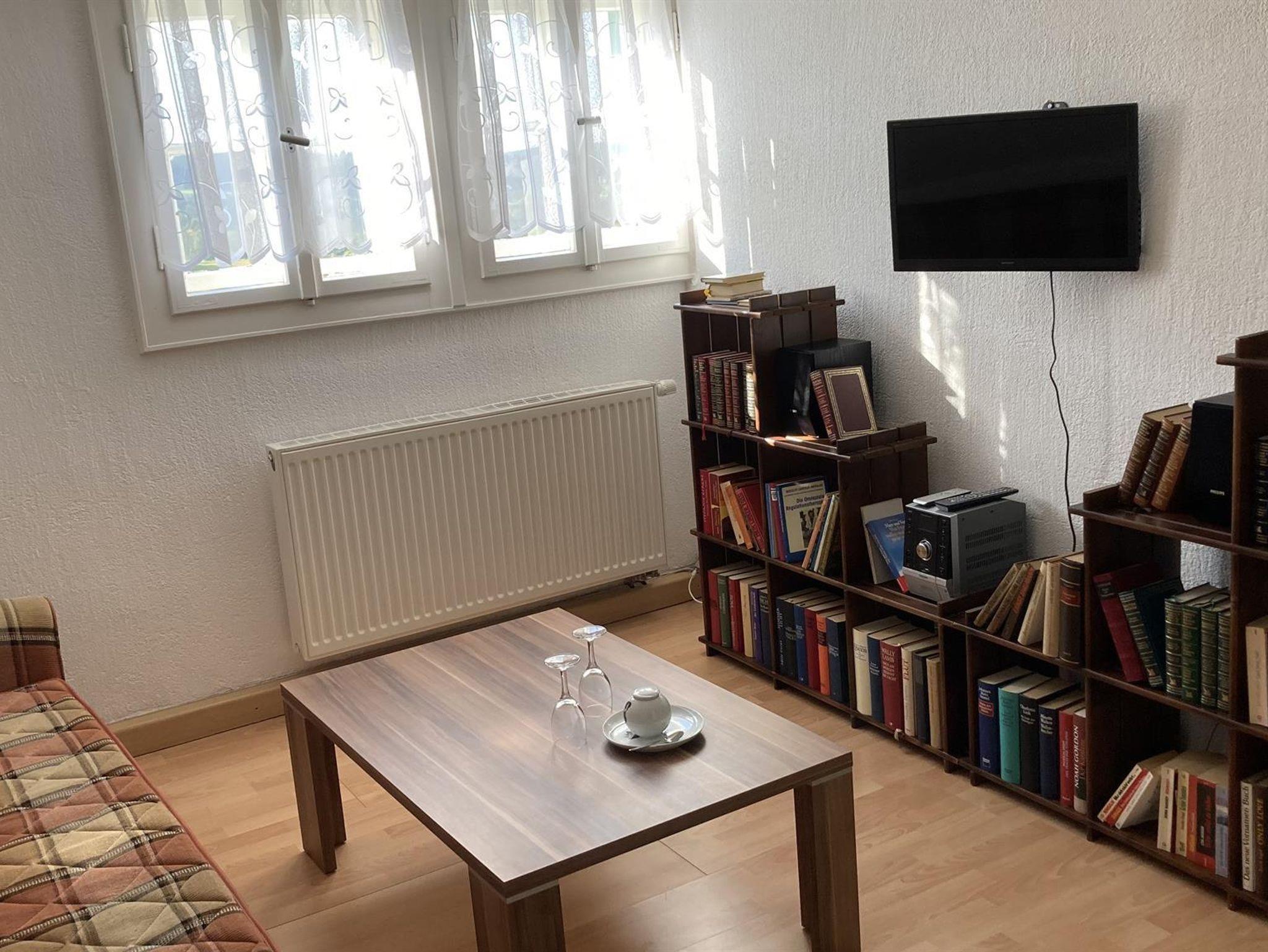 Die Wohnung mit ihrem Aufenthaltsraum in dem eine umfangreiche Büchersammlung zur Verfügung steht, hat ausreichend Platz sich mit der gesamten Familie zu entspannen. Das Sofa lässt sich zu einer Schlafgelegenheit umfunktionieren. Es gibt zusätzlich zwei großzügig gestaltete Schlafzimmer.