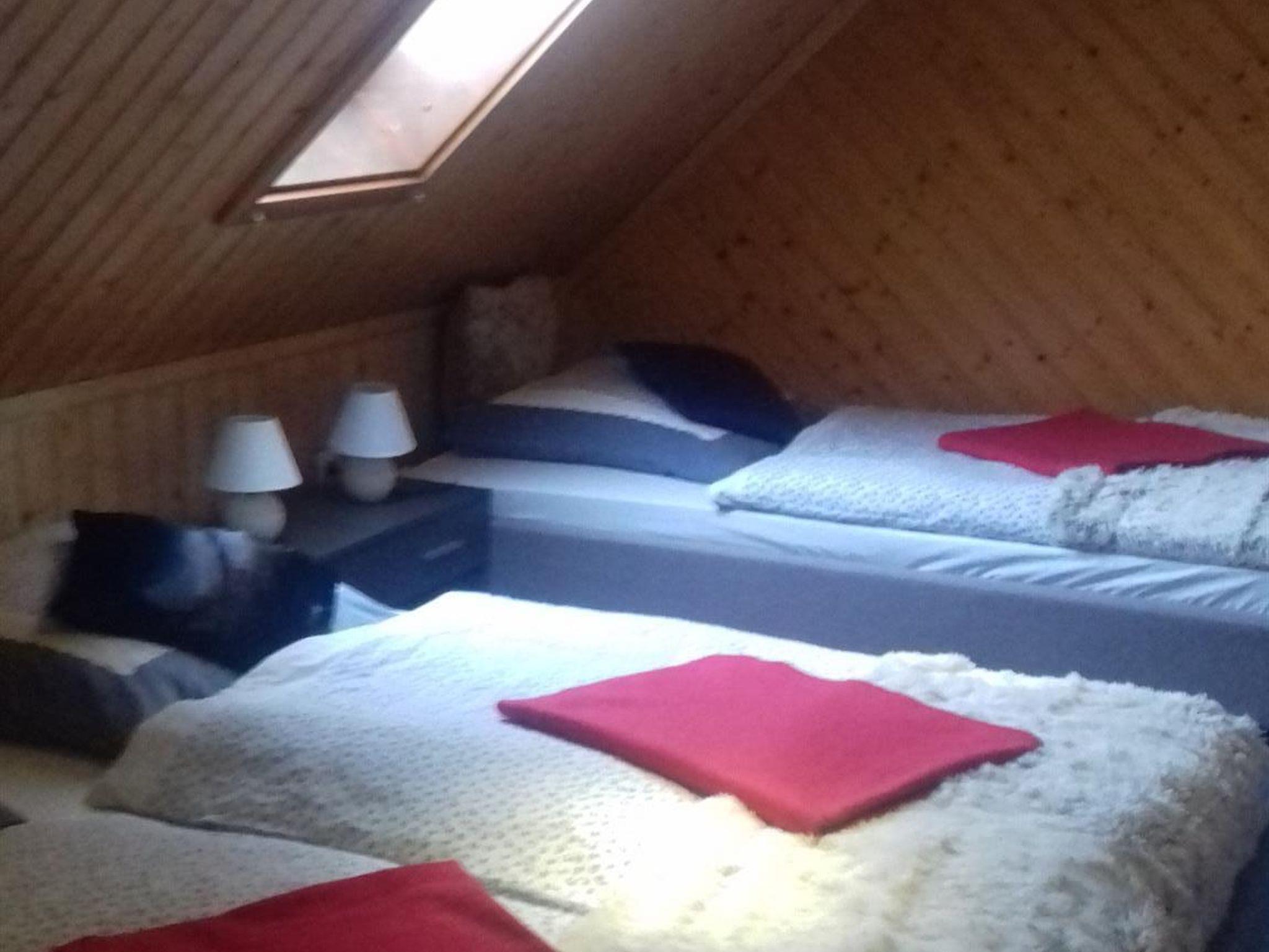 In der unteren Etage befindet sich im Eingangsbereich die Küche und daran anschließend das Bad. Auf der linken Seite des Erdgeschosses befindet sich das Wohnzimmer, dass ausgestattet ist mit dem 5. Bett (Klappbett), Fernseher, Radio und Sofa. Das Sofa ist kein Schlafsofa. In der oberen Etage liegt das Schlafzimmer mit Kapazität für 4 Personen.