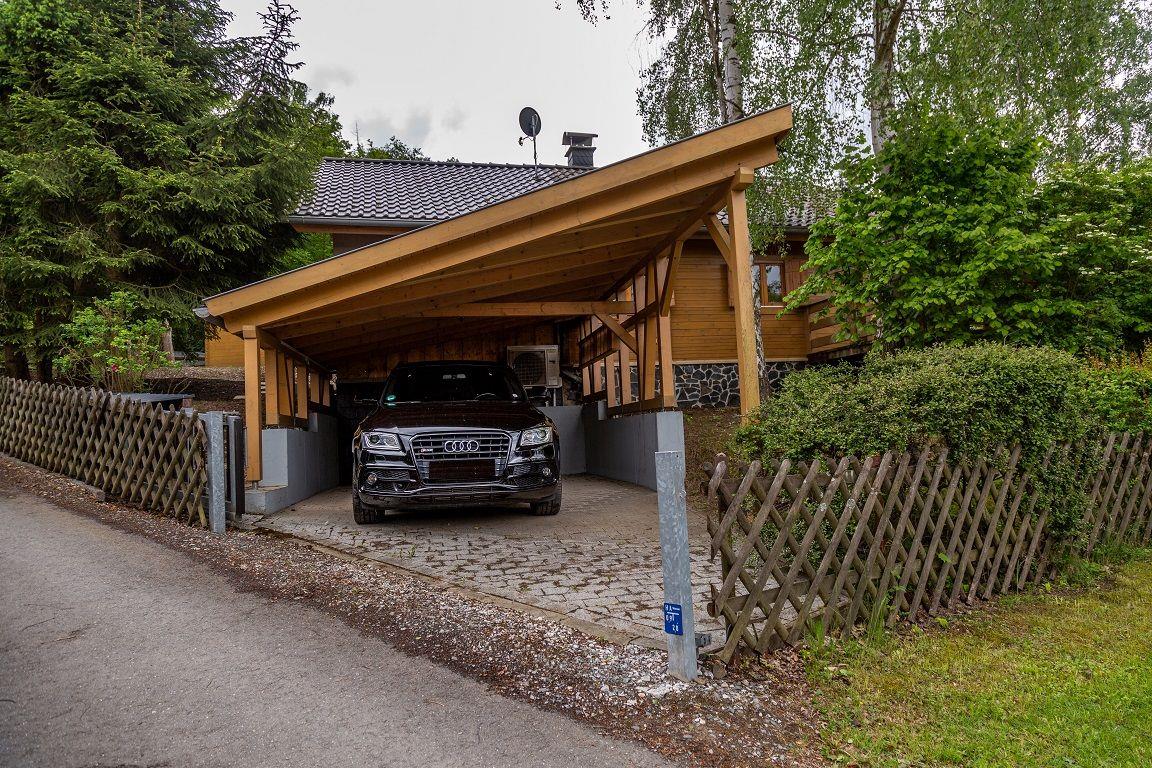 Auf dem Grundstück befinden sich insgesamt 3 absperrbare Parkplätze. Das Ferienhaus wird mit einer Luft/Wärmepumpe betrieben.
