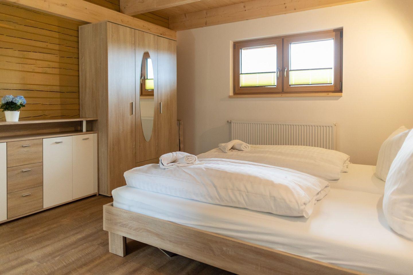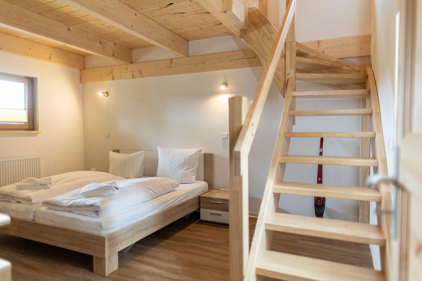Diese sehr gemütlich eingerichtete Ferienunterkunft verfügt über insgesamt 6 Schlafplätze die sich wie folgt aufteilen: Das erste Schlafzimmer verfügt über ein Doppelbett und einem Kleiderschrank. Das zweite Schlafzimmer verfügt über ein Doppelbett mit Kleiderschrank und Kommode. Über eine Treppe gelangen Sie auf die offene Galerie. Dort befindet sich ein weiterer Schlafbereich mit Futon, das ausreichend Platz für 2 Personen bietet.