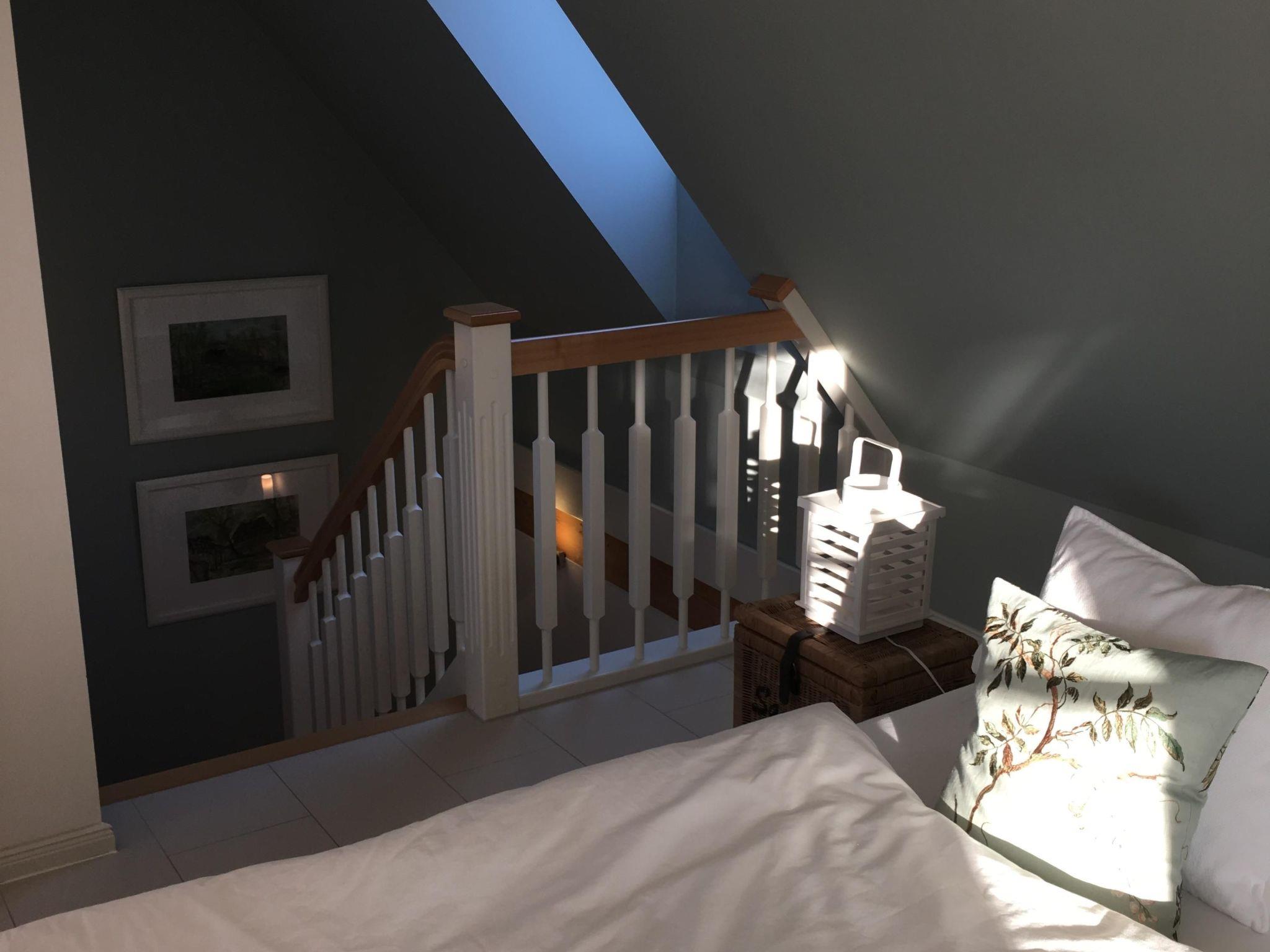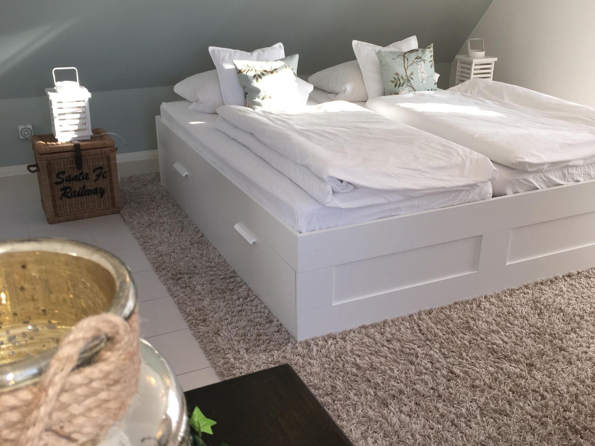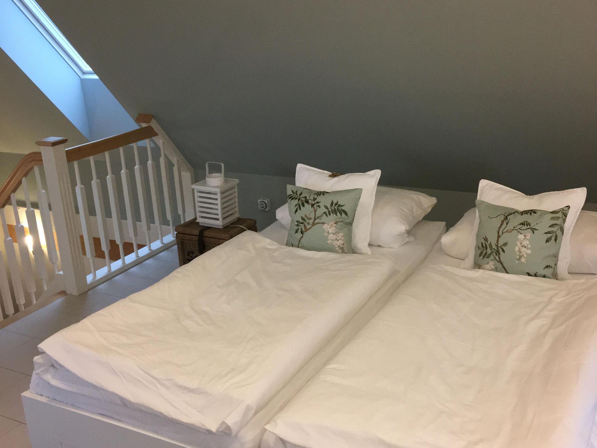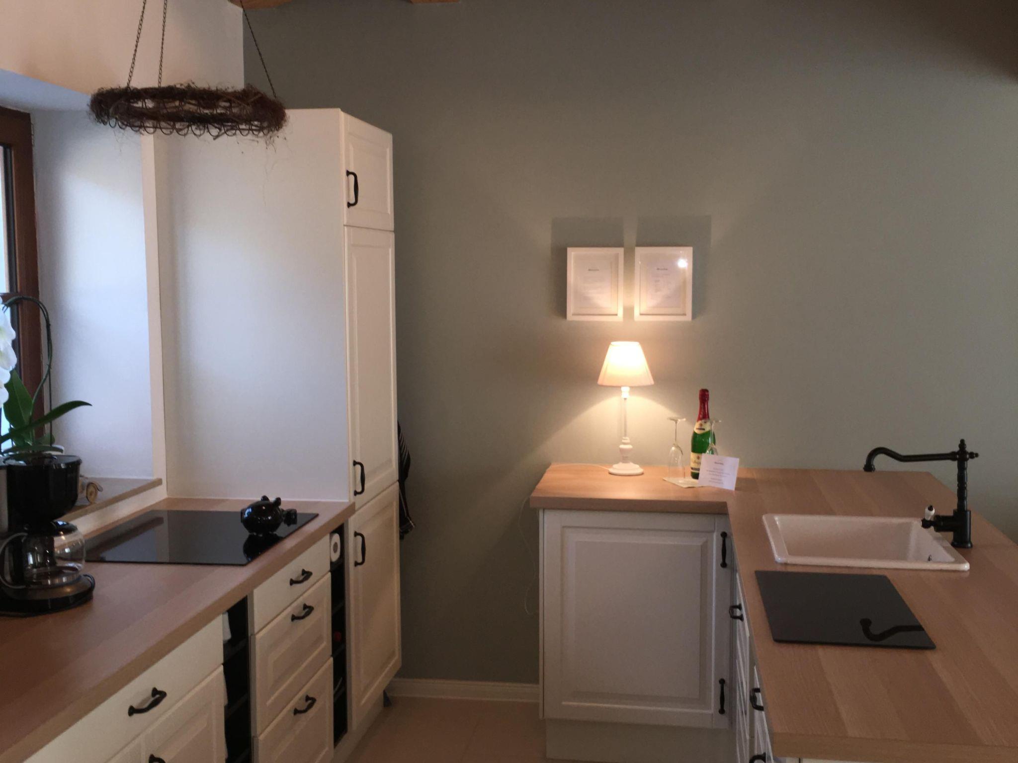 Die Wohnung mit separatem Eingang ist sehr hell und komfortabel eingerichtet und hat eine vier-Sterne-Klassifizierung. Auf zwei Ebenen finden zwei Personen auf gut 55 m² ihren persönlichen Rückzugort. Die Wohnküche bietet Ihnen ein gemütliches Sofa, neben dem sich direkt die offene Küche mit Essbereich anschließt. Diese ist komplett mit Herd, Kühlschrank, Mikrowelle und Spülmaschine ausgestattet. Über den Treppenaufgang gelangt man nach oben in den Schlafbereich, der über ein bequemes Doppelbett (180 x 200 cm) und einen Ausblick ins Grüne verfügt. Das moderne Badezimmer ist mit Dusche, WC und Waschmaschine ausgestattet. Alle Räume haben Fußbodenheizung.
