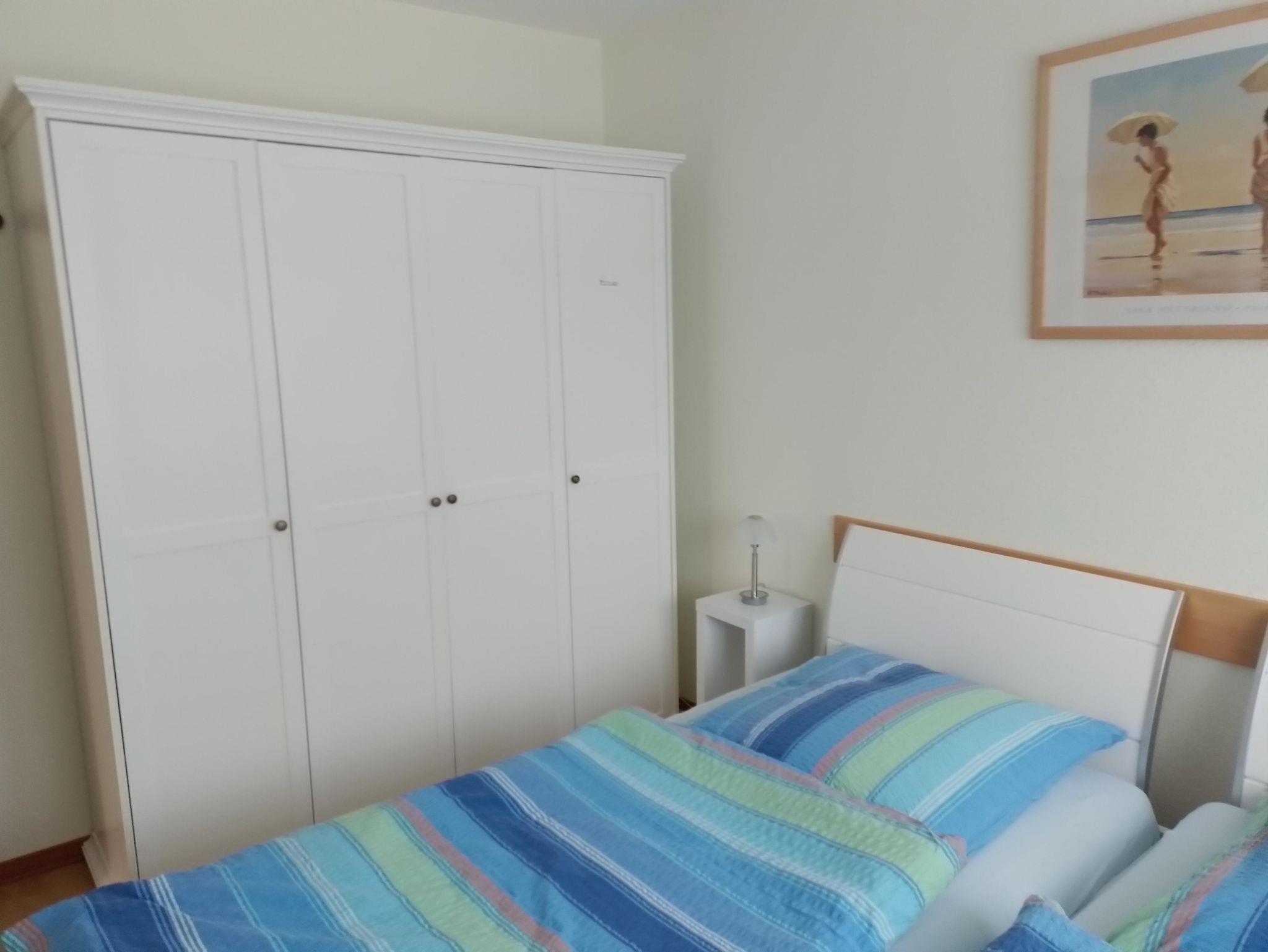 Ein lichtdurchflutetes Schlafzimmer mit 2 Betten in absolut ruhiger Lage, und eine Fensterfront zur aufgehenden Sonne. Eine Außenjalousie kann das Zimmer in völlige Dunkelheit hüllen.