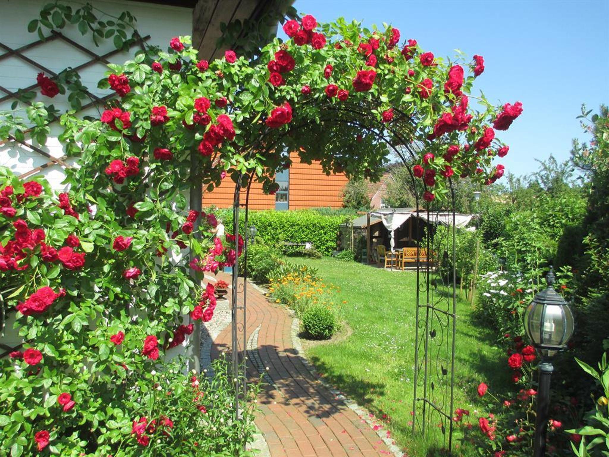 Liebe Gäste, wir fahren auch gerne in den Urlaub und wissen was Urlauber wünschen und von einer Ferienwohnung erwarten! Damit sie sich rundum wohlfühlen, haben wir unsere geräumige 60 qm große Ferienwohnung in der Lindenallee liebevoll und praktisch für sie eingerichtet. Eine Einliegerwohnung in einem Winkelbungalow zur Ferienwohnung fachmännisch gestaltet, mit eigenem Eingang , zu ebener Erde, für Allergiker geeignet, mit Wohnzimmer, Schlafzimmer, Küche, Badezimmer und Flur lädt sie zum Erholen und Verweilen ein. WLAN ist vorhanden. Das nach Süden ausgerichtete Wohnzimmer ist folgendermaßen ausgestattet: Eine Terrassentür und 2 Fensterfronten zum Blumengarten, eine bequeme Couch,die zur 2x2 m Schlafcouch umgerüstet werden kann (aus 2015), geeignet für 2 Kids oder 1 Erw., 2 Lehnsessel, Glas-Couchtisch, Sat-TV Sony 70 cm,, Kennwood Stereo-Receiver, DVD/ CD-Player, diverse Spiel- Natur- und Kinderfilme, Musik-CD's, Gläserschrank, Brett und Kartenspiele, Bücherschrank mit Leselektüre und Fachliteratur über Schleswig-Holstein. Der Fußboden ist ein Laminatboden und mit 2 Sisalteppichen belegt. Ein lichtdurchflutetes Schlafzimmer. Eine Fensterfront zur aufgehenden Sonne und in den Garten. Das Zimmer bietet für 2 Personen Schlafgelegenheit in zwei Einzelbetten, die auch auseiandergestellt werden können. Eine Außenjalousie kann das Zimmer in völlige Dunkelheit hüllen. Zwei Nachtschränkchen mit Leselampen und Radiowecker stehen neben den Betten. Ein großer Wäsche- und Kleiderschrank bietet ihnen die Möglichkeit, ihre Urlaubsgarderobe bequem und knitterfrei während der Urlaubszeit abzulegen. Außerdem befindet sich ein Stuhl, ein Tischchen mit Spiegel für evtl. Kosmetika und Schminksachen im Schlafzimmer. Die Küche ist geräumig mit einem großem Fenster zum Garten. Ausgestattet mit einem 4 Pl. Herd mit Backofen, Kühlschrank ohne Gefrierfach,Geschirrspülmaschine, Mikrowelle, Küchenschränke mit div. Kochtöpfen und Geschirr; einfach alles was die Hausfrau benötigt. Wasserkocher, Kaffemaschine, Toaster, Eierkocher, Geschirrhandtücher. Radio ist vorhanden. An einem Küchentisch können 4 Personen Platz nehmen. Und wenn etwas fehlen sollte, wird es besorgt; wir sind jederzeit für sie da und helfen gerne! Neben der Küche ist ein Abstellraum. Groß genug und geeignet für ihre Koffer, Besen, Putzsachen, Staubsauger Wäscheständer, etc. Ein großes, helles Badezimmer von 3,60 x 2 m und einer Dusche von 1m x 0,90 m lässt jeden Besucher entzücken. WC, ein großes Waschbecken, Wäscheschränkchen und Borde für Handtücher und Toilettenartikel sowie vorhandenen Haartrockner bieten ausreichend Platz. Durch das große Fenster zum Garten leuchtet morgens die aufgehende Sonne ins Bad. Der Flur ist mit einem großen, stilvollen Schreibtisch, Schreibtischlampe und Stuhl sowie einer Flurgarderobe, einem Bücherbord mit Lektüre eingerichtet. Im Schreibtisch findet der Besucher diverse Fahrradkarten, Landkarten, Veranstaltungskalender, Fachzeitschriften, Hinweise zu Sehenswürdigkeiten und vieles mehr. Die gesamte Wohnungseinrichtung ist neu und liebevoll und maritim mit Knotentafel, Schiffsmodellen usw. ausgestattet. Im Garten stehen Liegestühle, Grill, Gartentisch und -Stühle zur Benutzung bereit. Fahrräder können ausgeliehen werden. Fahrradschuppen und ein Pkw-Abstellplatz auf eigenem Grundstück ist vorhanden.