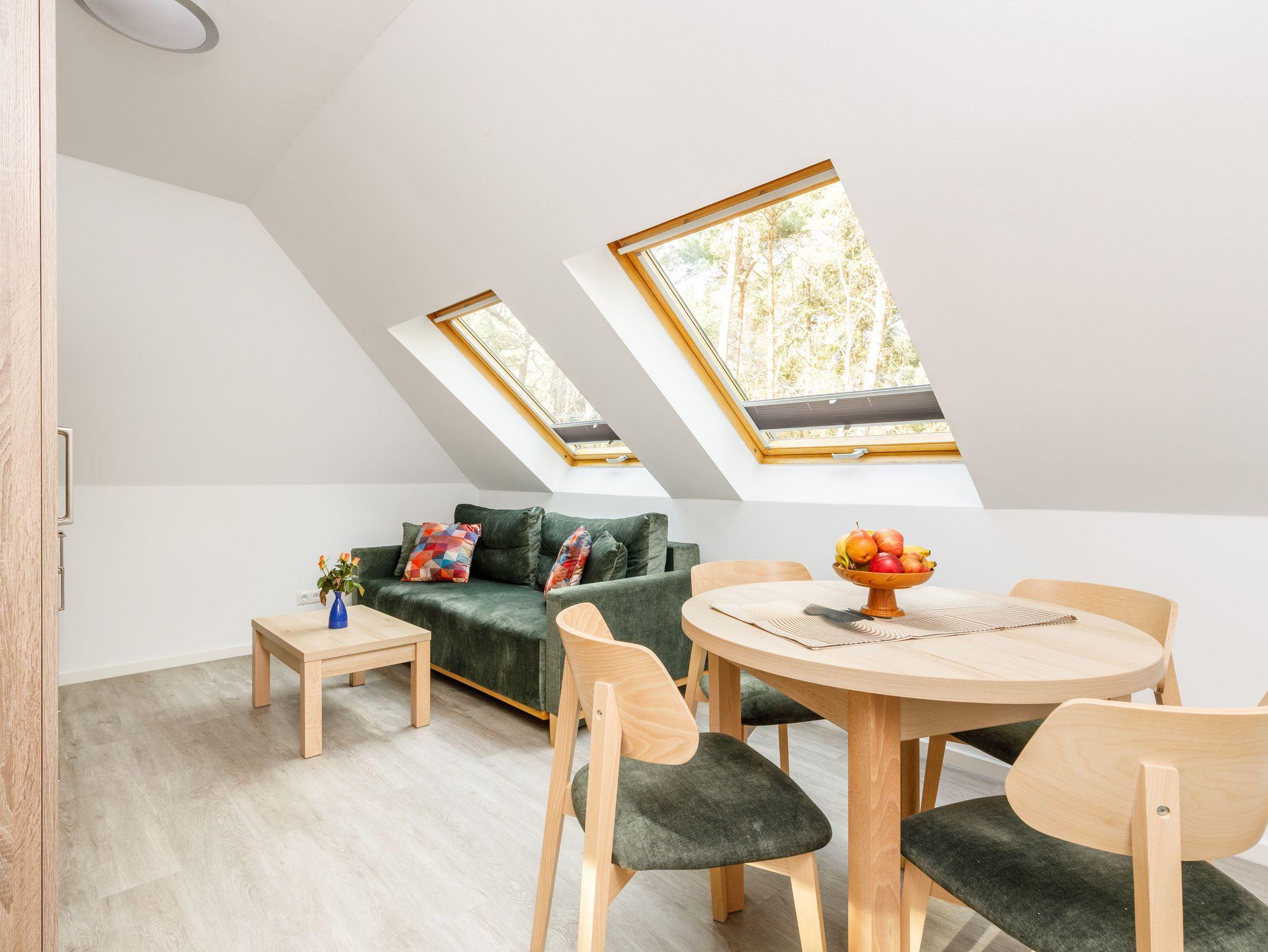 Die großzügig angelegte und dennoch ruhige Anlage bietet deutlich mehr Raum und Möglichkeiten als klassische Apartmenthäuser in der Umgebung. Familien, Paare, Gruppen und Ruhesuchende finden hier gleichermaßen ideale Bedingungen für ihren Aufenthalt. Unterschiedliche Apartmentgrößen sowie familienfreundliche und barrierefreie Einheiten sorgen dafür, dass für nahezu jeden Anspruch die passende Unterkunft zur Verfügung steht.