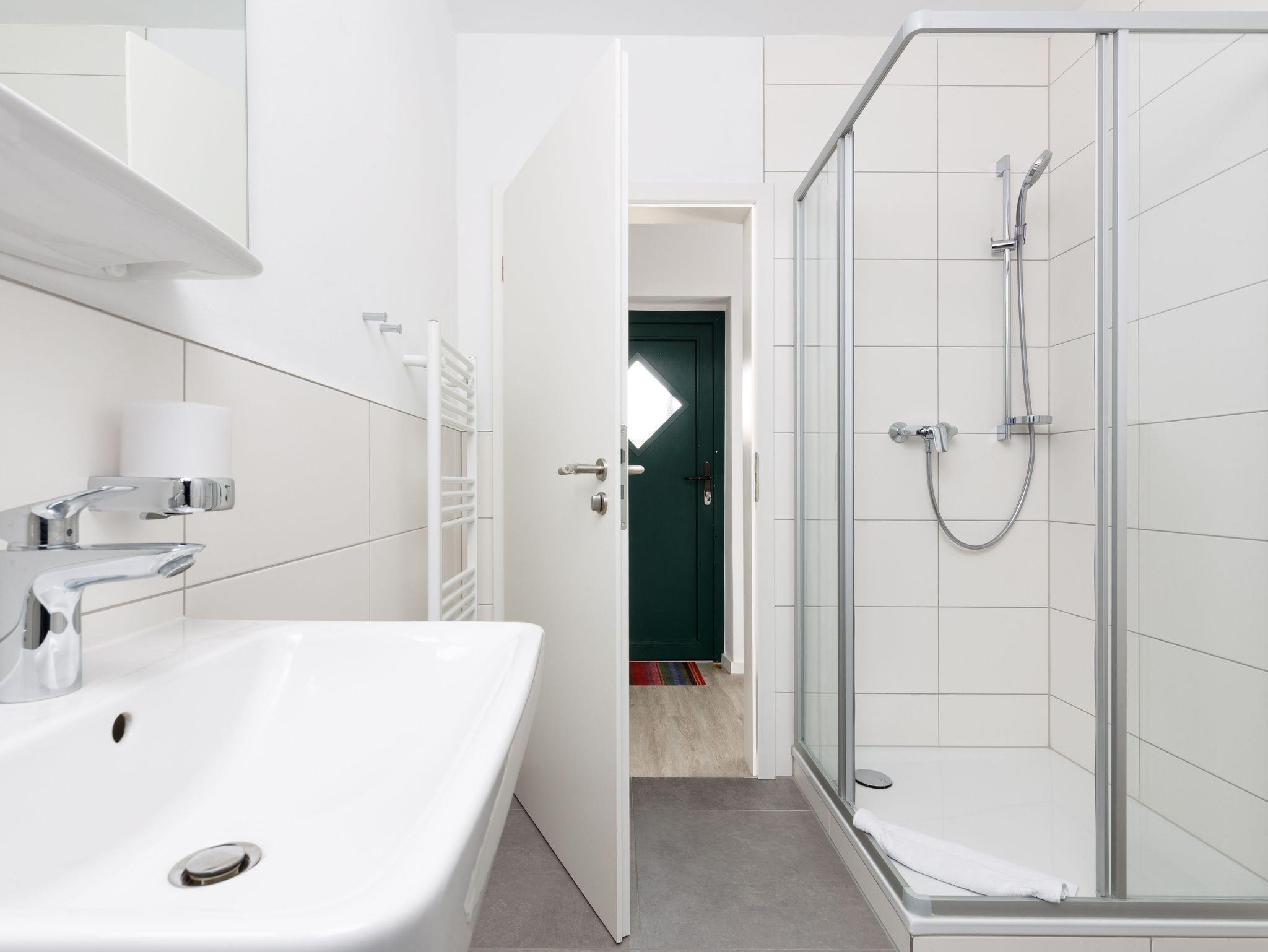 Zur Ausstattung gehören ein modernes Bad mit Dusche und WC, ein Wohnbereich mit Esstisch, Kleiderschrank und TV sowie kostenfreies WLAN. Zusätzlich stehen ein Kühlschrank, eine Mikrowelle und eine Kaffee-Kapselmaschine zur Verfügung. Eine eigene Küche ist bewusst nicht vorhanden. Stattdessen kann die großzügige Gemeinschaftsküche auf dem Gelände mit allen notwendigen Kochutensilien genutzt werden.