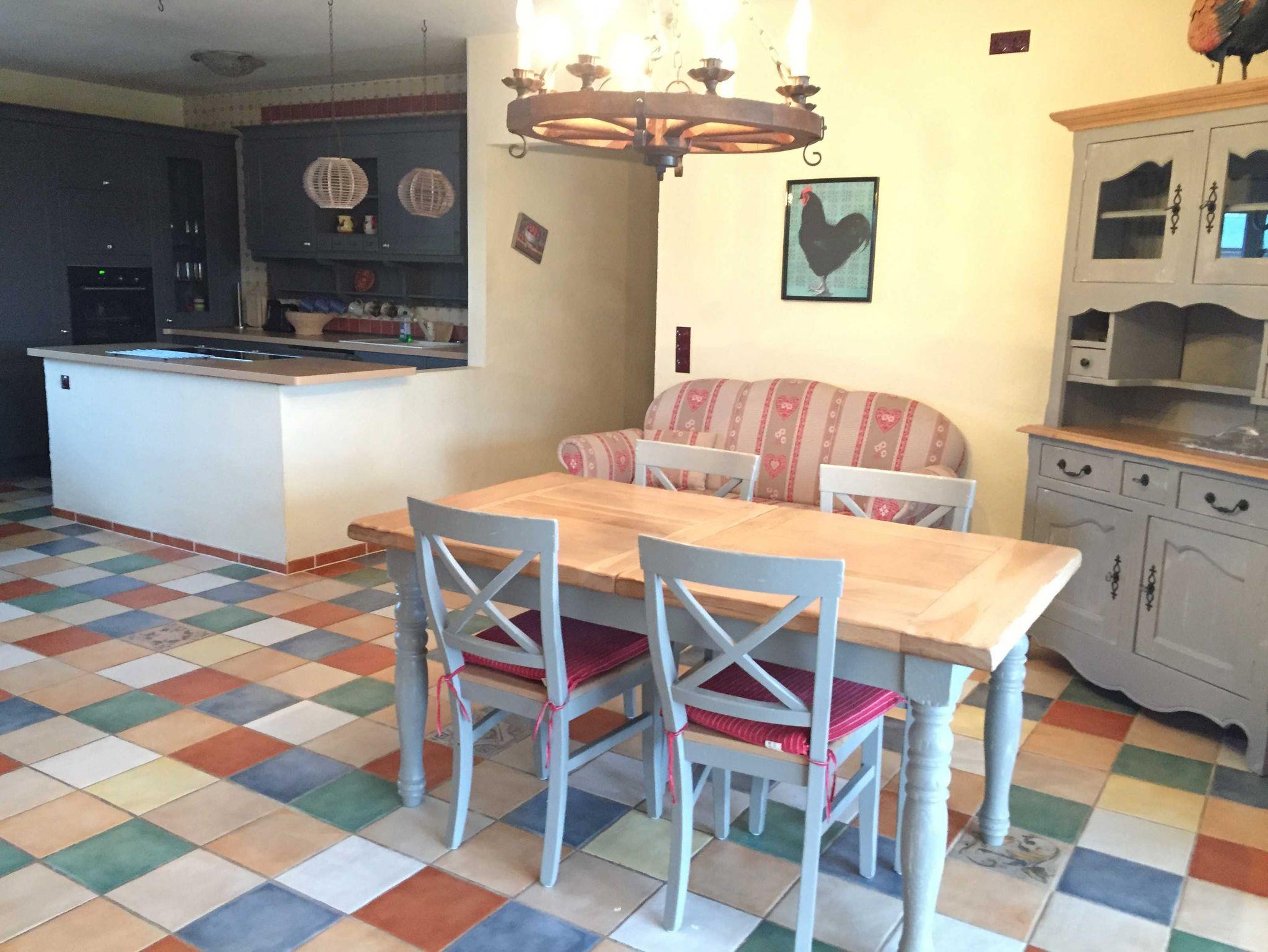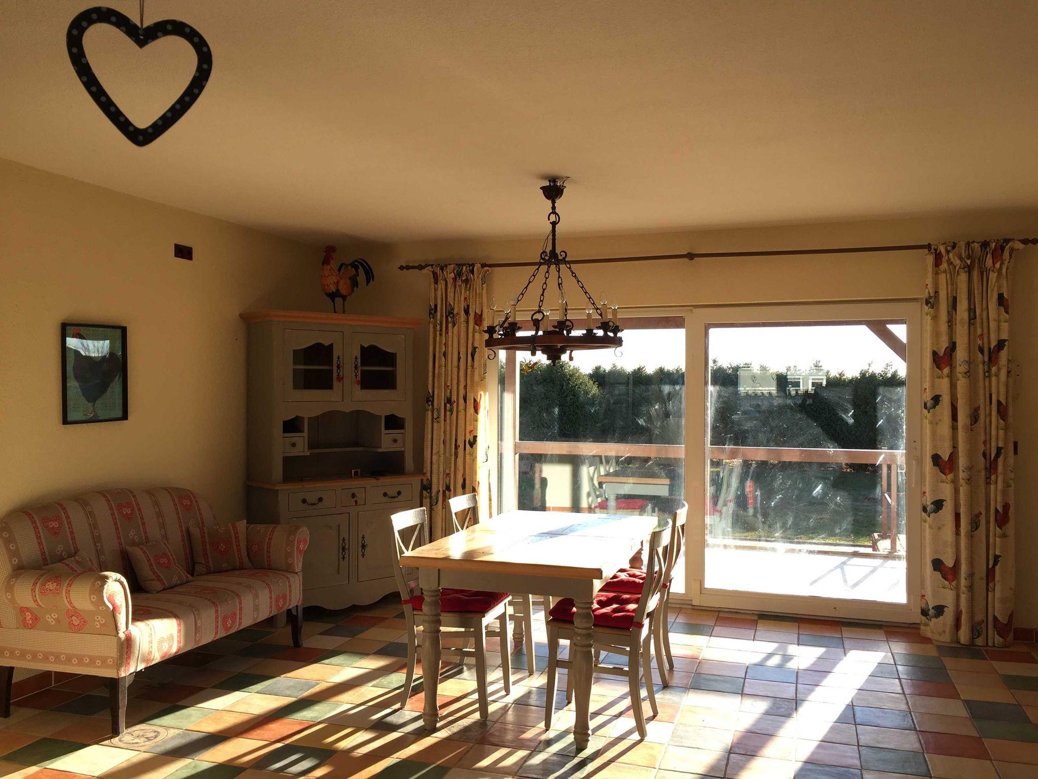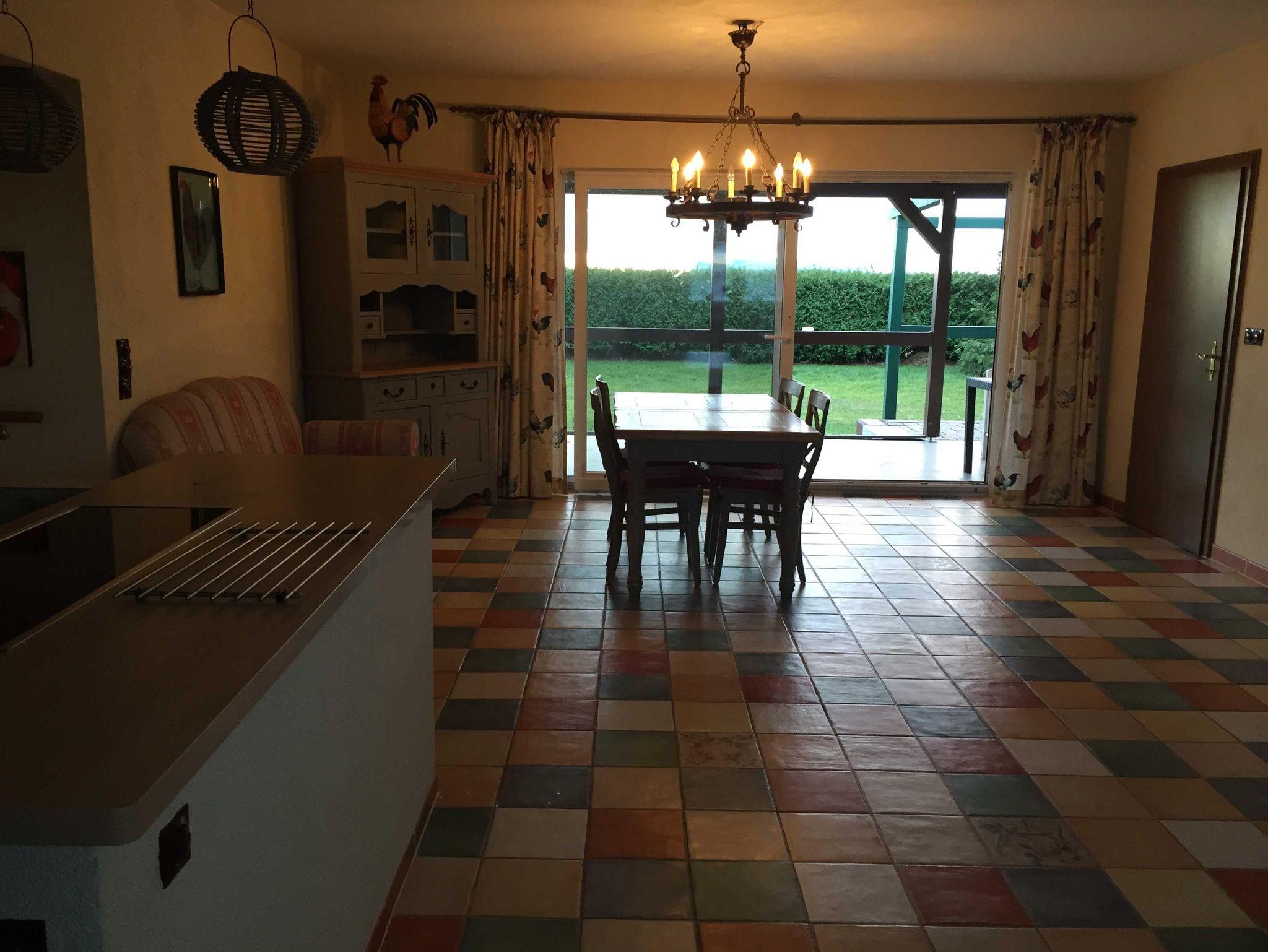 Die Ferienwohnung Drossel ist für max 6 Personen geeignet und befindet sich ebenerdig, ist 81 m² groß komfortabel und gemütlich ausgestattet: Flur, großer Wohn/ Essraum SAT TV, Radio, CD Player, große Fensterfront mit Blick ins Grüne und Zugang zur großen Sonnenterasse mit Gartenmöbeln, und Grillmöglichkeit, eine komplett ausgestattete Einbauküche mit Herd, Cerankochfeld, Kühl-Gefrierkombination, Geschirrspüler, Mikrowelle, Kaffeemaschine für Filterkaffe und eine Tassimo Kaffeemaschine, Toaster, Wasserkocher, Essecke, 1.Schlafzimmer mit Doppelbett, 2. Schlafzimmer mit 2 Doppelstockbetten, großes Bad mit Waschbecken Dusche und WC,