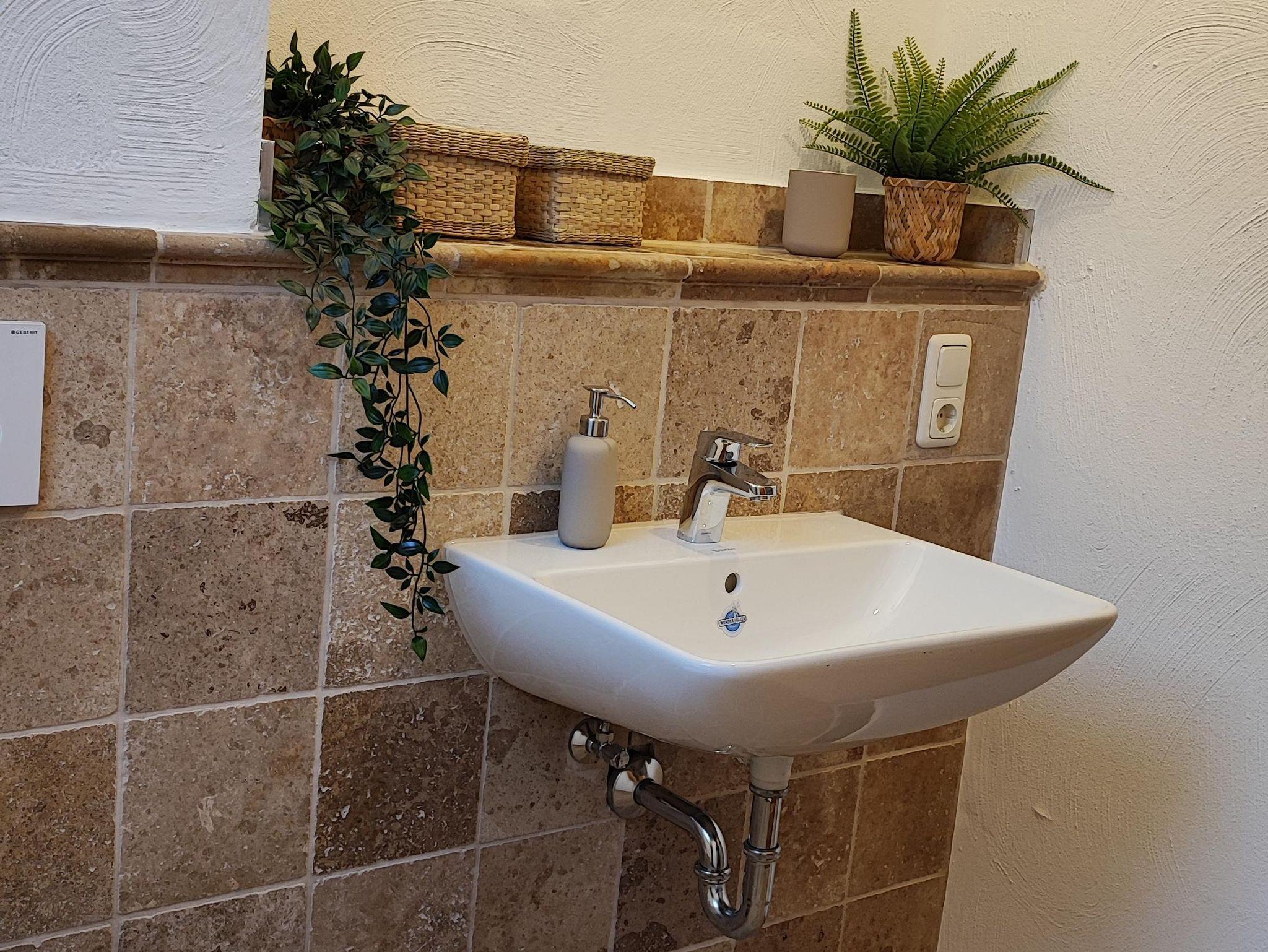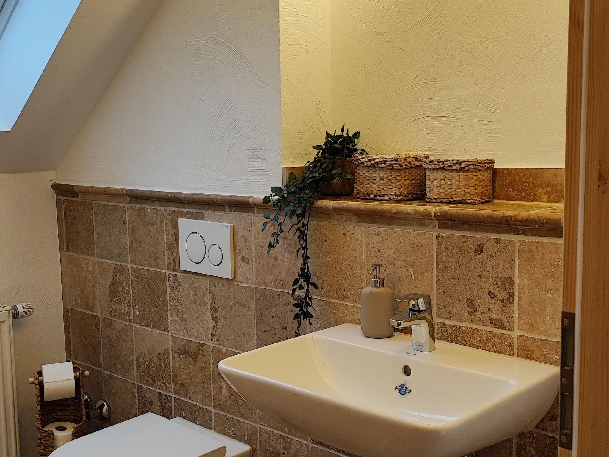 Ein weiteres Bad, welches allerdings lediglich über ein WC und einen Waschtisch verfügt, befindet sich im Anbau unmittelbar neben den beiden dort befindlichen Schlafzimmern.