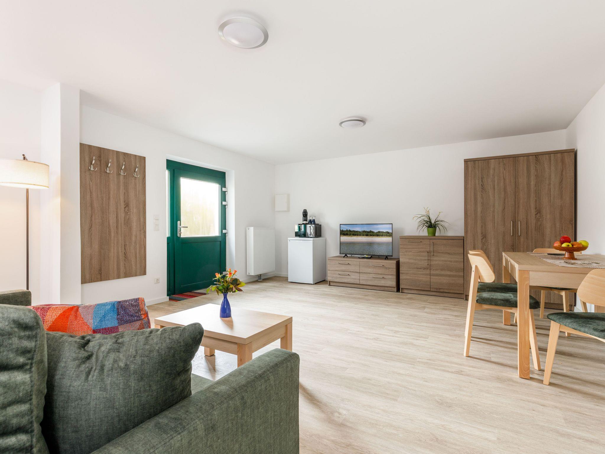 Modernes, strandnahes Apartment im Feriendorf Strandgut mit vielseitigen Freizeitangeboten und barrierefreiem Komfort.