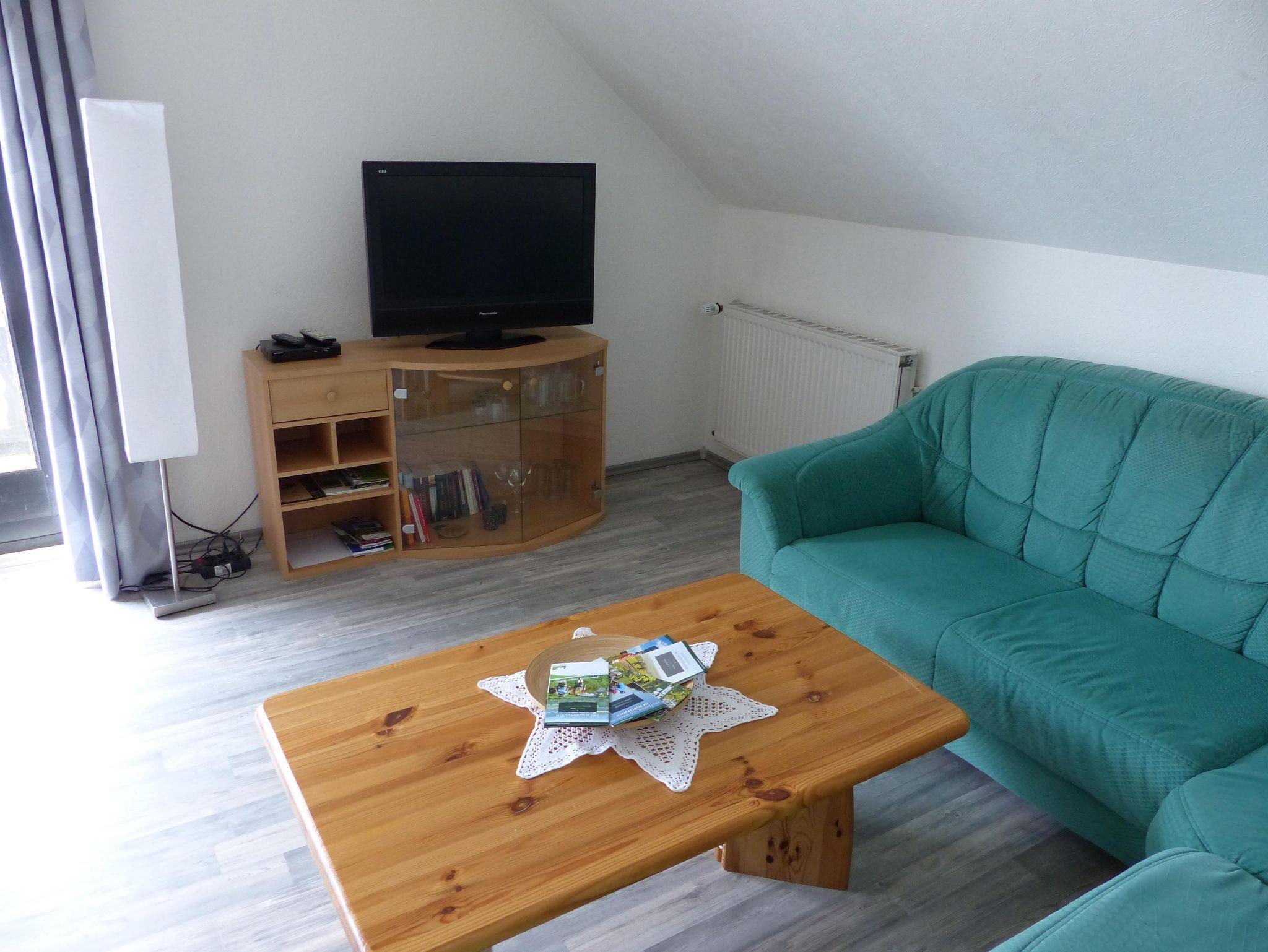 Die komfortable FeWo bietet auf 65 qm Platz für 2-4 Personen, gr. Wohnzimmer mit Essplatz und Kochküche, 2 Schlafzimmer, Diele, Du/Wc, Balkon und Kabel TV. Große Liegewiese mit Bachlauf.