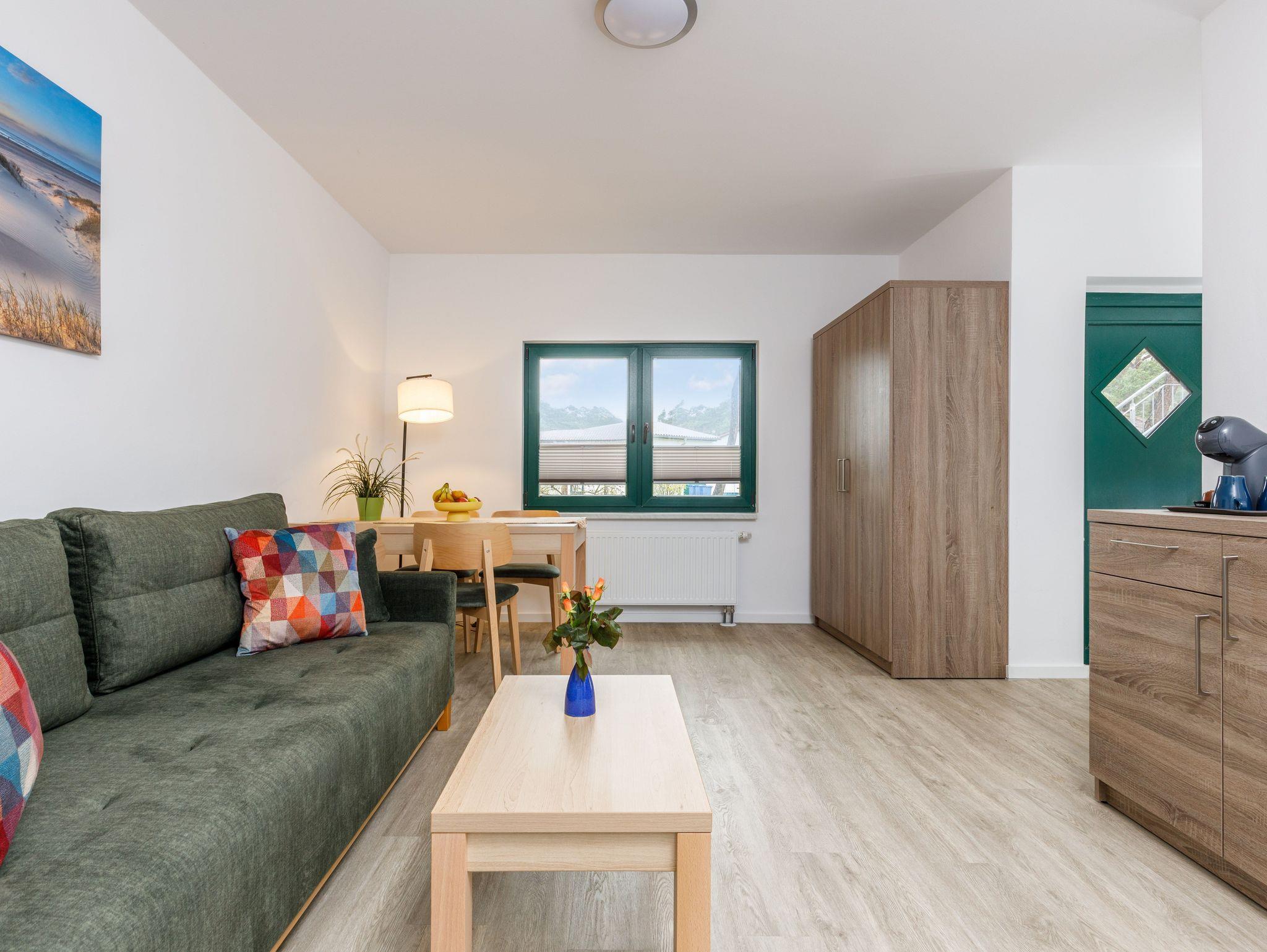 Das Apartment verfügt über ein Schlafzimmer mit Doppelbett sowie einen Wohnbereich mit Schlafsofa und eignet sich ideal für Paare oder kleine Familien. Auch Vierbeiner sind in dieser Kategorie herzlich willkommen.
