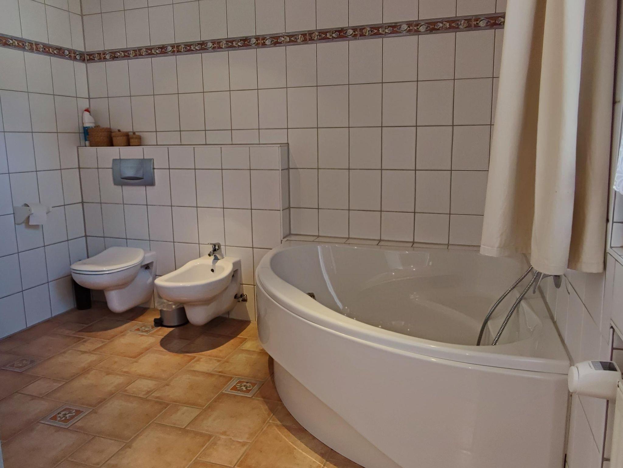 Vielleicht wollen Sie nach einer anstrengenden Radtour aber auch lieber ein heißes Schaumbad in der Eckbadewanne des ebenfalls großzügigen Badezimmers nehmen, um so ihre Muskulatur ein wenig zu entspannen? Neben der besagten Badewanne ist das Badezimmer natürlich noch mit einer Dusche, einem WC, einem Waschtisch sowie einem Bidet ausgestattet.