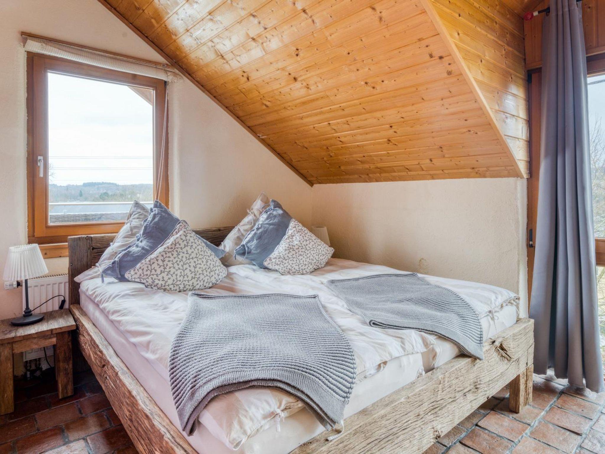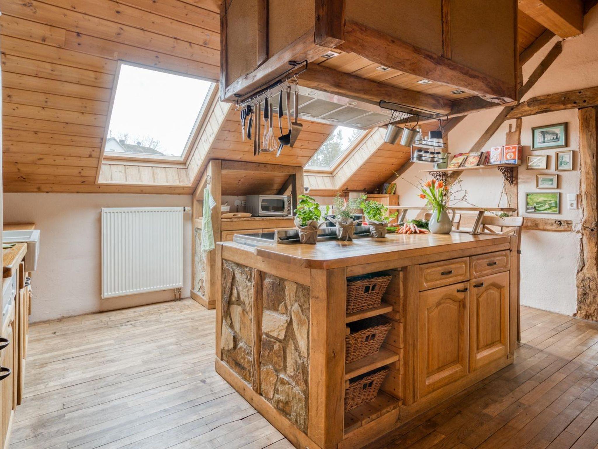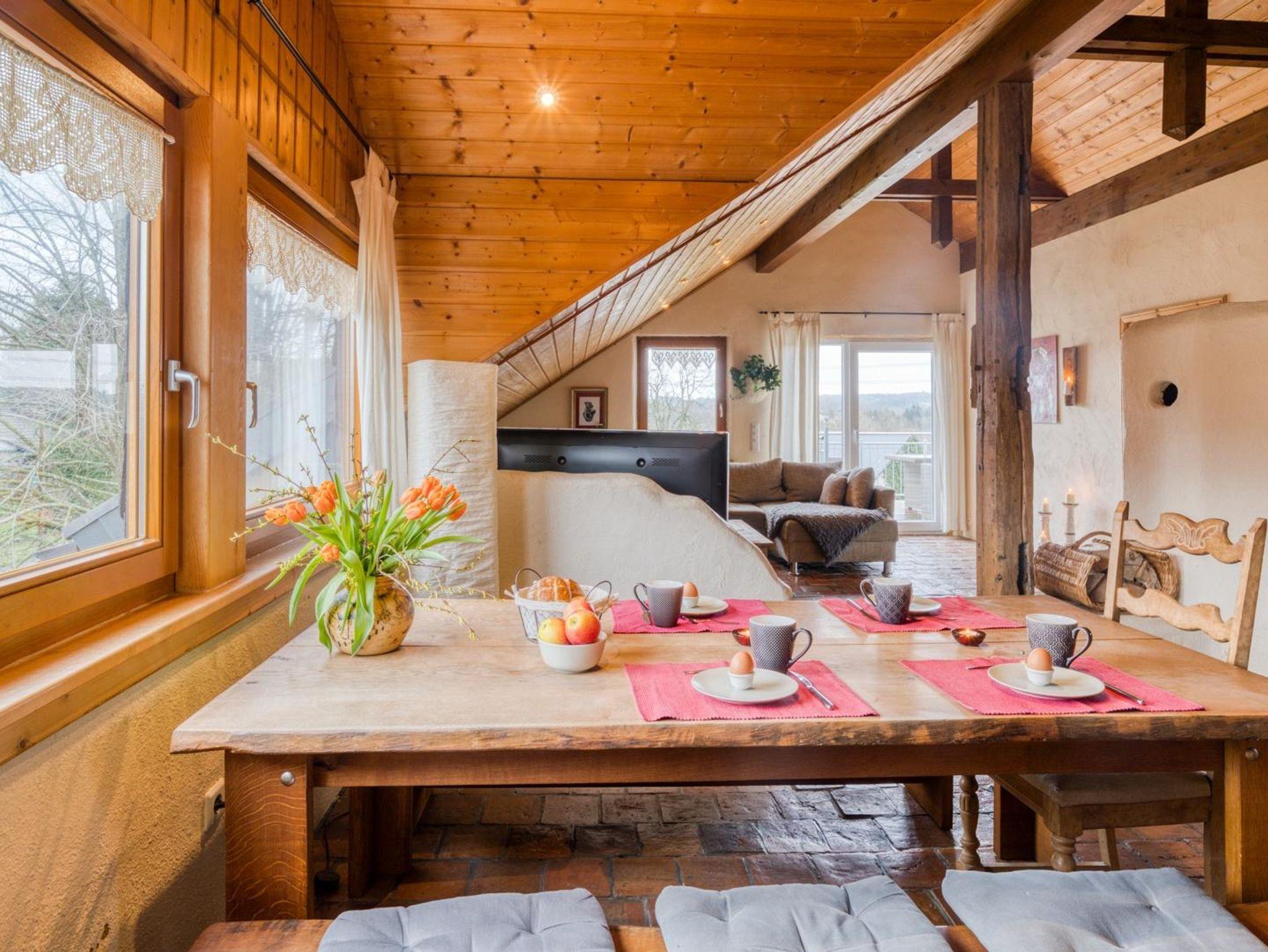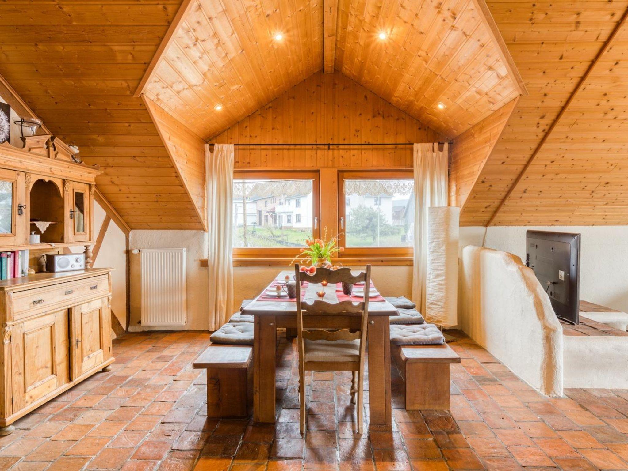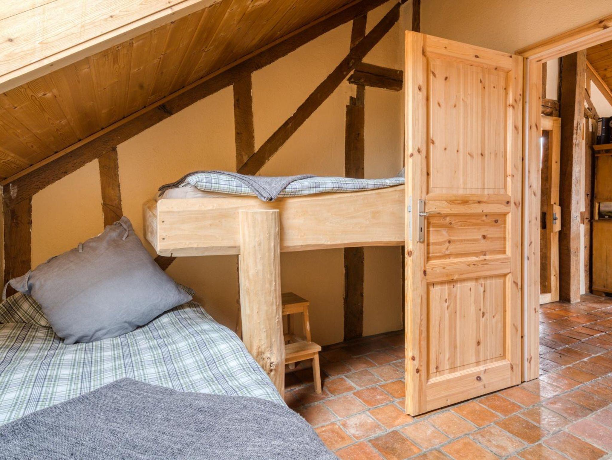 …der Name kommt nicht von ungefähr, denn tatsächlich handelte es sich bei dem Dachgeschoss des Lindenhofes, in dem diese Ferienwohnung gelegen ist, ursprünglich einmal um das Lager für das geerntete Getreide, also um den „Kornspeicher“, der dort vor Generationen lebenden Bauern. Bis 2001 wurde der ehemalige Kornspeicher des Lindenhofes lediglich als normaler Speicherraum genutzt. Dann wurde auch dieser Teil des Lindenhofes wieder nutzbar gemacht: Es wurde fast alles abgerissen, was sich oberhalb der Decke des Obergeschosses befand und wieder komplett neu aufgebaut. Auch bei dem Neuaufbau des alten Kornspeichers waren wir darauf bedacht, möglichst viele historische Baustoffe zu verwenden und den Wohnräumen hierdurch einen ganz besonderen Charme zu verleihen. So hatten wir das große Glück für das sehr große Wohn- Esszimmer sowie zwei Schlafzimmer alte, gebrannte Tonfliesen zu finden, die tatsächlich vor ca. 200 Jahren einmal in einem Kornspeicher gelegen haben. In der Küche sowie dem dritten Schlafzimmer wurde massives Eichenschiffsbodenparkett verbaut, welches ebenfalls aus einem Rückbau stammt. Der Kornspeicher ist die größte Ferienwohnung des Lindenhofes und über eine Außentreppe erreichbar. Er verfügt über eine Grundfläche von ca. 120 m² und befindet sich wie bereits erwähnt im Dachgeschoss. Daher sind in allen Räumen zwar Dachschrägen vorhanden, die Räume sind jedoch durch den hohen Kniestock und die zwei großen Gauben nahezu vollständig nutzbar. In den drei Schlafzimmern des Kornspeichers finden 7 Personen ausreichend Platz zum Schlafen. Die beiden großen Schlafzimmer sind jeweils mit einem sehr schönen Doppelbett (180 x 200 cm) ausgestattet. Eines dieser Schlafzimmer ist mit einer großen Gaube und bodentiefen Fenstern ausgestattet, so dass man vom Bett aus eine sehr schöne Sicht auf die umliegenden Wiesen und Wälder genießen kann. In diesem Schlafzimmer ist zudem noch ein Einzelbett vorhanden. „Sterngucker“ sollten jedoch lieber das andere große Schlafzimmer wählen, denn hier befindet sich das Bett unmittelbar unter einem 140 cm großen Dachfenster mit freier Sicht direkt in den Himmel. Das kleine Schlafzimmer verfügt über zwei über Eck gebaute Einzelbetten mit den Maßen 90 x 200cm sowie 100x200 cm. Vervollständigt werden die Schlafzimmer durch antike Kleiderschränke bzw. eine antike Kommode. Bei einer Belegung mit mehr als 7 Personen könnte die Couch zum Schlafen genutzt werden bzw. zusätzlich ein Gästebett aufgestellt werden. Der Wohn- Essbereich bietet mit seinen ca. 45 m² sowohl Platz für einen großen, rustikalen Esstisch (100 x 200 cm), an dem bis zu 8 Personen Platz finden können, als auch für eine ebenfalls sehr geräumige Wohnlandschaft, die man z.B. für gemütliche Fernsehabende mit dem großen Flat TV oder aber lange Winterabende vor dem großen Kaminofen nutzen kann. Vom Wohnzimmer aus gelangen Sie zudem auf den 12 qm großen Balkon mit der bequemen Lounge. Auch die Küche ist mit ihren ca. 25 m² sehr geräumig und mit den sehr individuell hergestellten Schränken gemütlich gestaltet. Hier finden Sie alles, was Sie zum Kochen und Backen auf dem 90 cm breiten Elektroherd mit Induktionskochfeld benötigen. Vervollständigt wird der Kornspeicher durch das mit schönem Antikmarmor geflieste Badezimmer mit Dusche, WC und Waschtisch.
